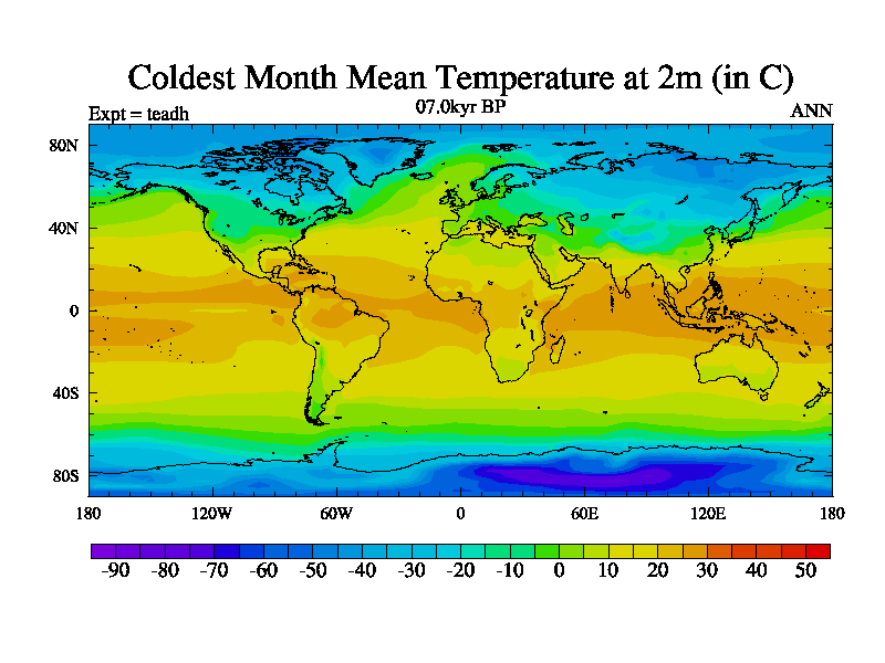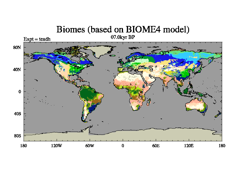 This is the 07.0 kyr BP simulation for a new set of deglaciation BBC runs using Peltier6g and TRIFFID. Dynamic mode