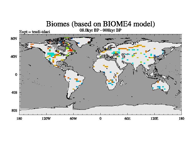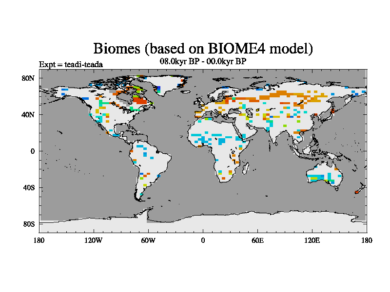 This is the 08.0 kyr BP simulation for a new set of deglaciation BBC runs using Peltier6g and TRIFFID. Dynamic mode