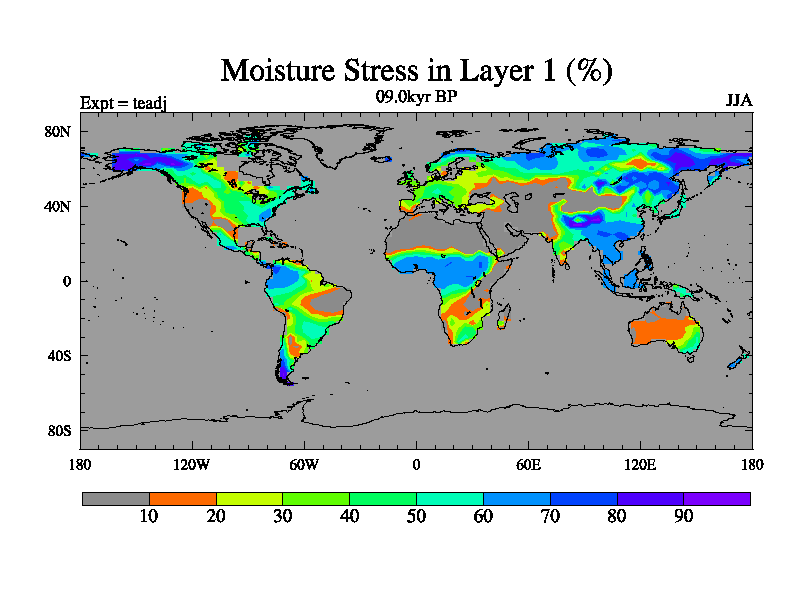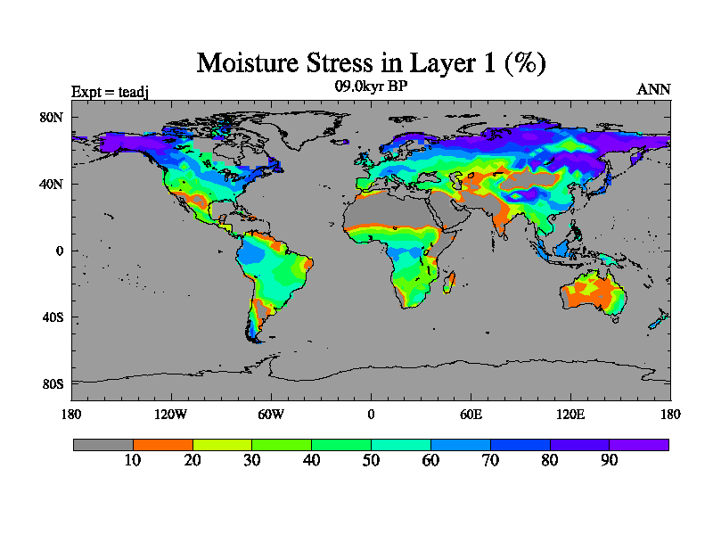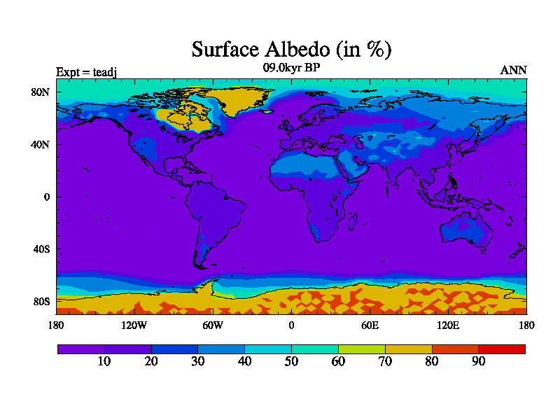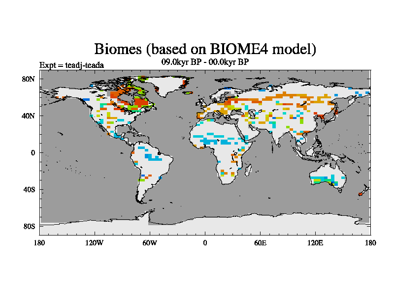 This is the 09.0 kyr BP simulation for a new set of deglaciation BBC runs using Peltier6g and TRIFFID. Dynamic mode