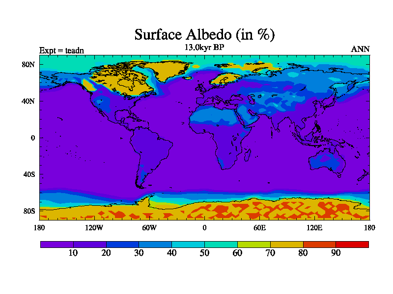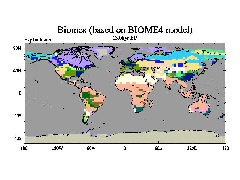 This is the 13.0 kyr BP simulation for a new set of deglaciation BBC runs using Peltier6g and TRIFFID. Dynamic mode