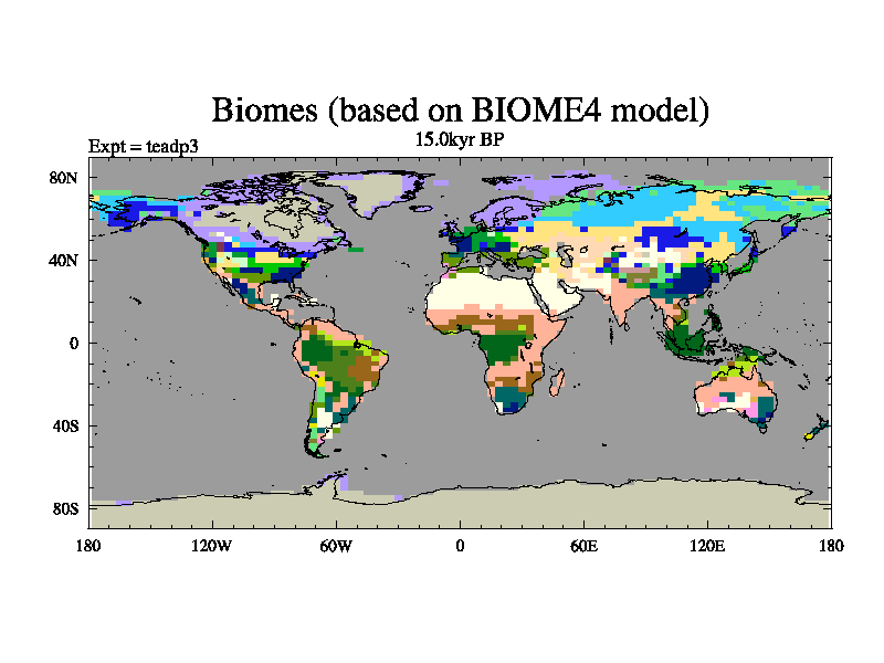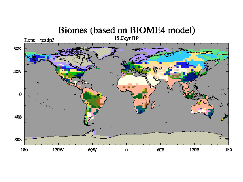 This is the 15.0 kyr BP simulation for a new set of deglaciation BBC runs using Peltier6g and TRIFFID. Dynamic mode