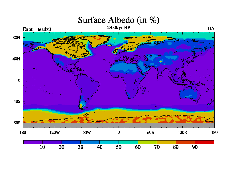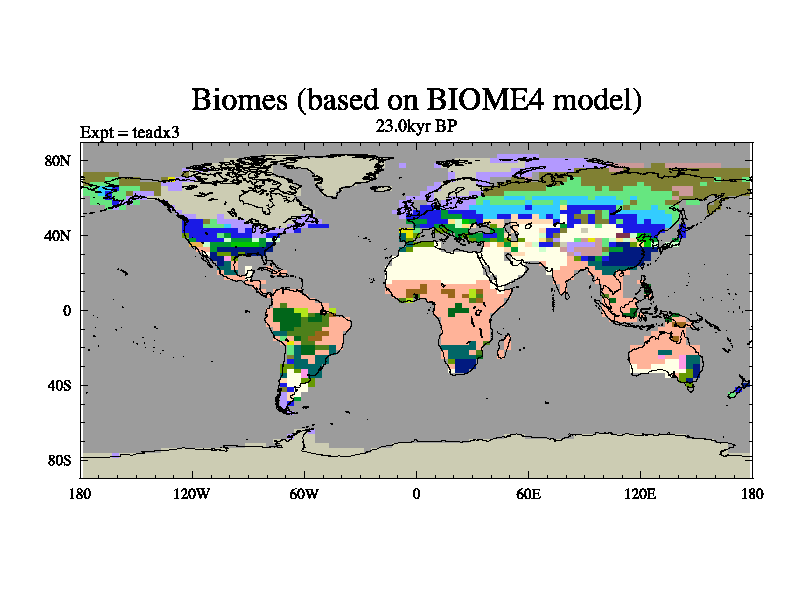 This is the 23.0 kyr BP simulation for a new set of deglaciation BBC runs using Peltier6g and TRIFFID. Dynamic mode