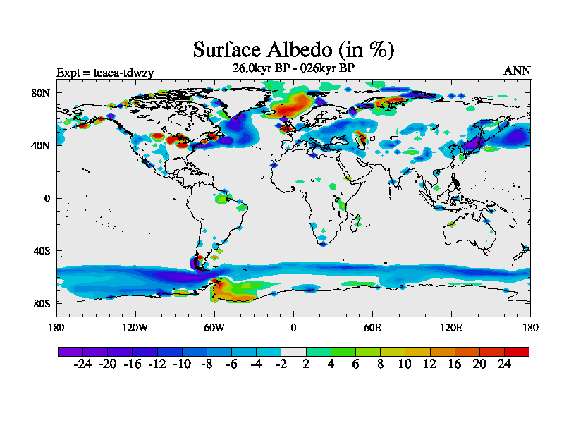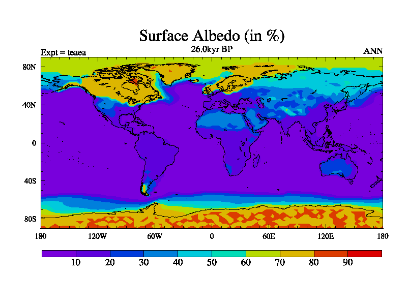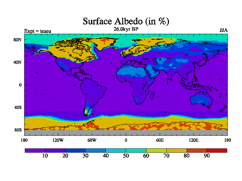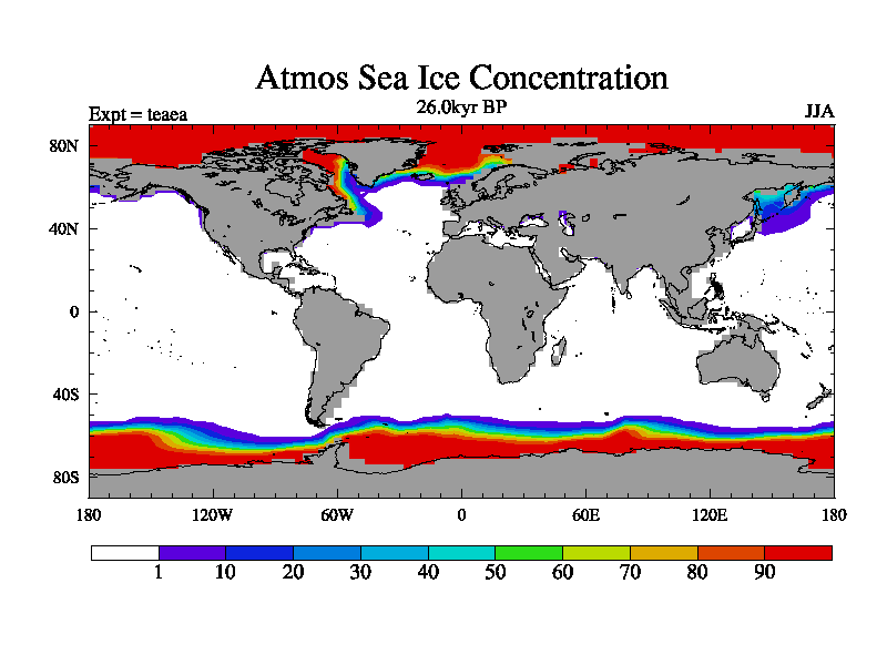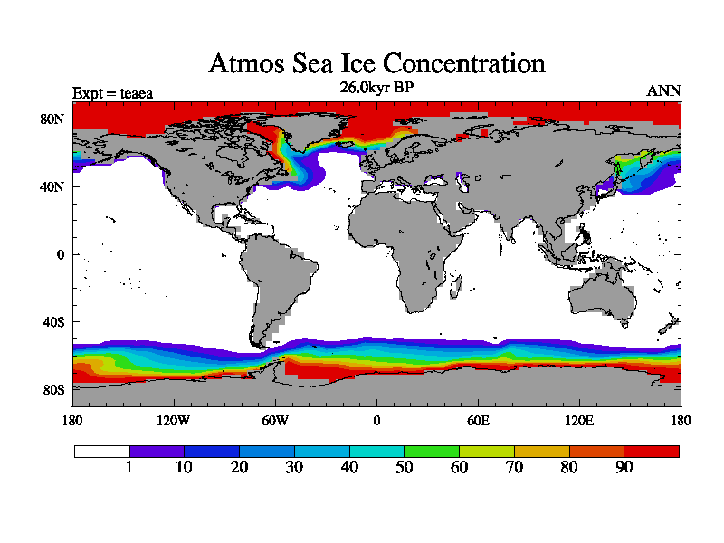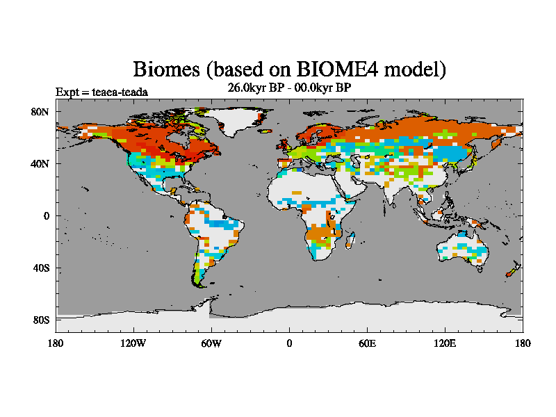 This is the 26.0 kyr BP simulation for a new set of deglaciation BBC runs using Peltier6g and TRIFFID. Dynamic mode