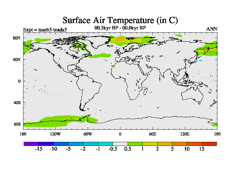 This is the 00.5 kyr BP simulation for a new set of deglaciation BBC runs using Peltier6g and TRIFFID. Dynamic mode