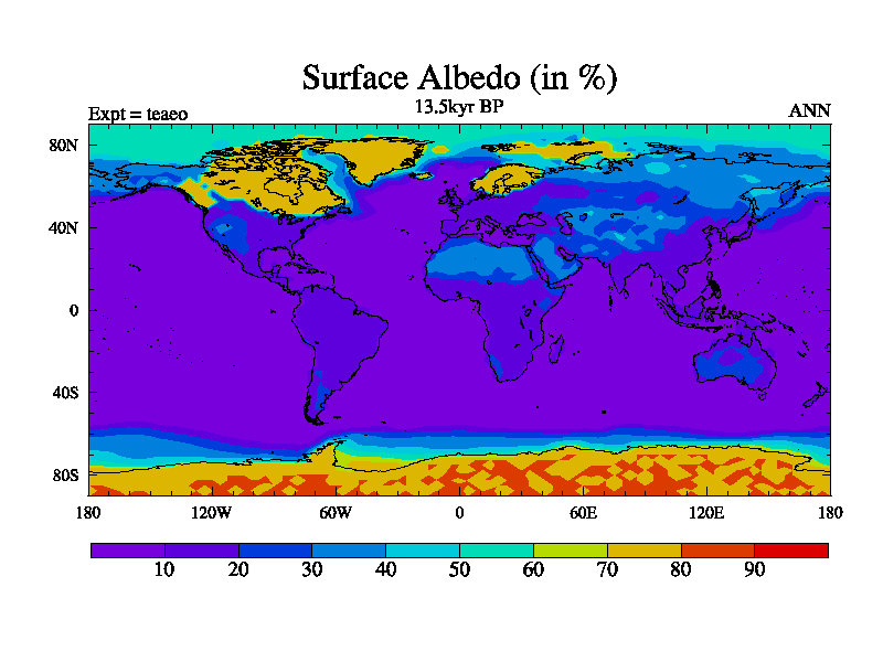 This is the 13.5 kyr BP simulation for a new set of deglaciation BBC runs using Peltier6g and TRIFFID. Dynamic mode
