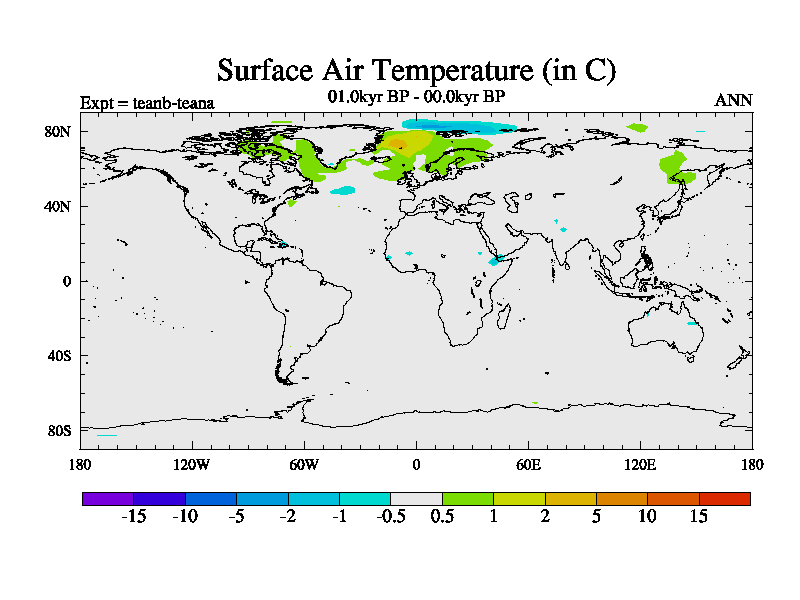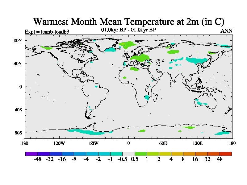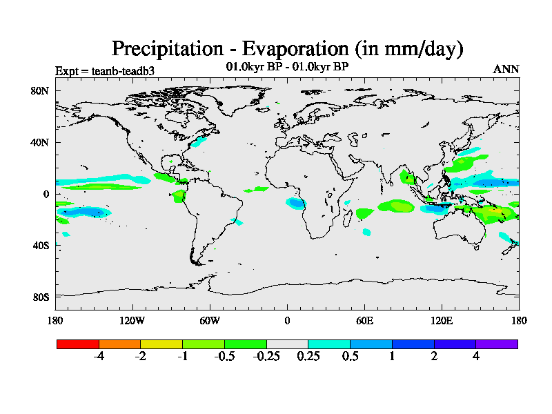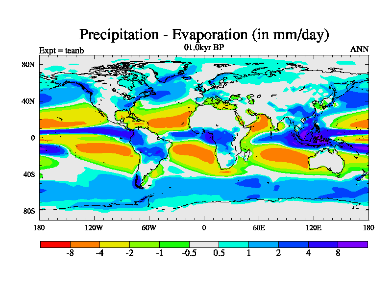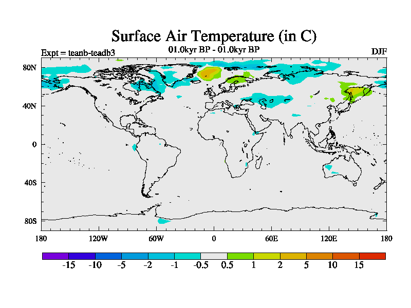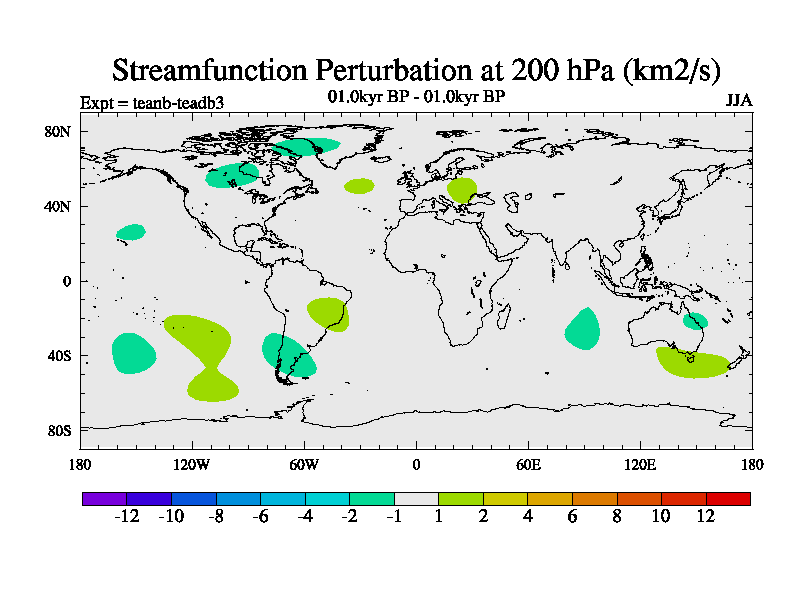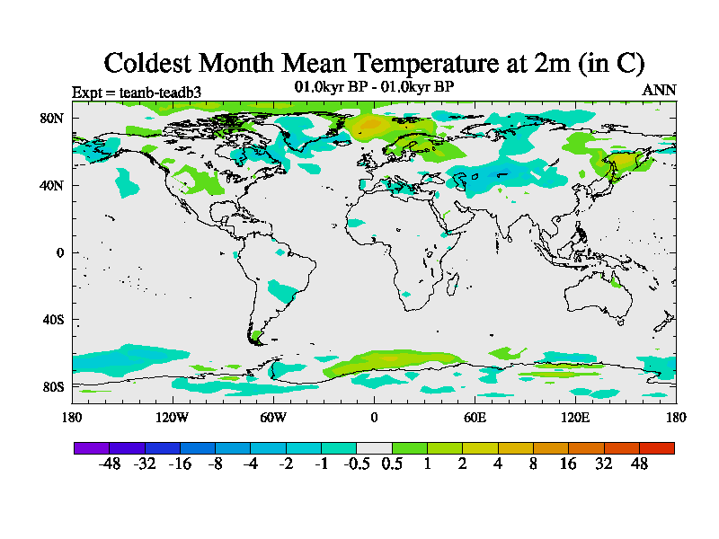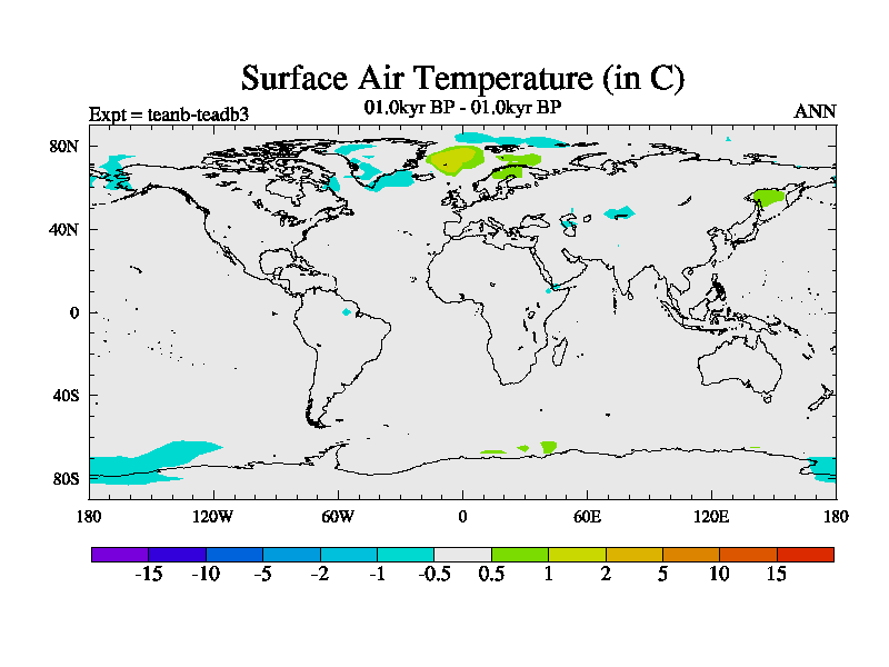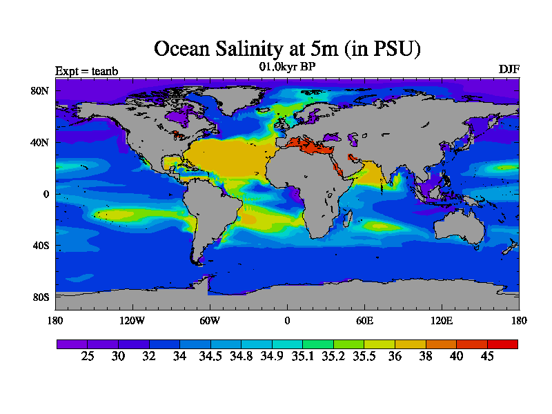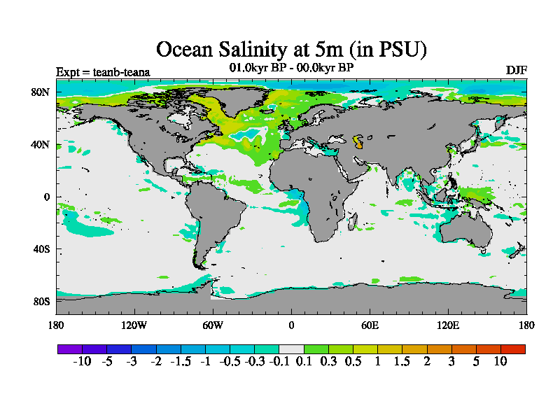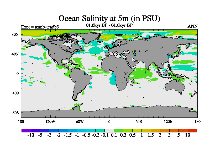 This is a continuation of teadb except that (a) the mass of the atmosphere has been corrected to the same as the control. and (b) we are not longer using the salinity conservation update but instead using a revised waterfix. This job is a standard version of HadCM3M2.1D (dynamic TRIFFID) based on tdaae. However, it has a number of small additions/changes. These include: (1) the dark_respiration update is included, (2) the orbital update as in FAMOUS, (3) salinity conservation is included, (4) age of water tracer included. One executable can be used for all time periods The boundary conditions are (a) peltier6g, used in anomaly mode, (b) GHGs from the latest estimates, (c) global salinity is 1PSU more at LGM and scaled with sealevel for other periods (d) orbital changes via FAMOUS update (default is Berger and Loutre 1991)