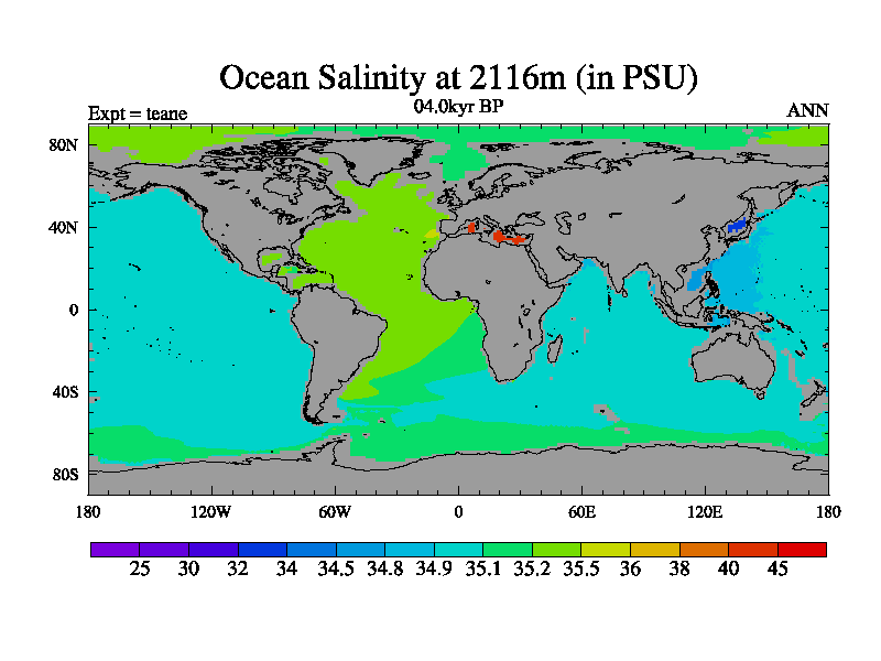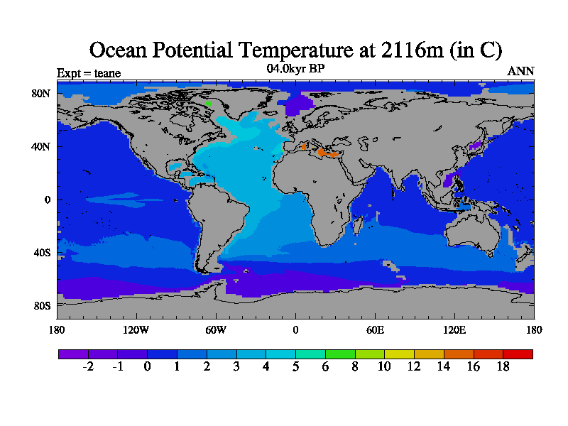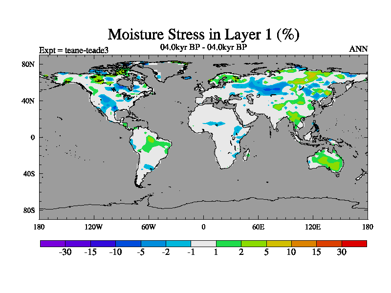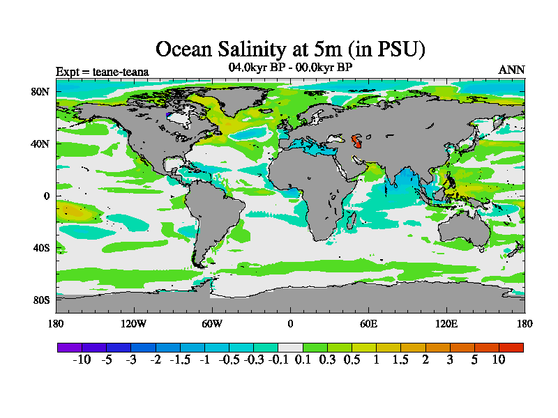 This is a continuation of teade except that (a) the mass of the atmosphere has been corrected to the same as the control. and (b) we are not longer using the salinity conservation update but instead using a revised waterfix. This job is a standard version of HadCM3M2.1D (dynamic TRIFFID) based on tdaae. However, it has a number of small additions/changes. These include: (1) the dark_respiration update is included, (2) the orbital update as in FAMOUS, (3) salinity conservation is included, (4) age of water tracer included. One executable can be used for all time periods The boundary conditions are (a) peltier6g, used in anomaly mode, (b) GHGs from the latest estimates, (c) global salinity is 1PSU more at LGM and scaled with sealevel for other periods (d) orbital changes via FAMOUS update (default is Berger and Loutre 1991)