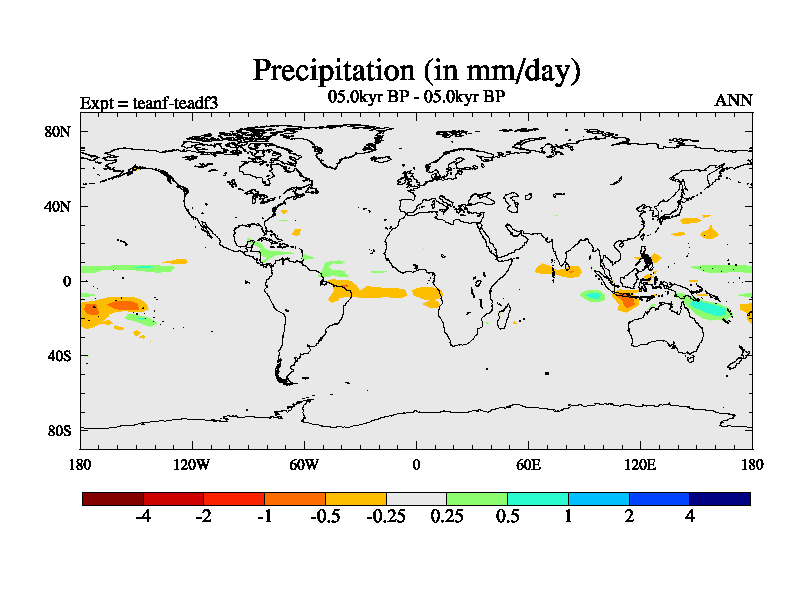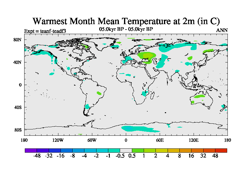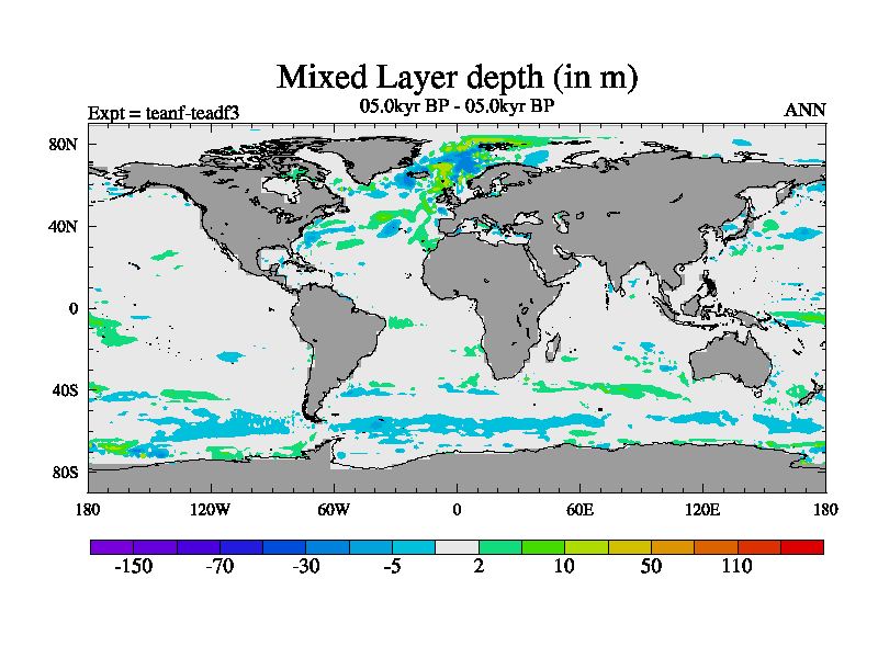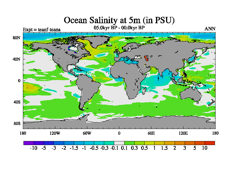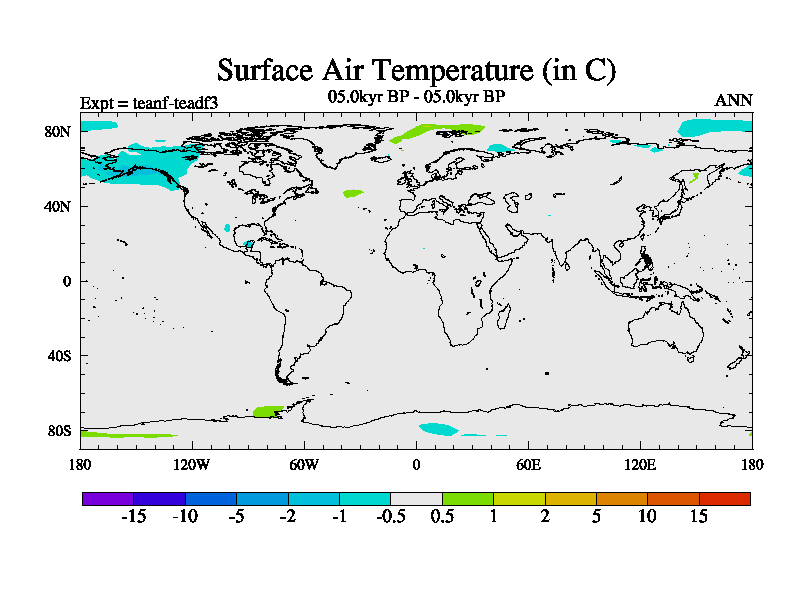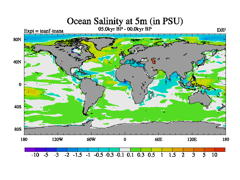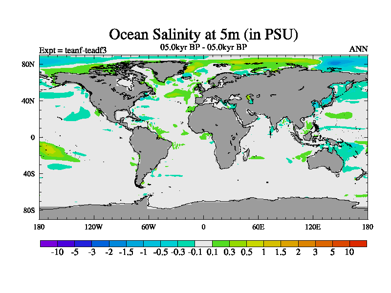 This is a continuation of teadf except that (a) the mass of the atmosphere has been corrected to the same as the control. and (b) we are not longer using the salinity conservation update but instead using a revised waterfix. This job is a standard version of HadCM3M2.1D (dynamic TRIFFID) based on tdaae. However, it has a number of small additions/changes. These include: (1) the dark_respiration update is included, (2) the orbital update as in FAMOUS, (3) salinity conservation is included, (4) age of water tracer included. One executable can be used for all time periods The boundary conditions are (a) peltier6g, used in anomaly mode, (b) GHGs from the latest estimates, (c) global salinity is 1PSU more at LGM and scaled with sealevel for other periods (d) orbital changes via FAMOUS update (default is Berger and Loutre 1991)