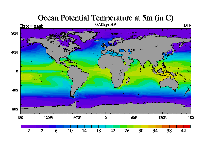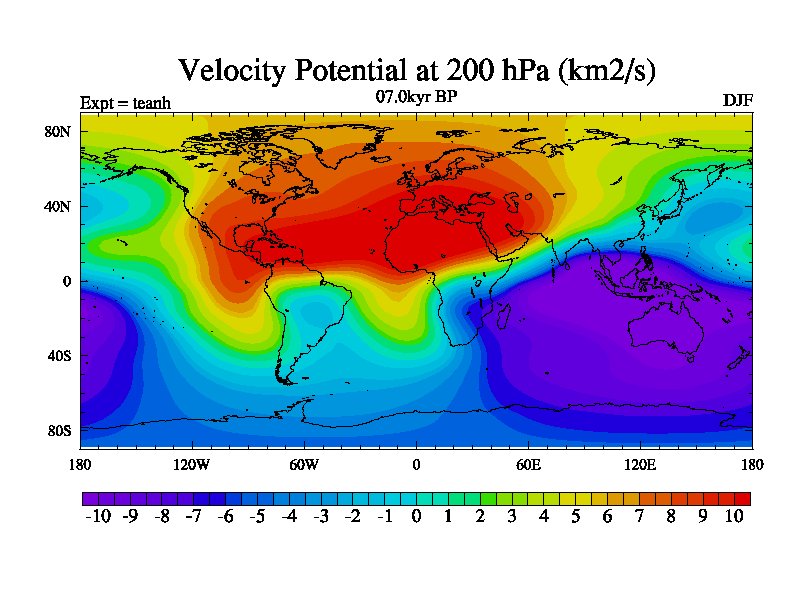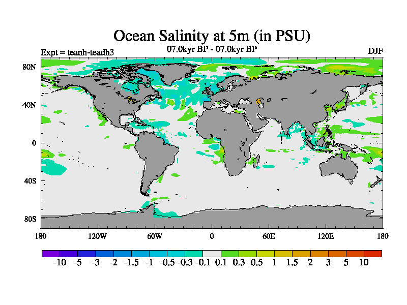 This is a continuation of teadh except that (a) the mass of the atmosphere has been corrected to the same as the control. and (b) we are not longer using the salinity conservation update but instead using a revised waterfix. This job is a standard version of HadCM3M2.1D (dynamic TRIFFID) based on tdaae. However, it has a number of small additions/changes. These include: (1) the dark_respiration update is included, (2) the orbital update as in FAMOUS, (3) salinity conservation is included, (4) age of water tracer included. One executable can be used for all time periods The boundary conditions are (a) peltier6g, used in anomaly mode, (b) GHGs from the latest estimates, (c) global salinity is 1PSU more at LGM and scaled with sealevel for other periods (d) orbital changes via FAMOUS update (default is Berger and Loutre 1991)