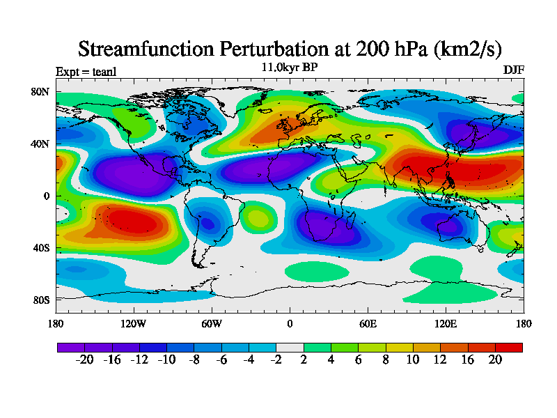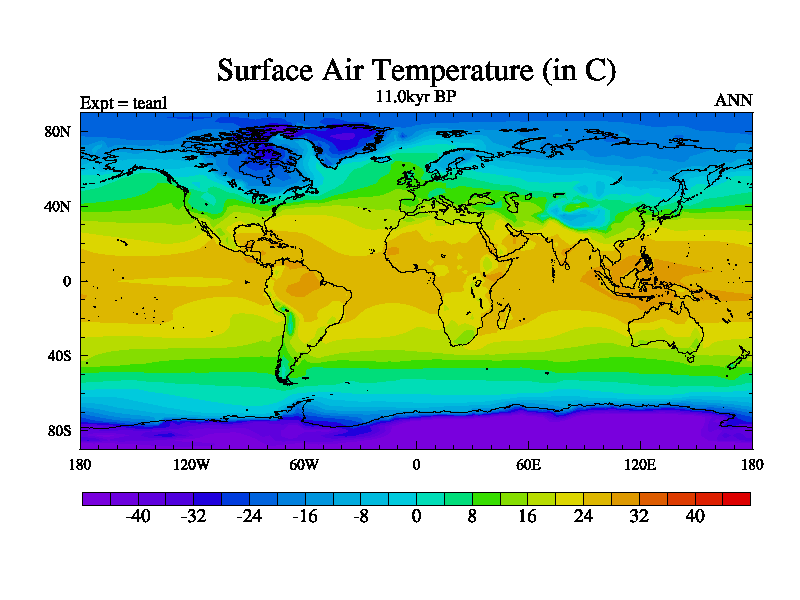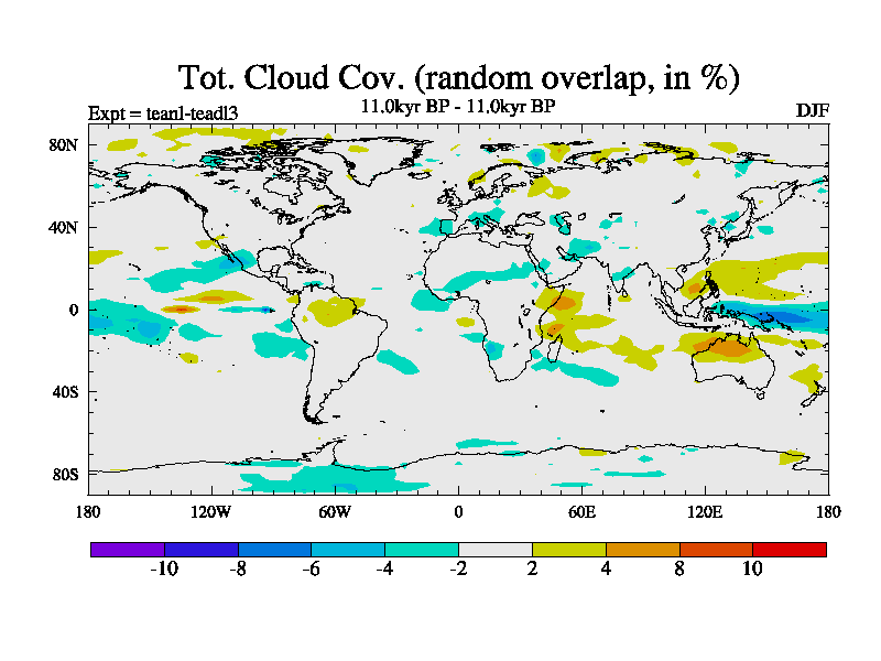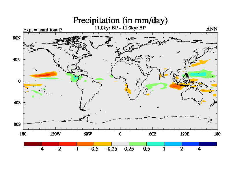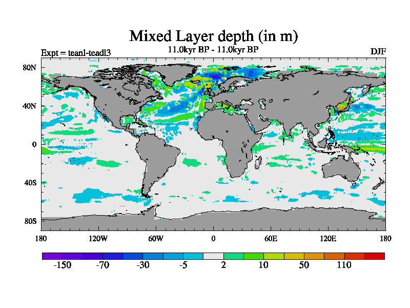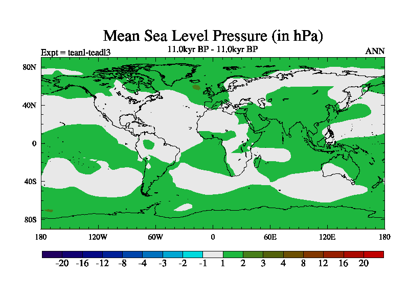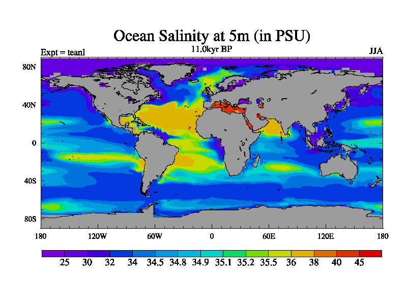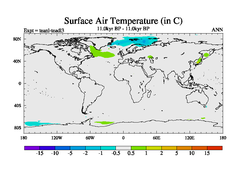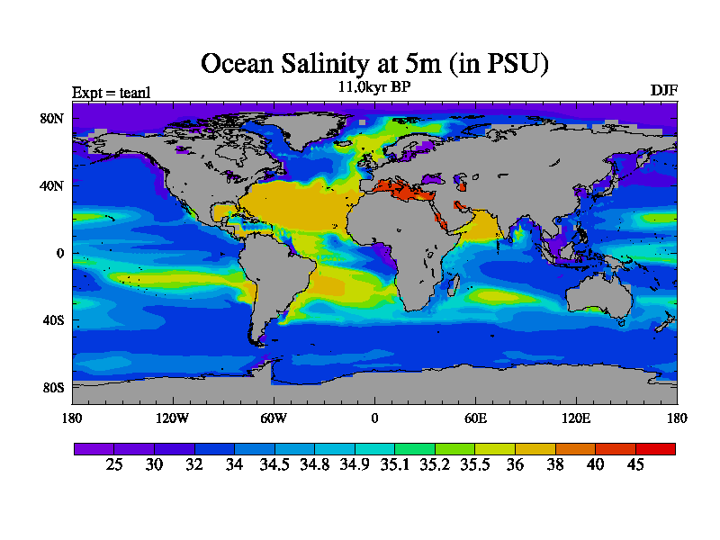This is a continuation of teadl except that (a) the mass of the atmosphere has been corrected to the same as the control. and (b) we are not longer using the salinity conservation update but instead using a revised waterfix. This job is a standard version of HadCM3M2.1D (dynamic TRIFFID) based on tdaae. However, it has a number of small additions/changes. These include: (1) the dark_respiration update is included, (2) the orbital update as in FAMOUS, (3) salinity conservation is included, (4) age of water tracer included. One executable can be used for all time periods The boundary conditions are (a) peltier6g, used in anomaly mode, (b) GHGs from the latest estimates, (c) global salinity is 1PSU more at LGM and scaled with sealevel for other periods (d) orbital changes via FAMOUS update (default is Berger and Loutre 1991)