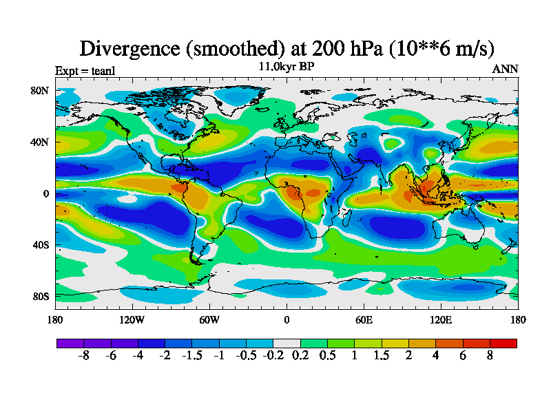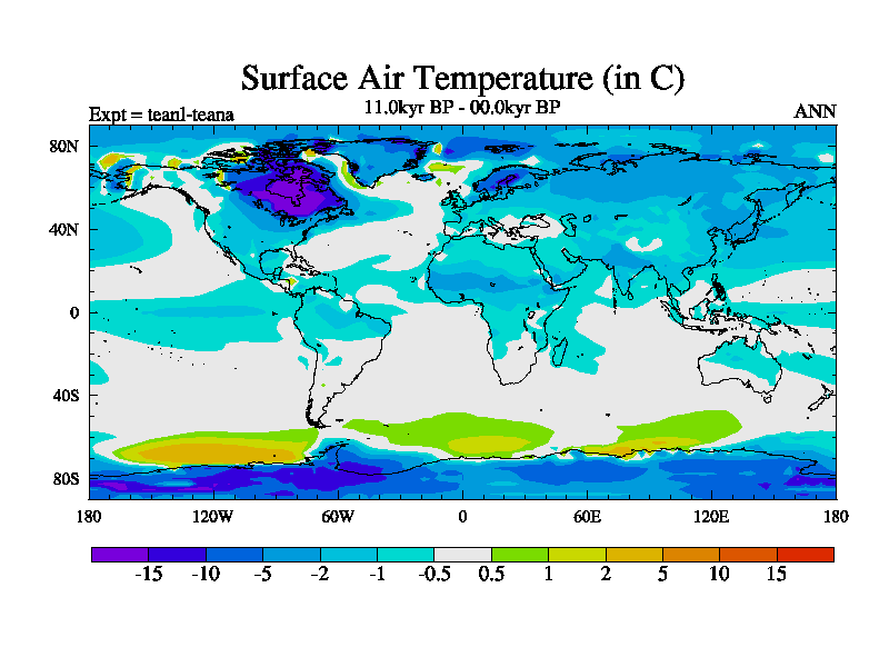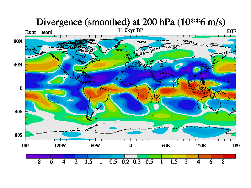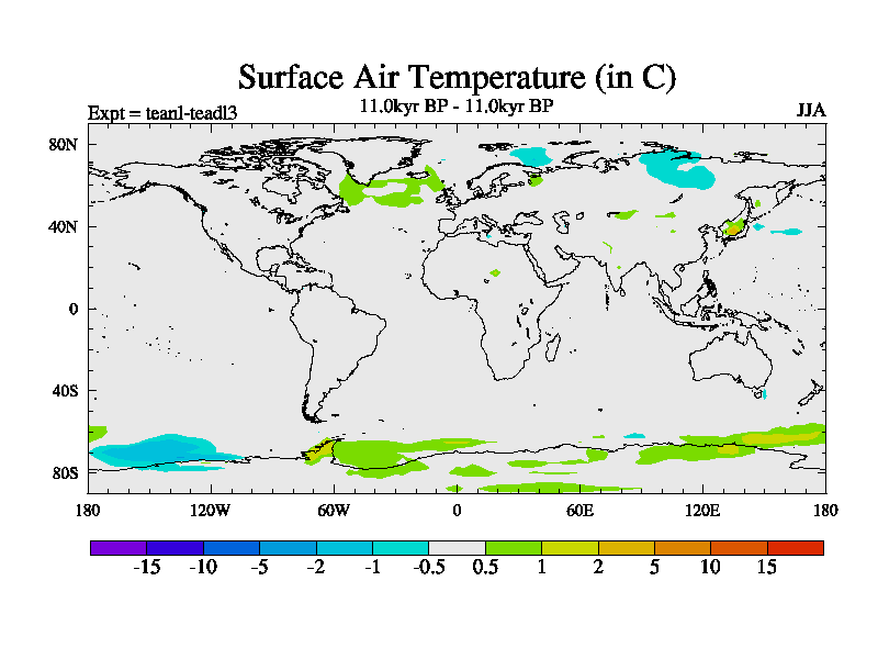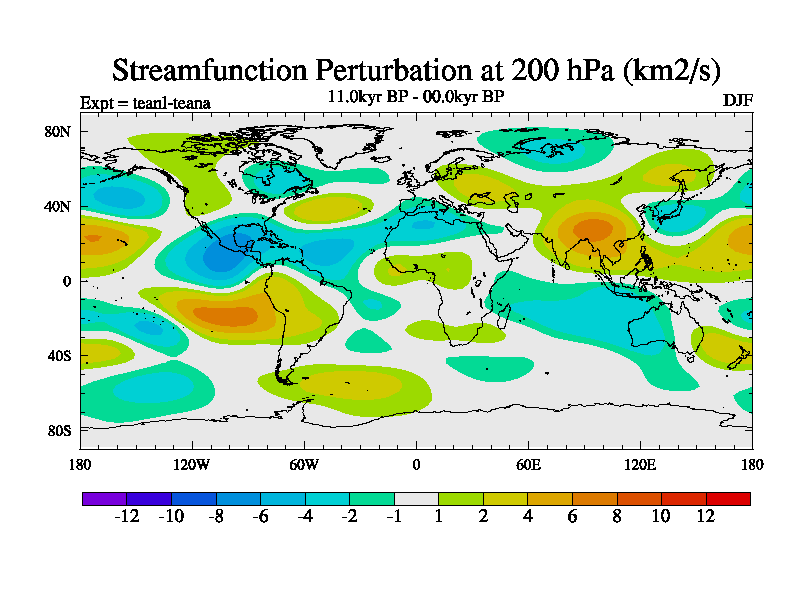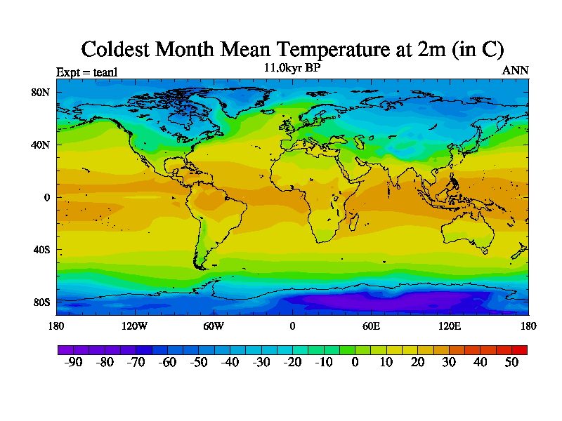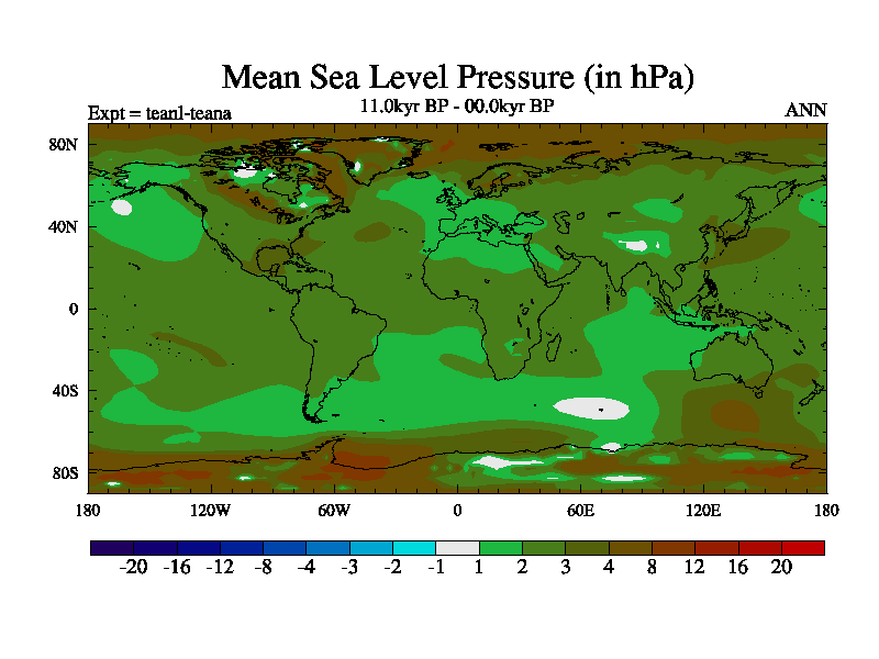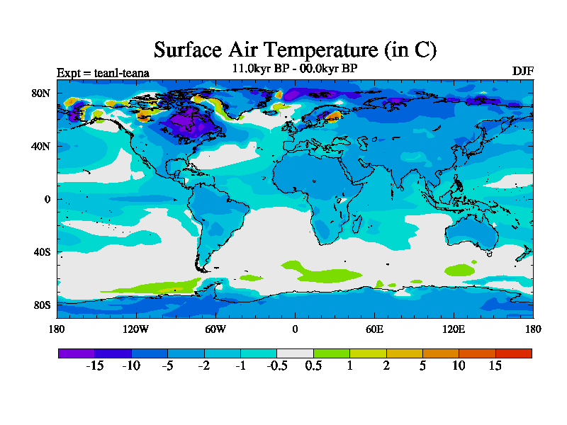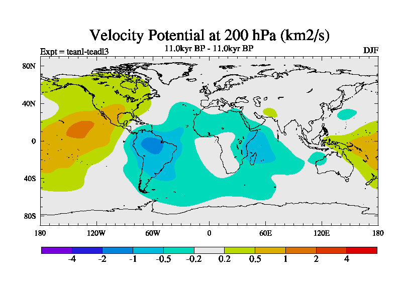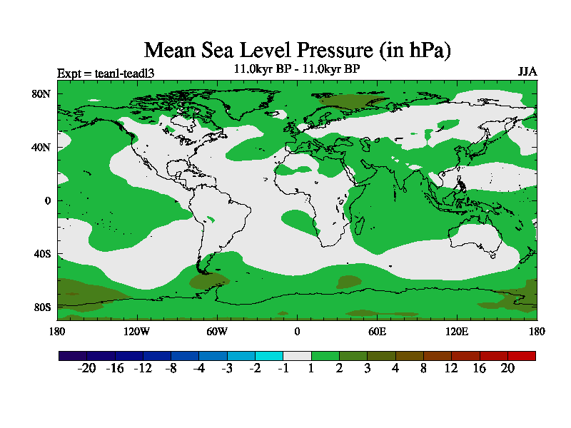 This is a continuation of teadl except that (a) the mass of the atmosphere has been corrected to the same as the control. and (b) we are not longer using the salinity conservation update but instead using a revised waterfix. This job is a standard version of HadCM3M2.1D (dynamic TRIFFID) based on tdaae. However, it has a number of small additions/changes. These include: (1) the dark_respiration update is included, (2) the orbital update as in FAMOUS, (3) salinity conservation is included, (4) age of water tracer included. One executable can be used for all time periods The boundary conditions are (a) peltier6g, used in anomaly mode, (b) GHGs from the latest estimates, (c) global salinity is 1PSU more at LGM and scaled with sealevel for other periods (d) orbital changes via FAMOUS update (default is Berger and Loutre 1991)