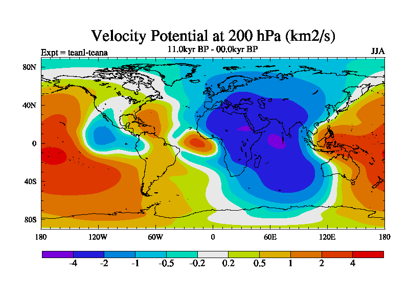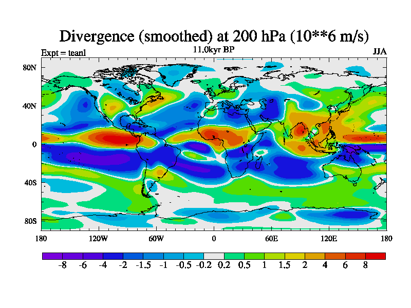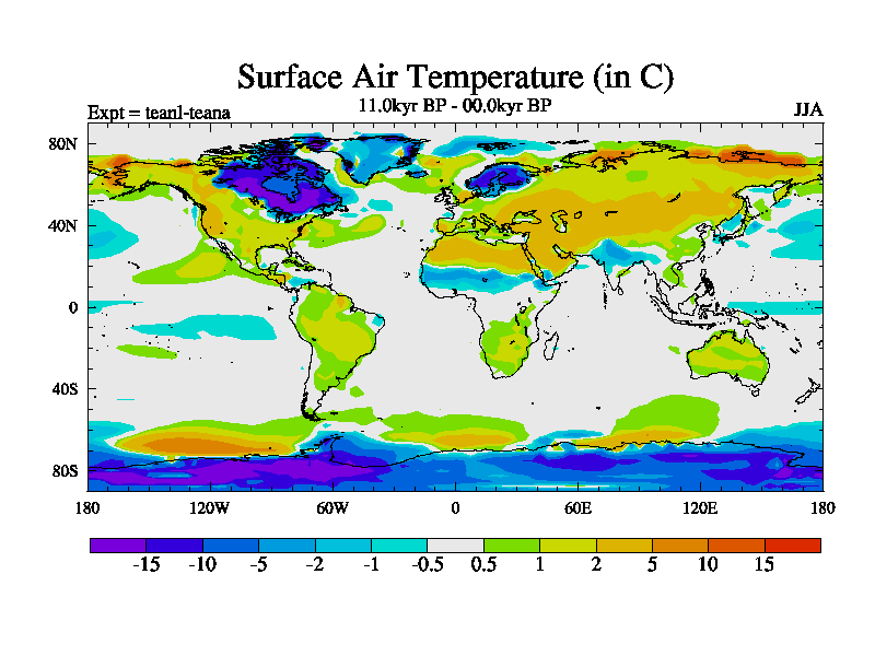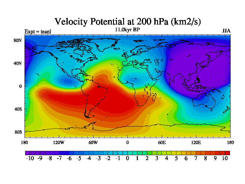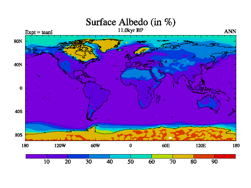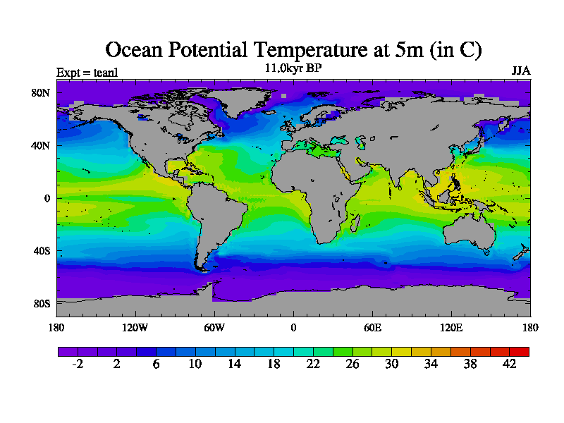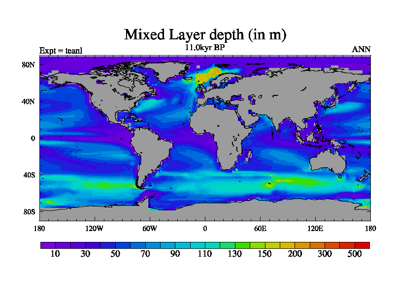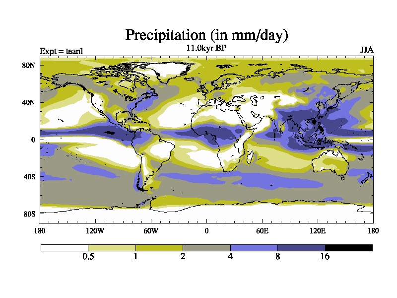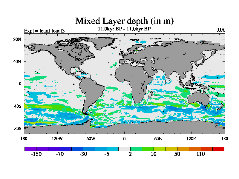 This is a continuation of teadl except that (a) the mass of the atmosphere has been corrected to the same as the control. and (b) we are not longer using the salinity conservation update but instead using a revised waterfix. This job is a standard version of HadCM3M2.1D (dynamic TRIFFID) based on tdaae. However, it has a number of small additions/changes. These include: (1) the dark_respiration update is included, (2) the orbital update as in FAMOUS, (3) salinity conservation is included, (4) age of water tracer included. One executable can be used for all time periods The boundary conditions are (a) peltier6g, used in anomaly mode, (b) GHGs from the latest estimates, (c) global salinity is 1PSU more at LGM and scaled with sealevel for other periods (d) orbital changes via FAMOUS update (default is Berger and Loutre 1991)