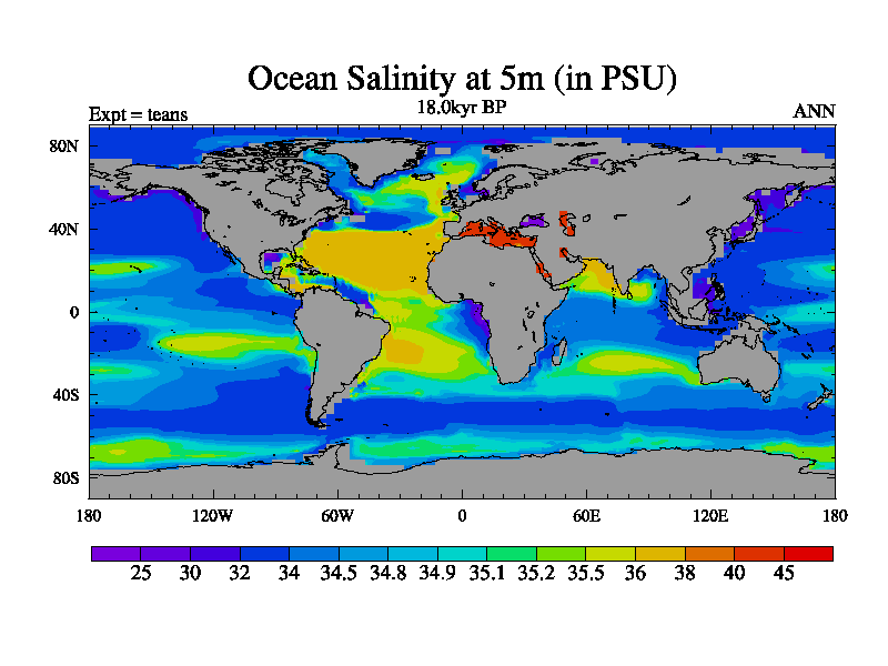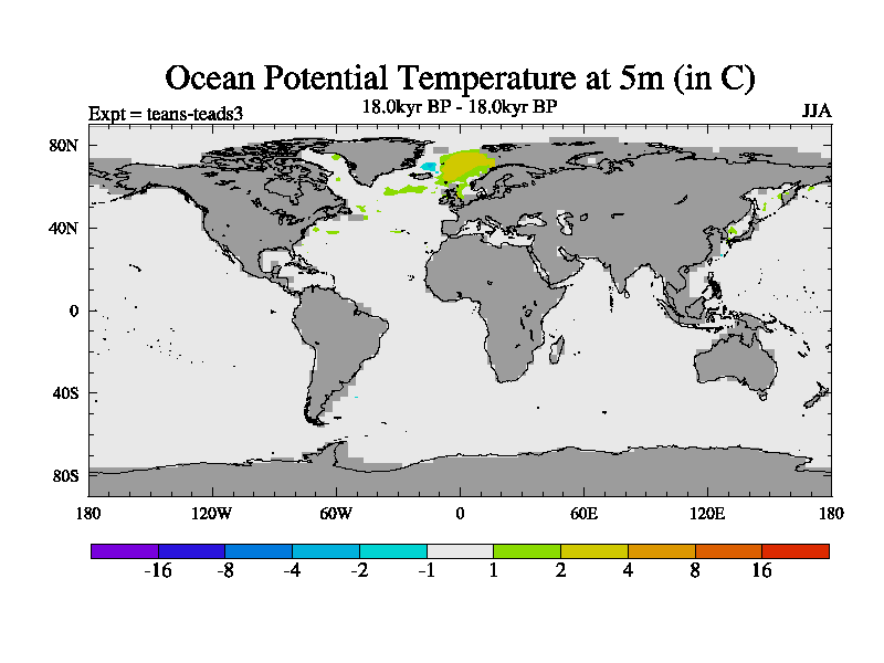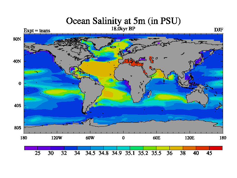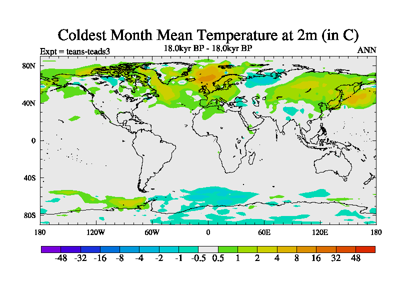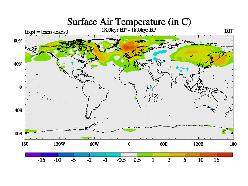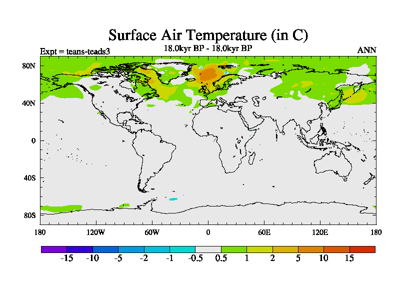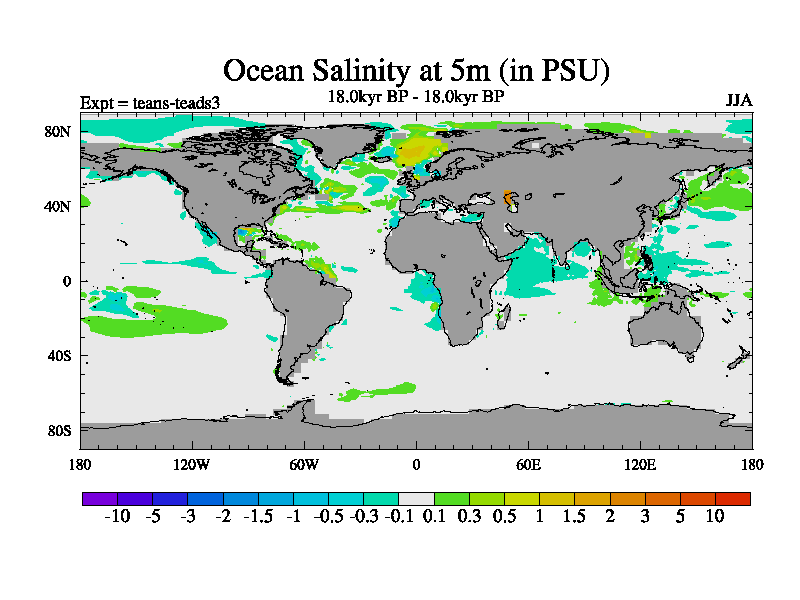 This is a continuation of teads except that (a) the mass of the atmosphere has been corrected to the same as the control. and (b) we are not longer using the salinity conservation update but instead using a revised waterfix. This job is a standard version of HadCM3M2.1D (dynamic TRIFFID) based on tdaae. However, it has a number of small additions/changes. These include: (1) the dark_respiration update is included, (2) the orbital update as in FAMOUS, (3) salinity conservation is included, (4) age of water tracer included. One executable can be used for all time periods The boundary conditions are (a) peltier6g, used in anomaly mode, (b) GHGs from the latest estimates, (c) global salinity is 1PSU more at LGM and scaled with sealevel for other periods (d) orbital changes via FAMOUS update (default is Berger and Loutre 1991)