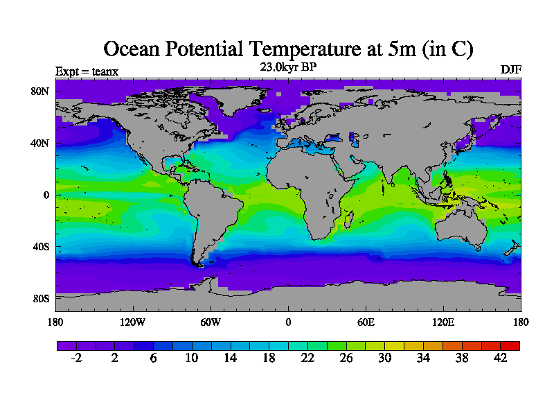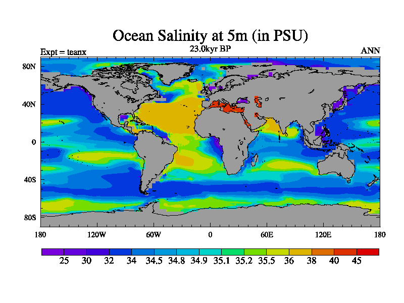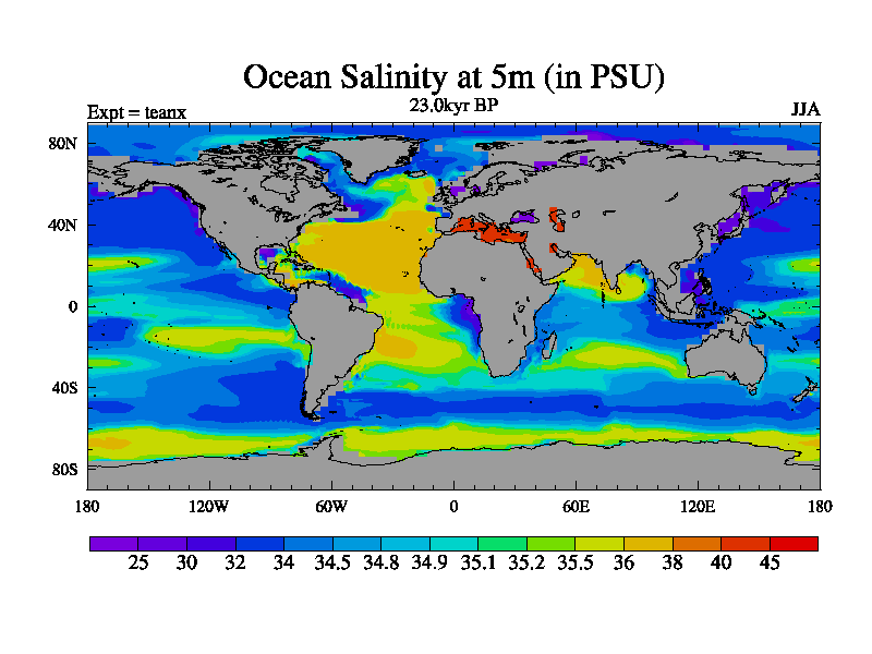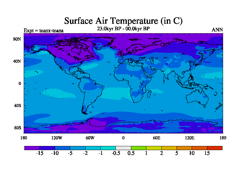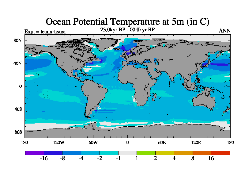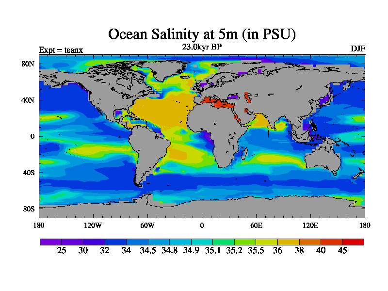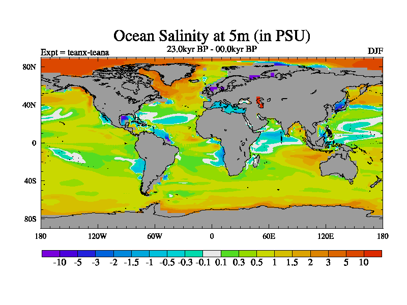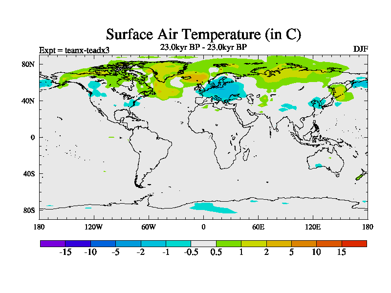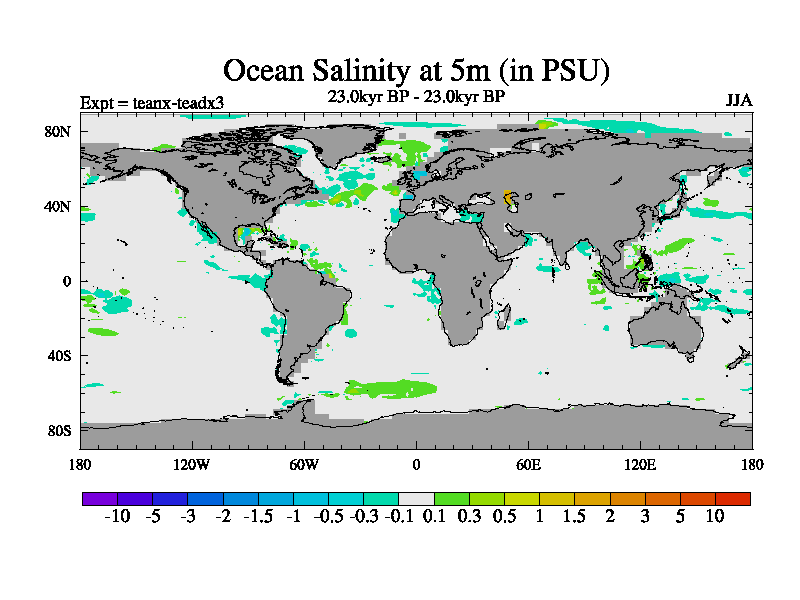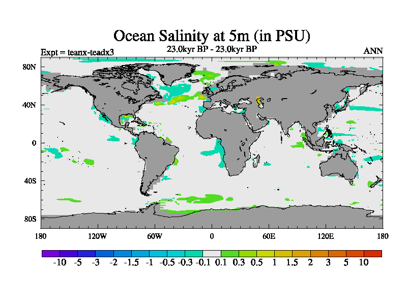 This is a continuation of teadx except that (a) the mass of the atmosphere has been corrected to the same as the control. and (b) we are not longer using the salinity conservation update but instead using a revised waterfix. This job is a standard version of HadCM3M2.1D (dynamic TRIFFID) based on tdaae. However, it has a number of small additions/changes. These include: (1) the dark_respiration update is included, (2) the orbital update as in FAMOUS, (3) salinity conservation is included, (4) age of water tracer included. One executable can be used for all time periods The boundary conditions are (a) peltier6g, used in anomaly mode, (b) GHGs from the latest estimates, (c) global salinity is 1PSU more at LGM and scaled with sealevel for other periods (d) orbital changes via FAMOUS update (default is Berger and Loutre 1991)