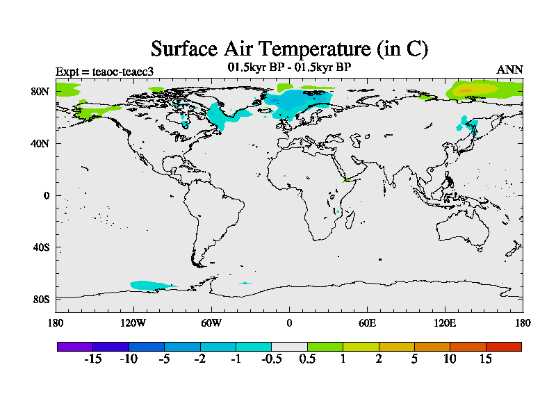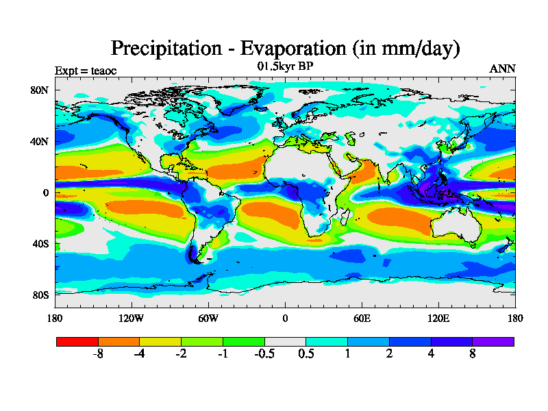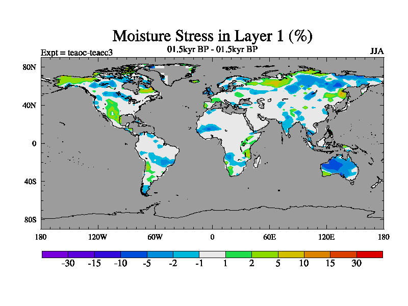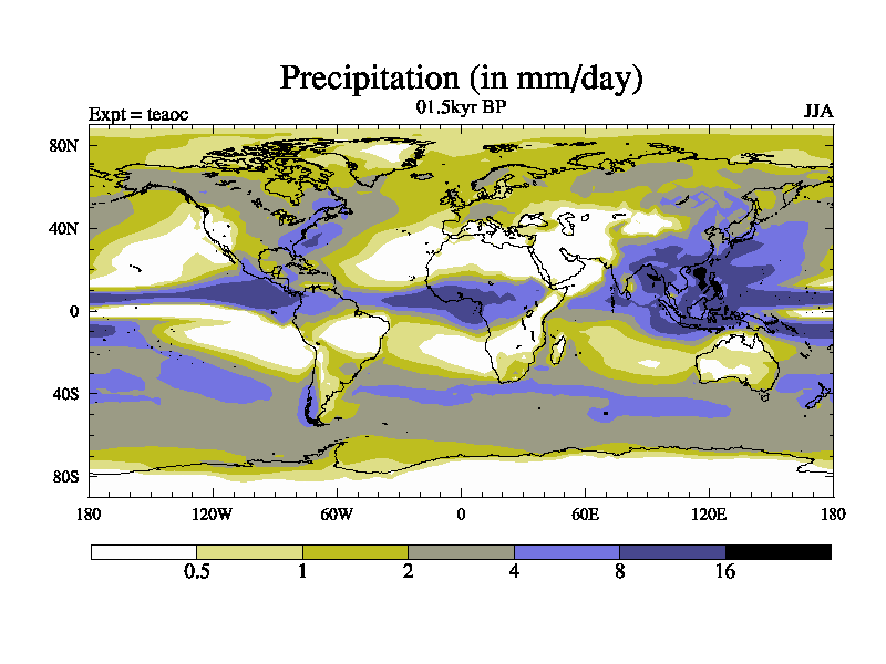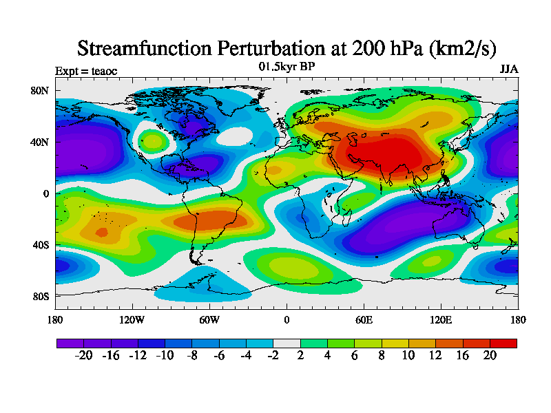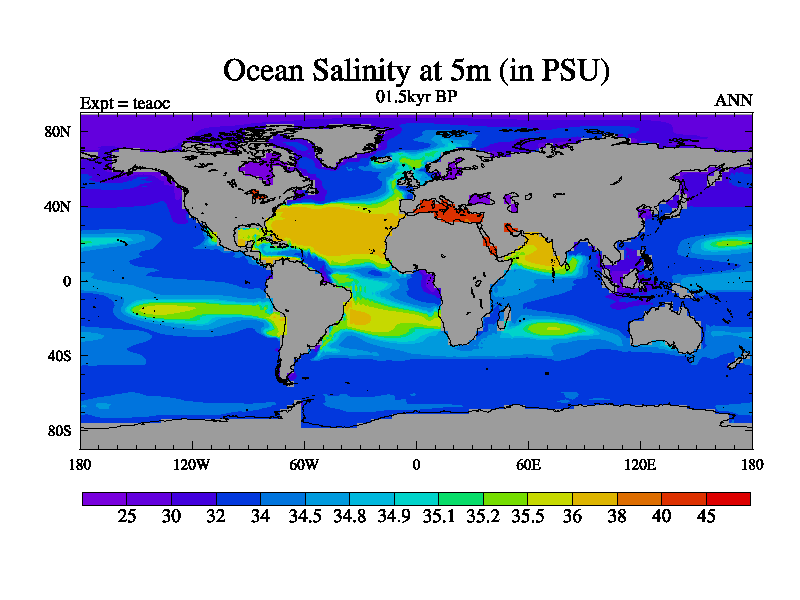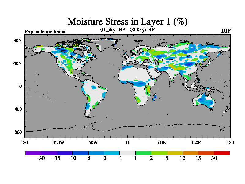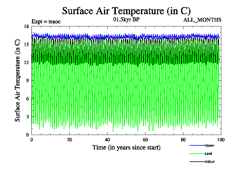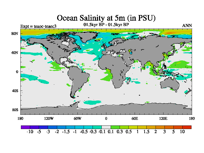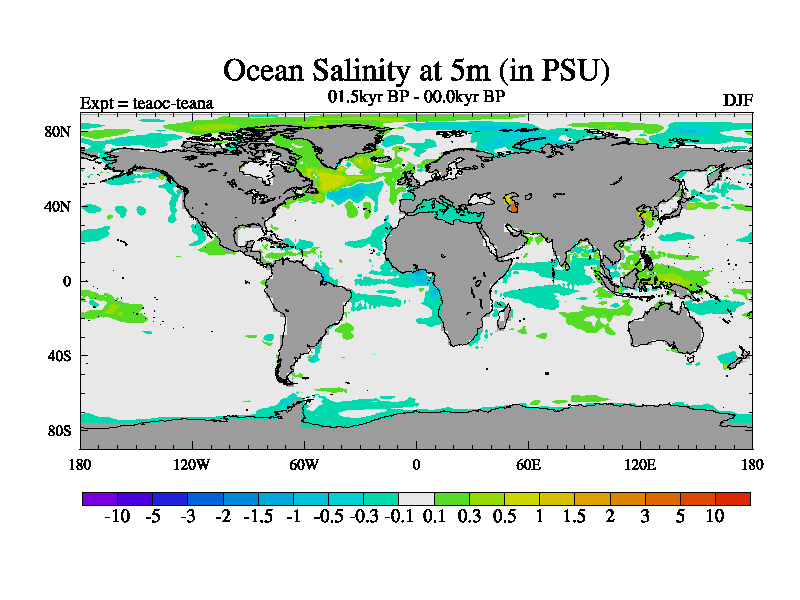 This is a continuation of teaec except that (a) the mass of the atmosphere has been corrected to the same as the control. and (b) we are not longer using the salinity conservation update but instead using a revised waterfix. This job is a standard version of HadCM3M2.1D (dynamic TRIFFID) based on tdaae. However, it has a number of small additions/changes. These include: (1) the dark_respiration update is included, (2) the orbital update as in FAMOUS, (3) salinity conservation is included, (4) age of water tracer included. One executable can be used for all time periods The boundary conditions are (a) peltier6g, used in anomaly mode, (b) GHGs from the latest estimates, (c) global salinity is 1PSU more at LGM and scaled with sealevel for other periods (d) orbital changes via FAMOUS update (default is Berger and Loutre 1991)