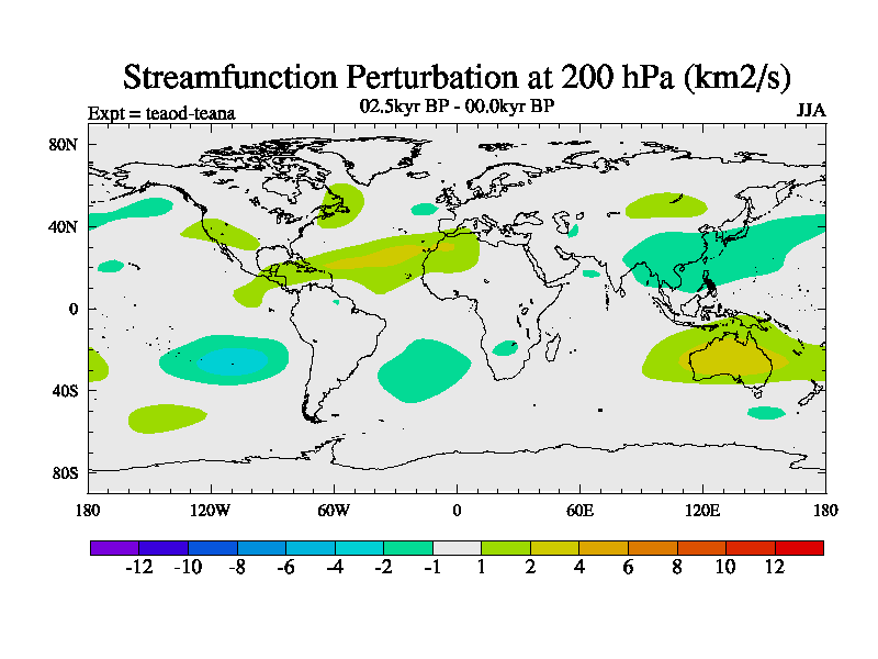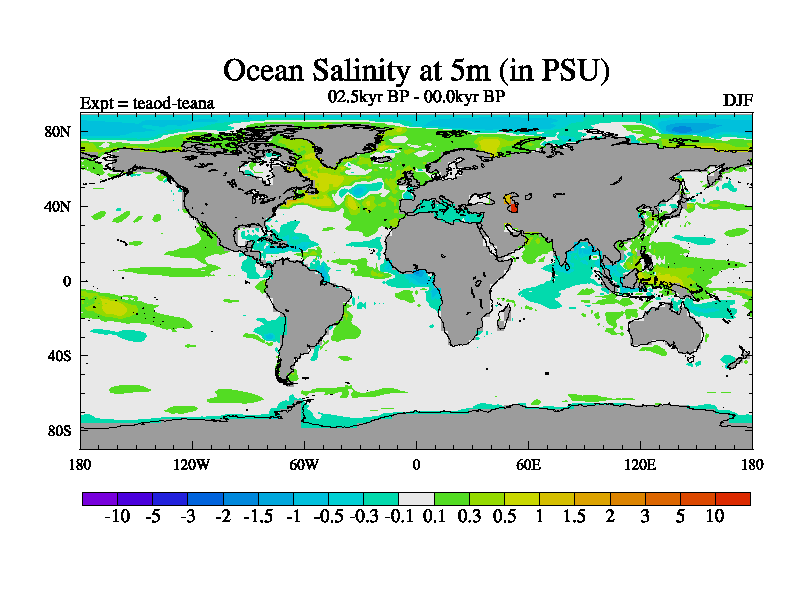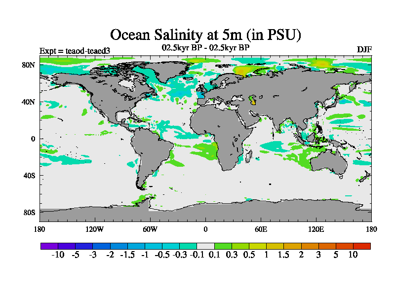 This is a continuation of teaed except that (a) the mass of the atmosphere has been corrected to the same as the control. and (b) we are not longer using the salinity conservation update but instead using a revised waterfix. This job is a standard version of HadCM3M2.1D (dynamic TRIFFID) based on tdaae. However, it has a number of small additions/changes. These include: (1) the dark_respiration update is included, (2) the orbital update as in FAMOUS, (3) salinity conservation is included, (4) age of water tracer included. One executable can be used for all time periods The boundary conditions are (a) peltier6g, used in anomaly mode, (b) GHGs from the latest estimates, (c) global salinity is 1PSU more at LGM and scaled with sealevel for other periods (d) orbital changes via FAMOUS update (default is Berger and Loutre 1991)