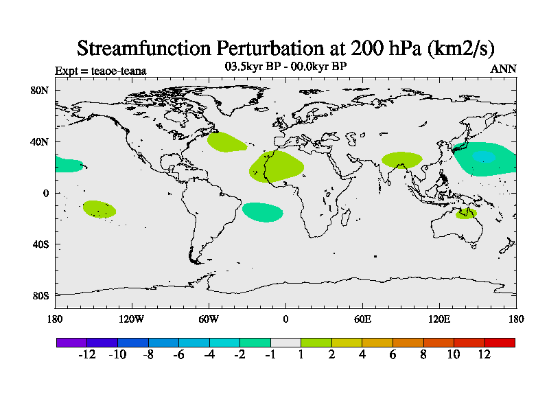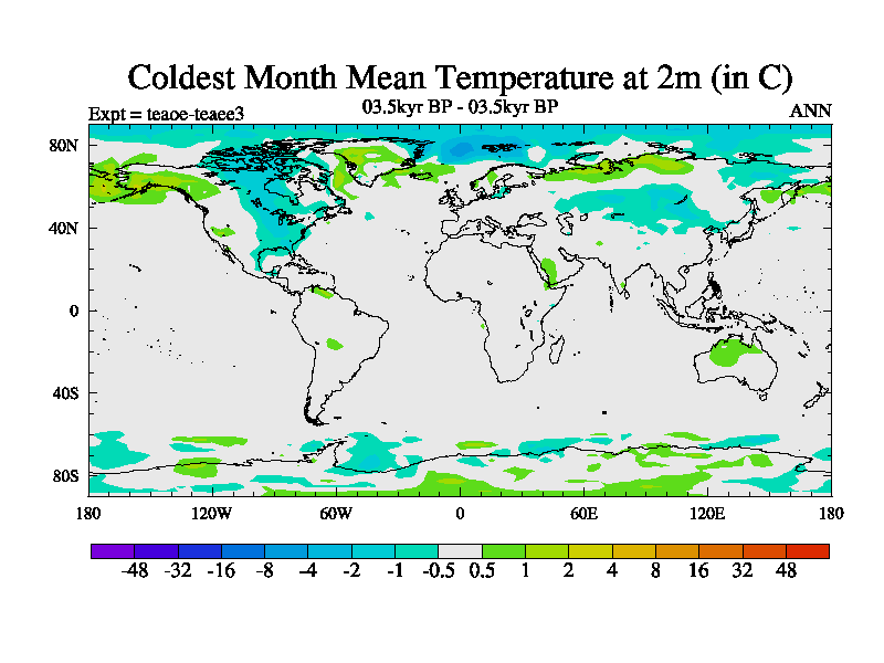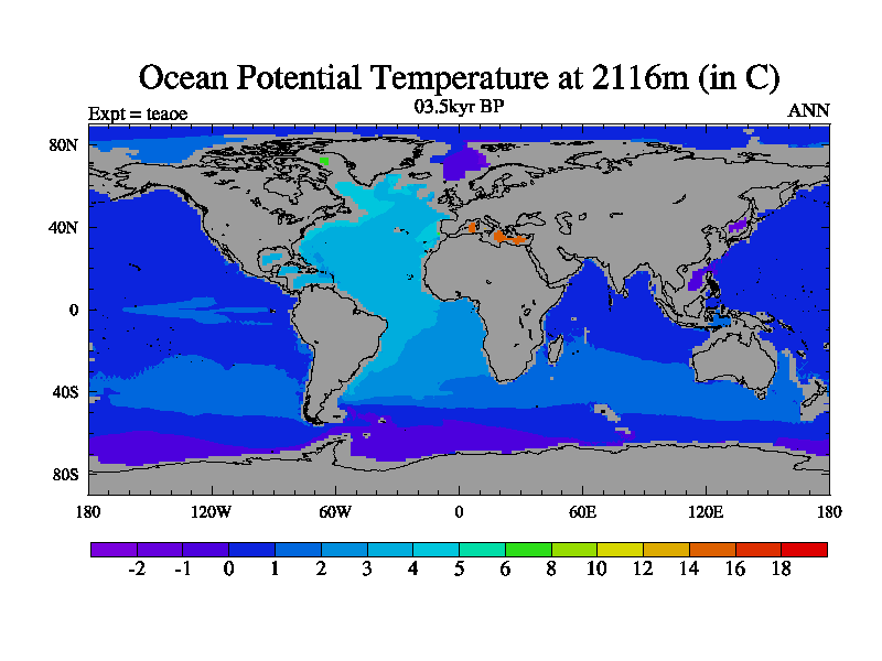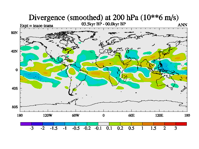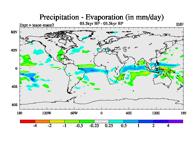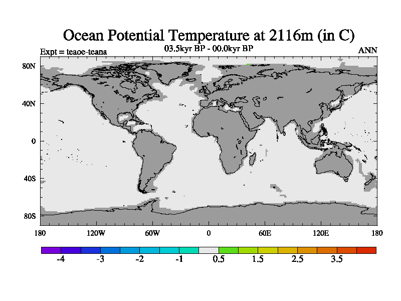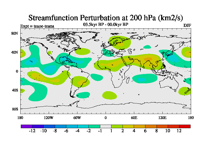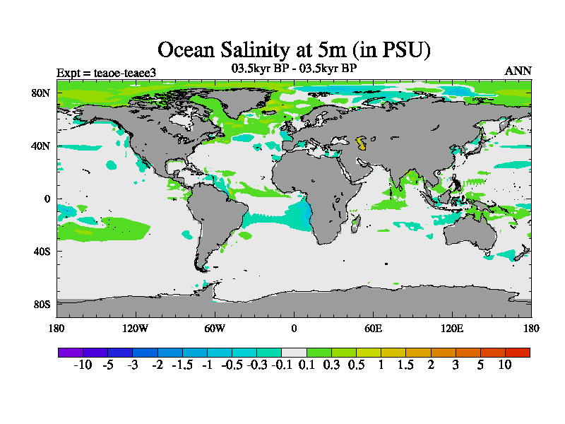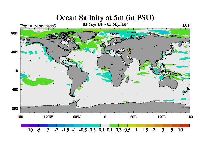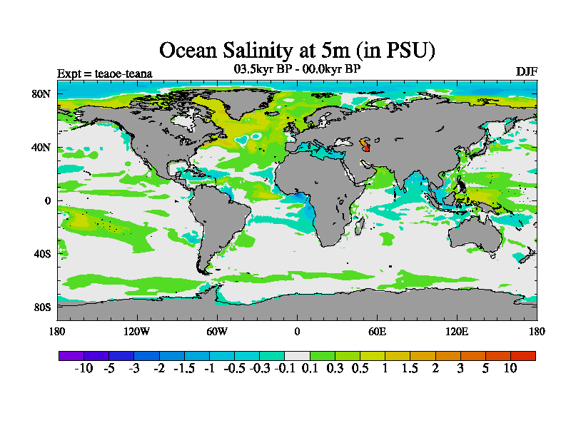 This is a continuation of teaee except that (a) the mass of the atmosphere has been corrected to the same as the control. and (b) we are not longer using the salinity conservation update but instead using a revised waterfix. This job is a standard version of HadCM3M2.1D (dynamic TRIFFID) based on tdaae. However, it has a number of small additions/changes. These include: (1) the dark_respiration update is included, (2) the orbital update as in FAMOUS, (3) salinity conservation is included, (4) age of water tracer included. One executable can be used for all time periods The boundary conditions are (a) peltier6g, used in anomaly mode, (b) GHGs from the latest estimates, (c) global salinity is 1PSU more at LGM and scaled with sealevel for other periods (d) orbital changes via FAMOUS update (default is Berger and Loutre 1991)