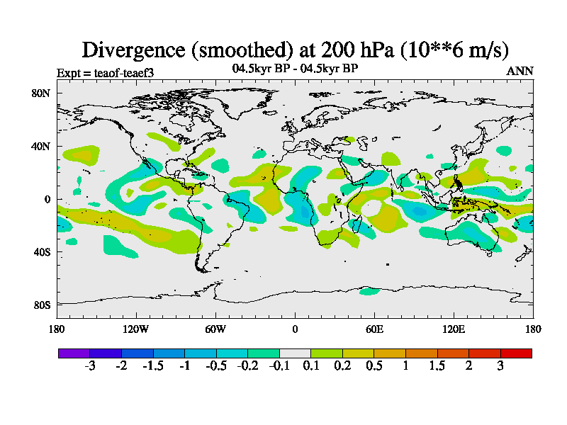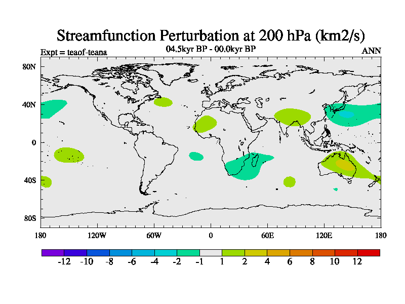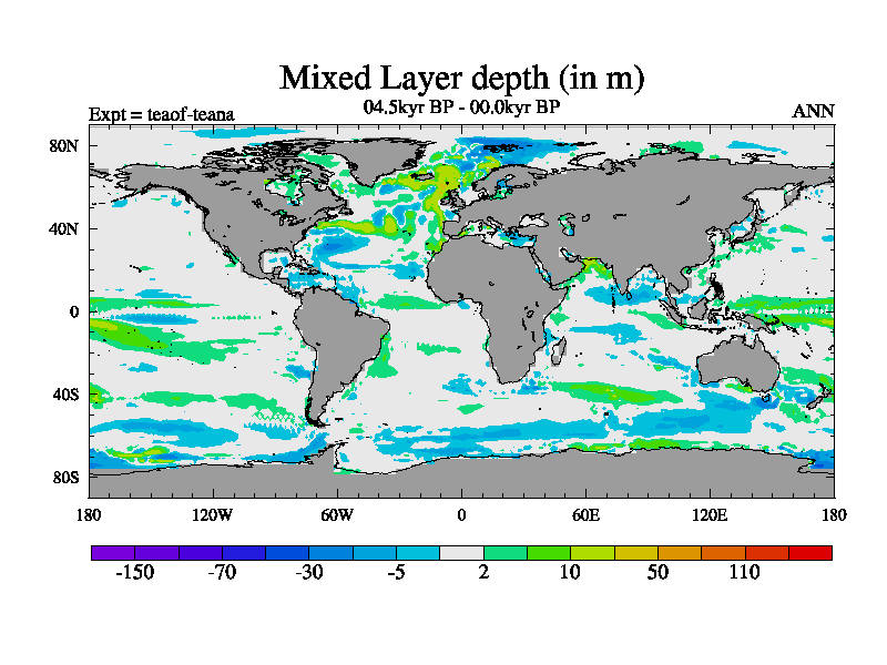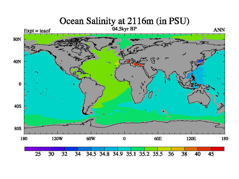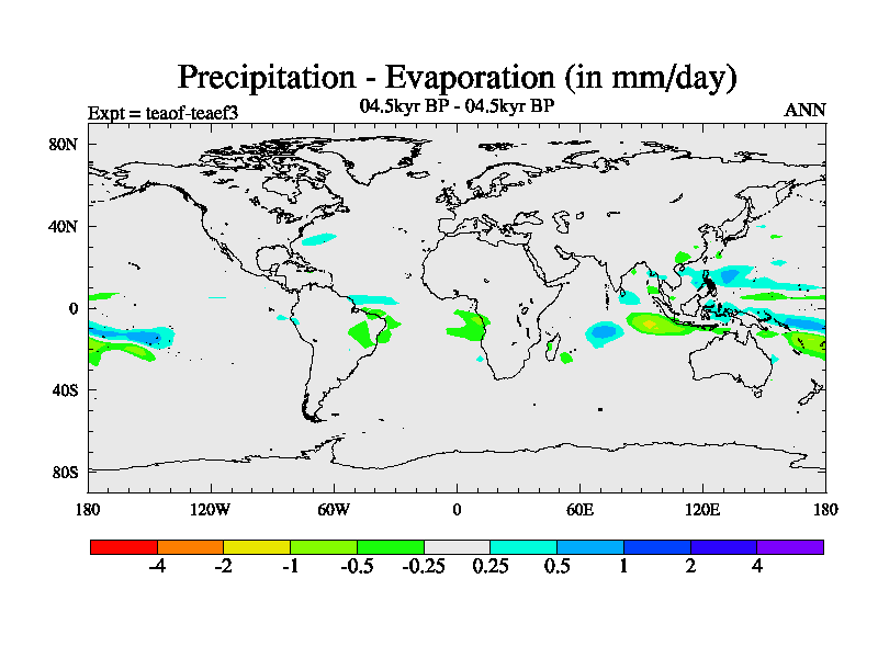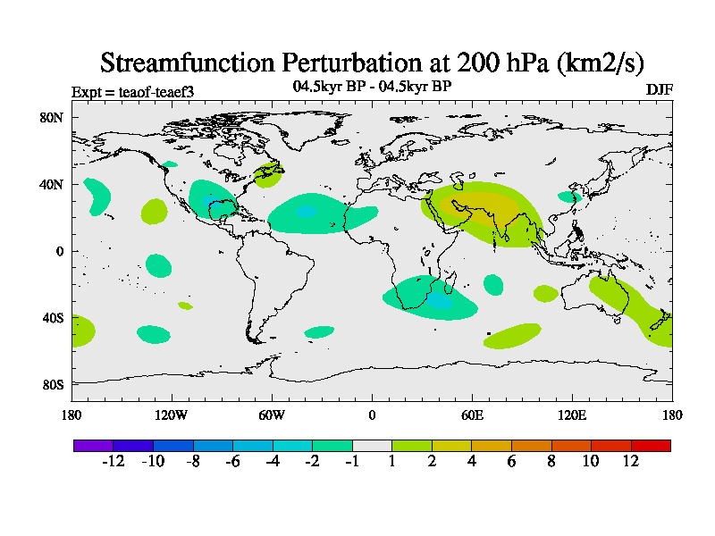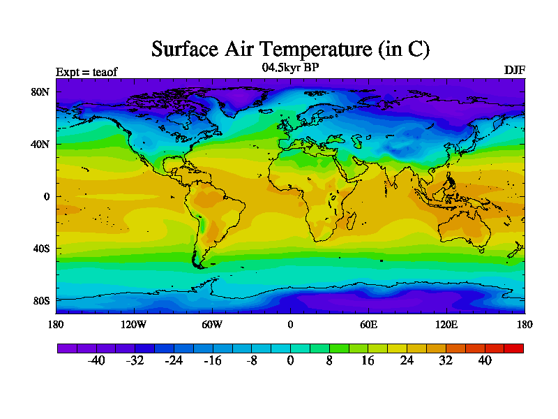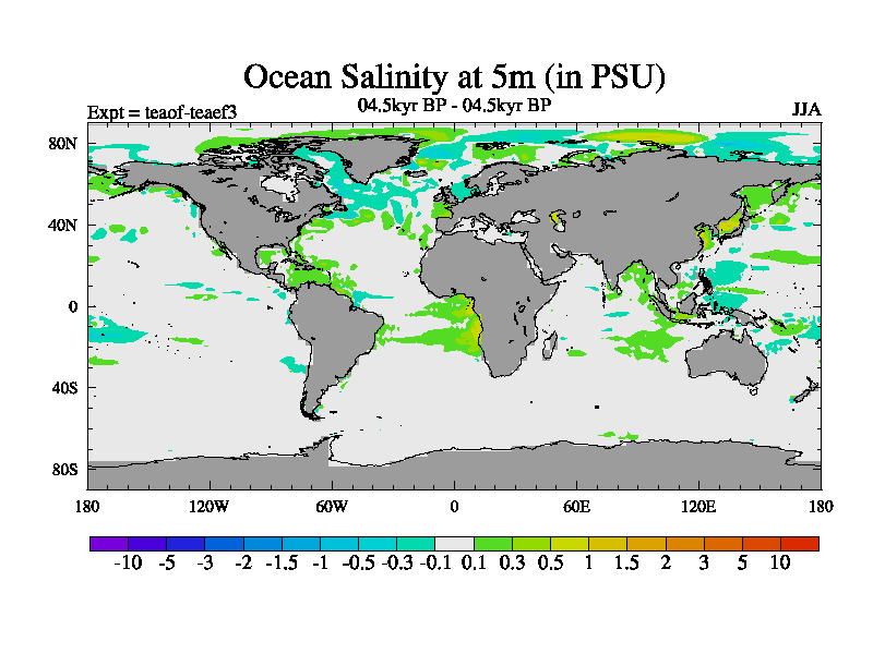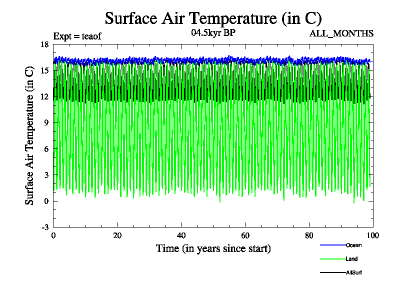 This is a continuation of teaef except that (a) the mass of the atmosphere has been corrected to the same as the control. and (b) we are not longer using the salinity conservation update but instead using a revised waterfix. This job is a standard version of HadCM3M2.1D (dynamic TRIFFID) based on tdaae. However, it has a number of small additions/changes. These include: (1) the dark_respiration update is included, (2) the orbital update as in FAMOUS, (3) salinity conservation is included, (4) age of water tracer included. One executable can be used for all time periods The boundary conditions are (a) peltier6g, used in anomaly mode, (b) GHGs from the latest estimates, (c) global salinity is 1PSU more at LGM and scaled with sealevel for other periods (d) orbital changes via FAMOUS update (default is Berger and Loutre 1991)