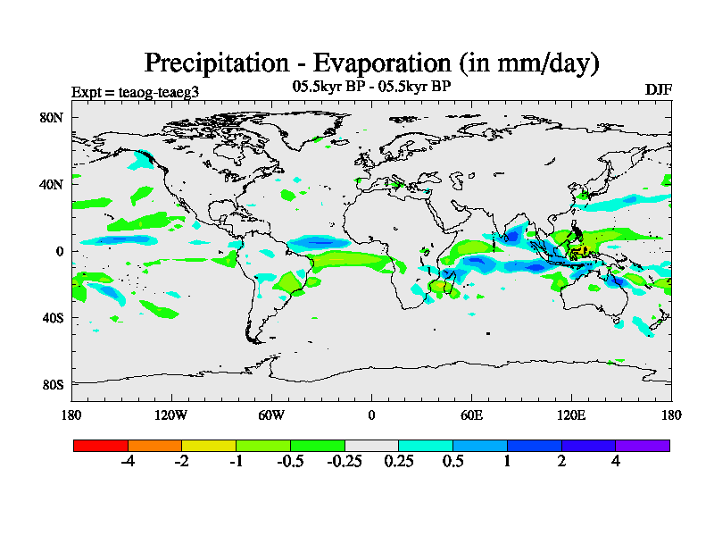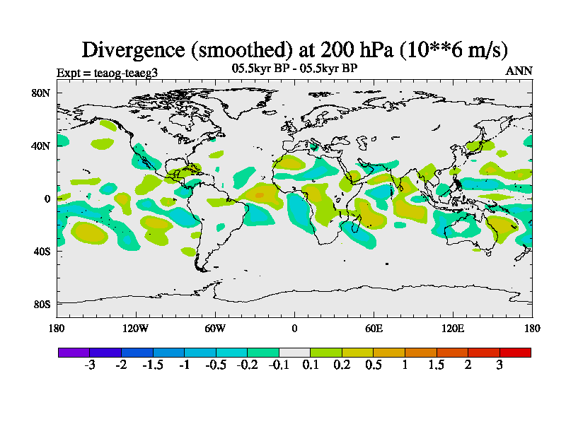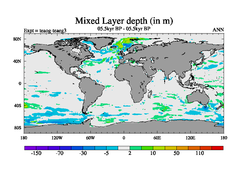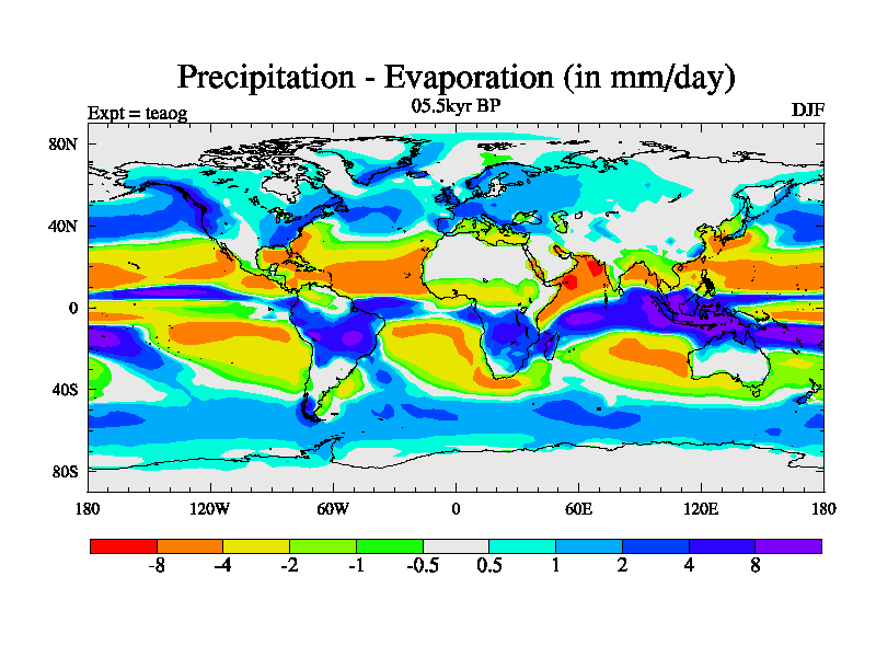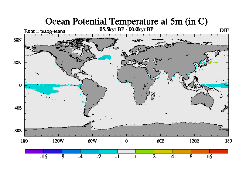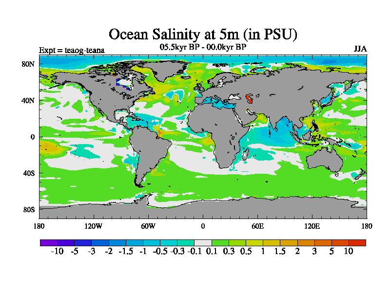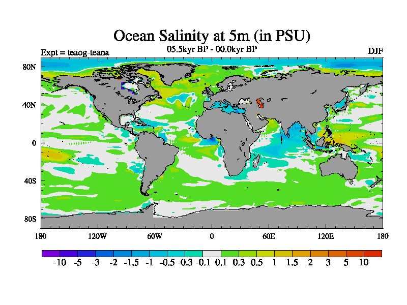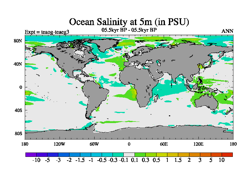 This is a continuation of teaeg except that (a) the mass of the atmosphere has been corrected to the same as the control. and (b) we are not longer using the salinity conservation update but instead using a revised waterfix. This job is a standard version of HadCM3M2.1D (dynamic TRIFFID) based on tdaae. However, it has a number of small additions/changes. These include: (1) the dark_respiration update is included, (2) the orbital update as in FAMOUS, (3) salinity conservation is included, (4) age of water tracer included. One executable can be used for all time periods The boundary conditions are (a) peltier6g, used in anomaly mode, (b) GHGs from the latest estimates, (c) global salinity is 1PSU more at LGM and scaled with sealevel for other periods (d) orbital changes via FAMOUS update (default is Berger and Loutre 1991)
