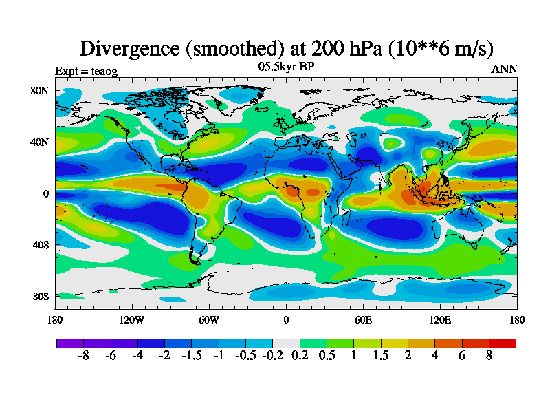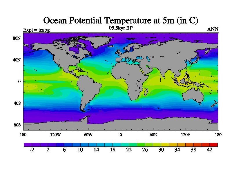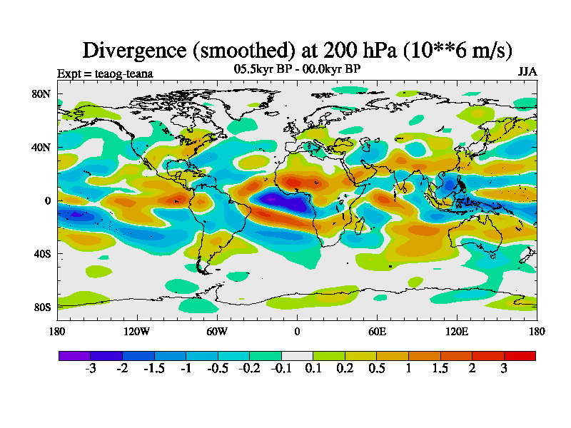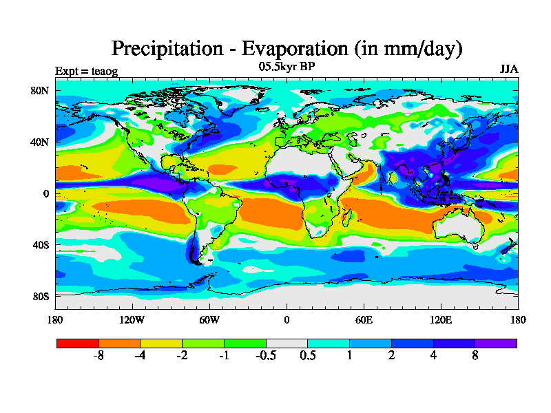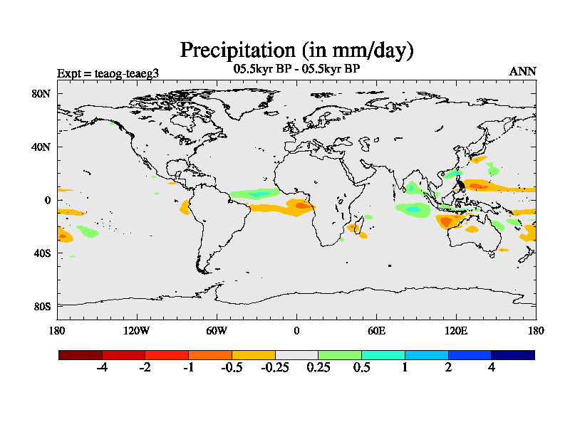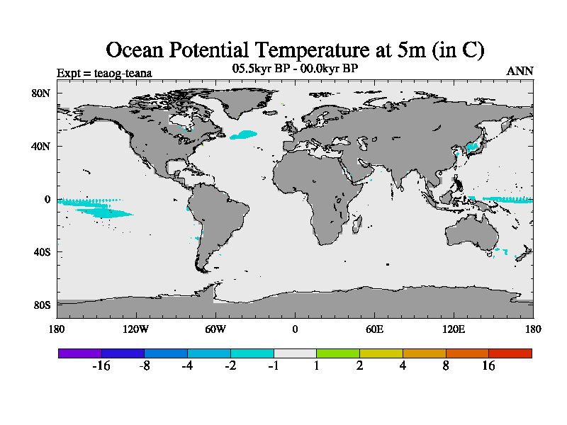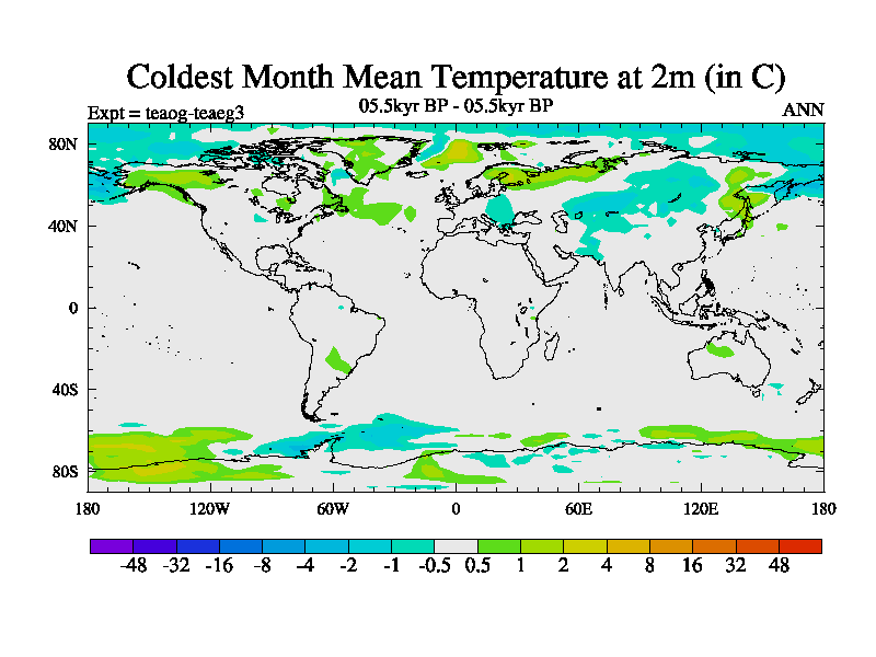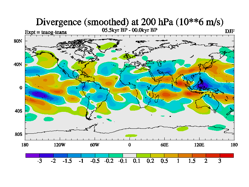 This is a continuation of teaeg except that (a) the mass of the atmosphere has been corrected to the same as the control. and (b) we are not longer using the salinity conservation update but instead using a revised waterfix. This job is a standard version of HadCM3M2.1D (dynamic TRIFFID) based on tdaae. However, it has a number of small additions/changes. These include: (1) the dark_respiration update is included, (2) the orbital update as in FAMOUS, (3) salinity conservation is included, (4) age of water tracer included. One executable can be used for all time periods The boundary conditions are (a) peltier6g, used in anomaly mode, (b) GHGs from the latest estimates, (c) global salinity is 1PSU more at LGM and scaled with sealevel for other periods (d) orbital changes via FAMOUS update (default is Berger and Loutre 1991)