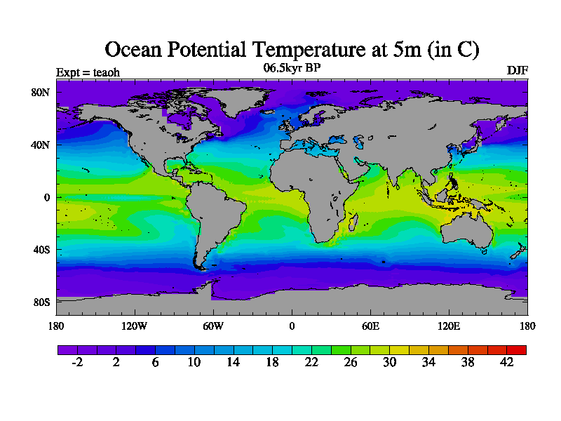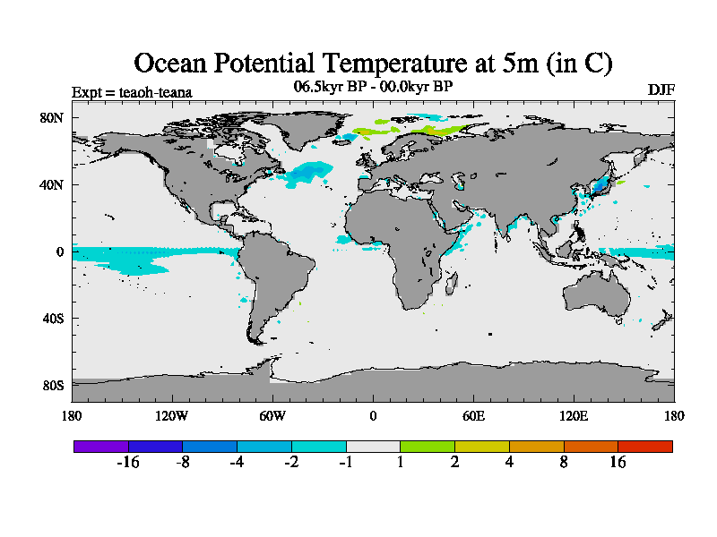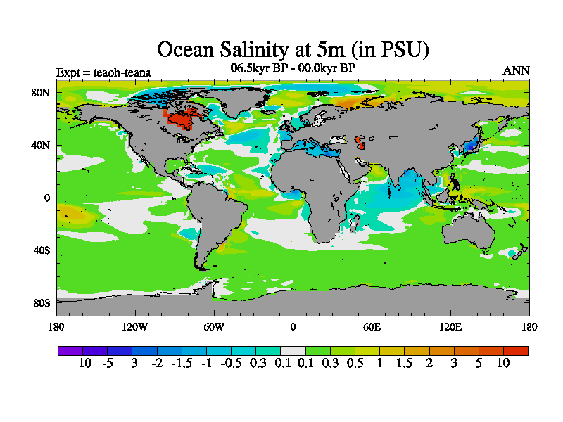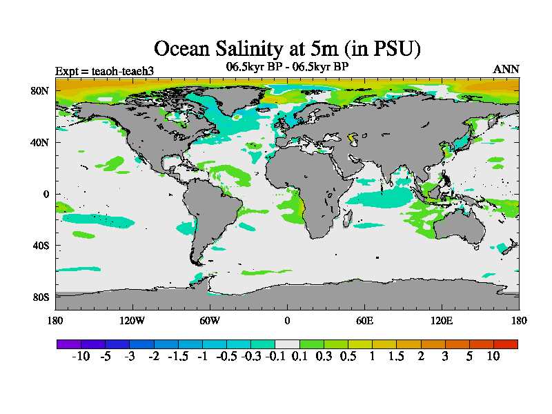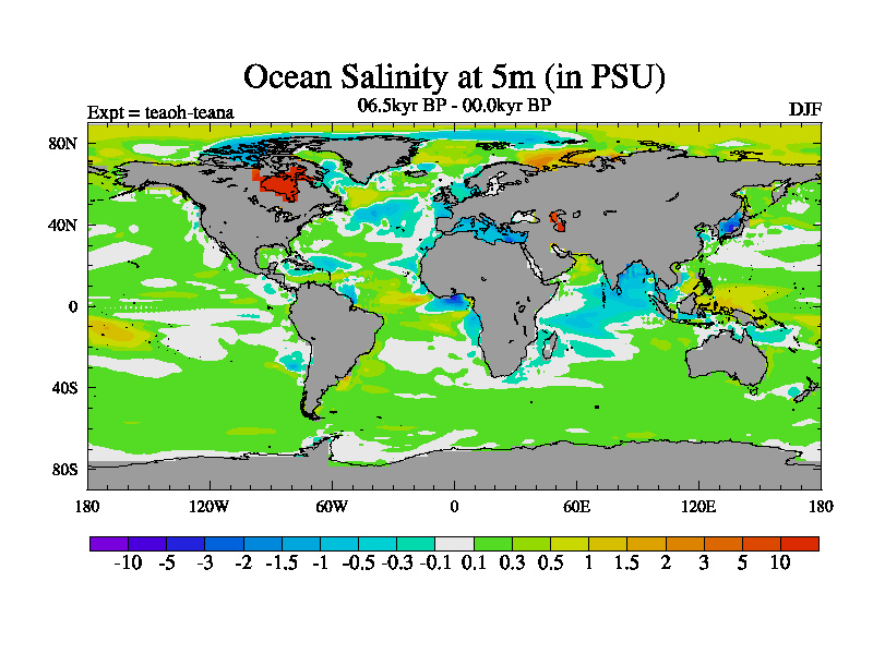 This is a continuation of teaeh except that (a) the mass of the atmosphere has been corrected to the same as the control. and (b) we are not longer using the salinity conservation update but instead using a revised waterfix. This job is a standard version of HadCM3M2.1D (dynamic TRIFFID) based on tdaae. However, it has a number of small additions/changes. These include: (1) the dark_respiration update is included, (2) the orbital update as in FAMOUS, (3) salinity conservation is included, (4) age of water tracer included. One executable can be used for all time periods The boundary conditions are (a) peltier6g, used in anomaly mode, (b) GHGs from the latest estimates, (c) global salinity is 1PSU more at LGM and scaled with sealevel for other periods (d) orbital changes via FAMOUS update (default is Berger and Loutre 1991)