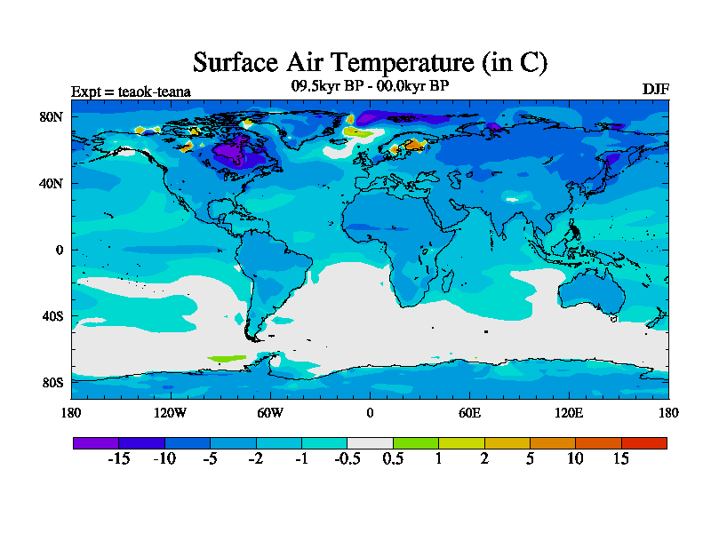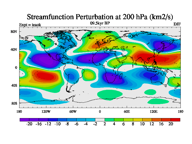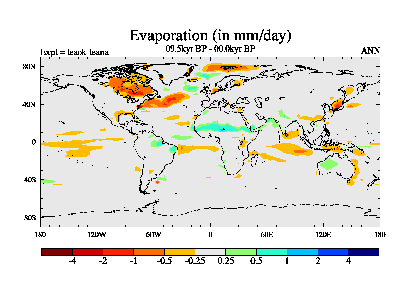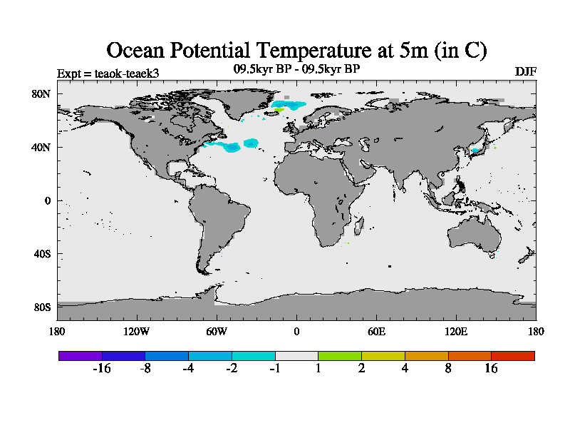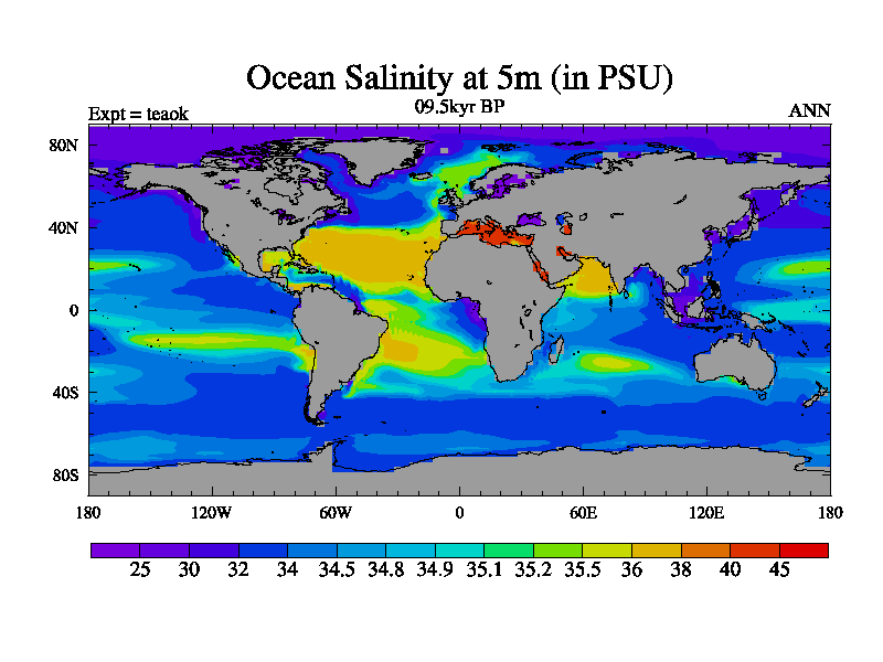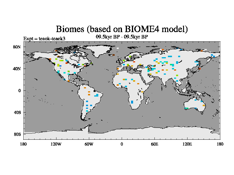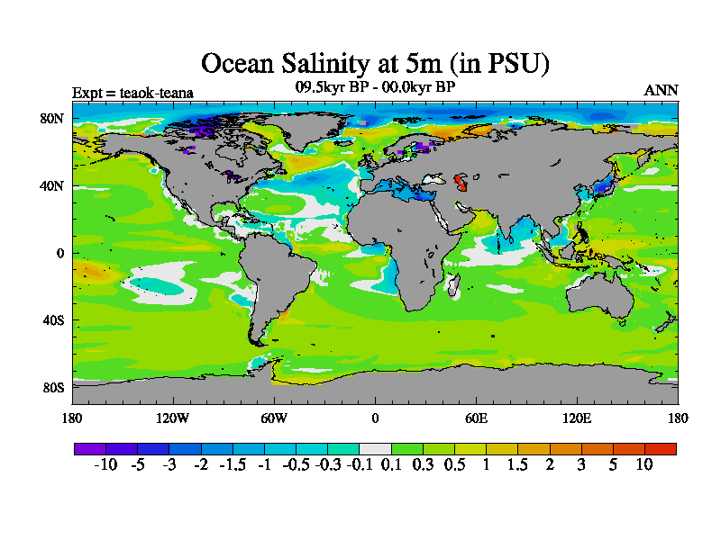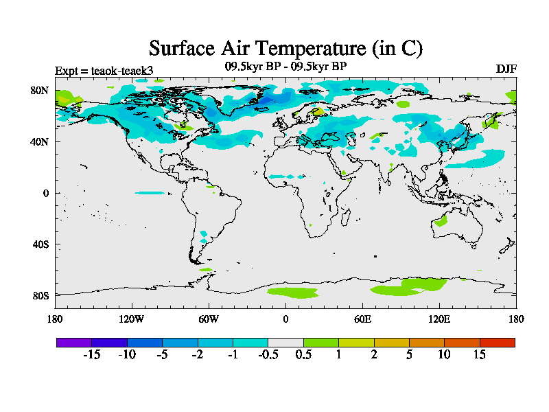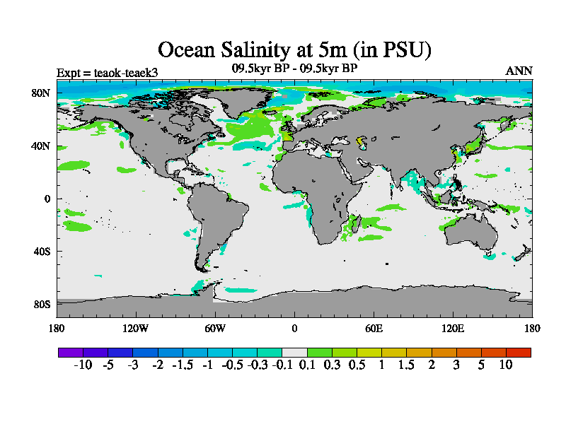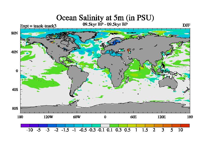 This is a continuation of teaek except that (a) the mass of the atmosphere has been corrected to the same as the control. and (b) we are not longer using the salinity conservation update but instead using a revised waterfix. This job is a standard version of HadCM3M2.1D (dynamic TRIFFID) based on tdaae. However, it has a number of small additions/changes. These include: (1) the dark_respiration update is included, (2) the orbital update as in FAMOUS, (3) salinity conservation is included, (4) age of water tracer included. One executable can be used for all time periods The boundary conditions are (a) peltier6g, used in anomaly mode, (b) GHGs from the latest estimates, (c) global salinity is 1PSU more at LGM and scaled with sealevel for other periods (d) orbital changes via FAMOUS update (default is Berger and Loutre 1991)