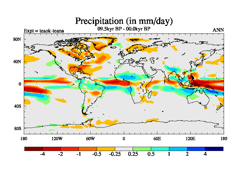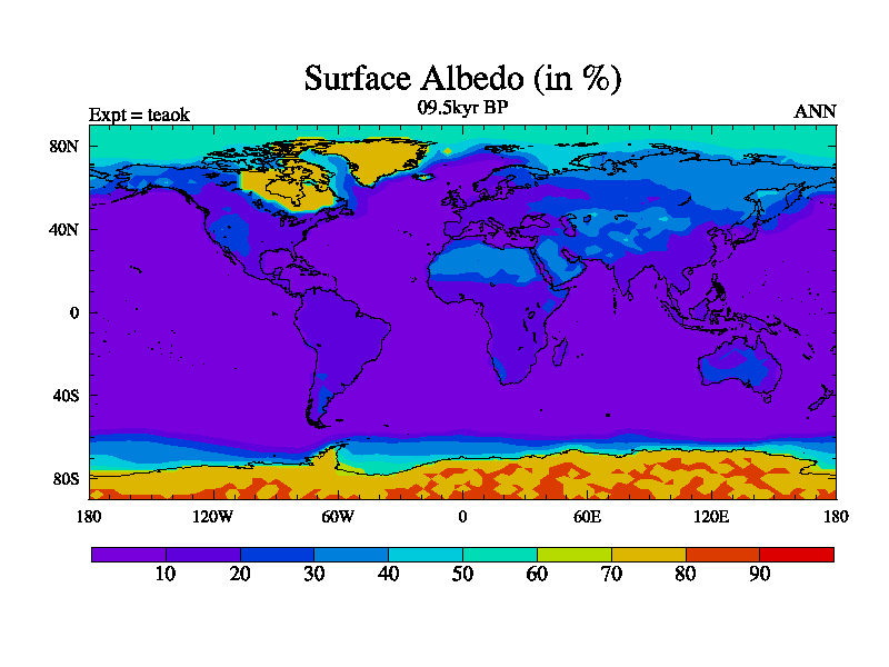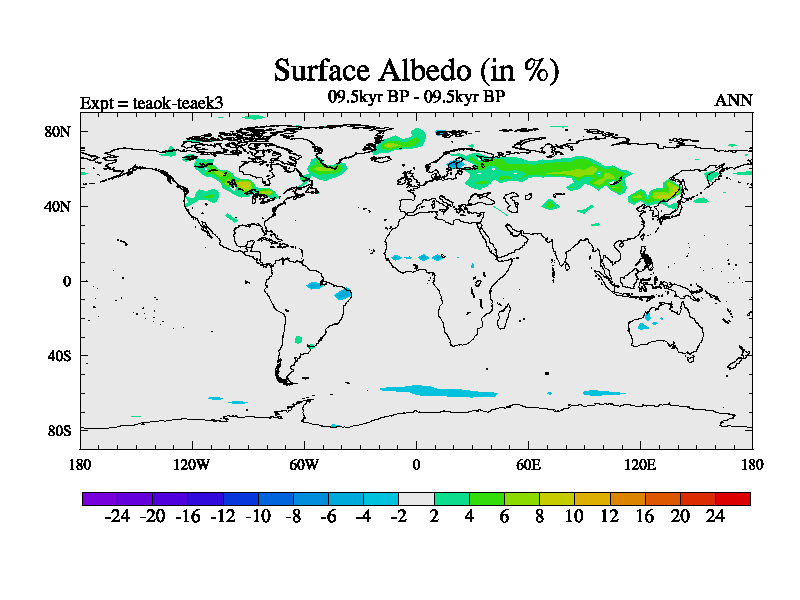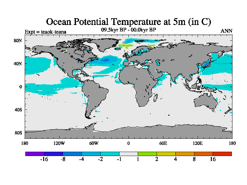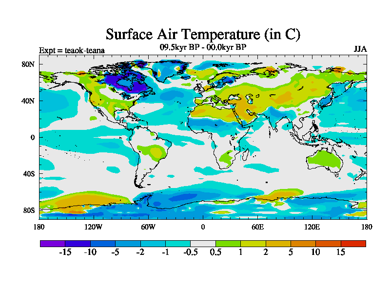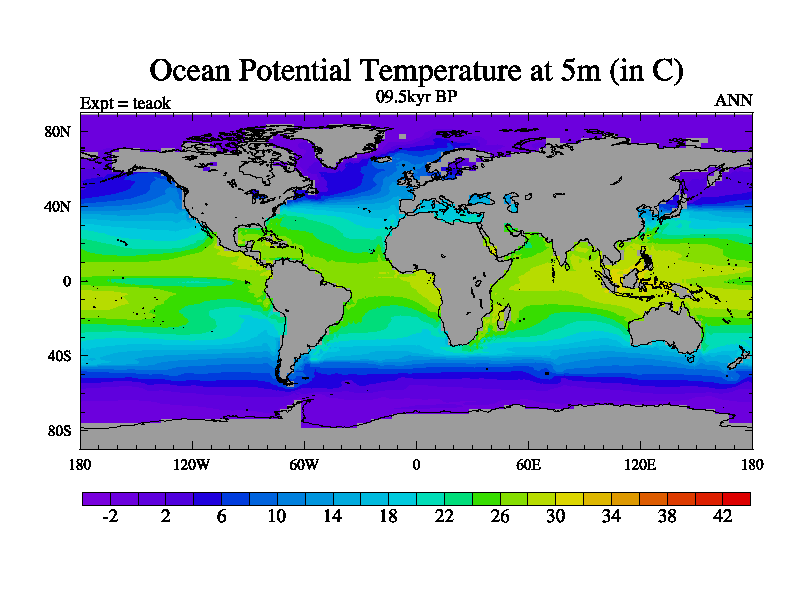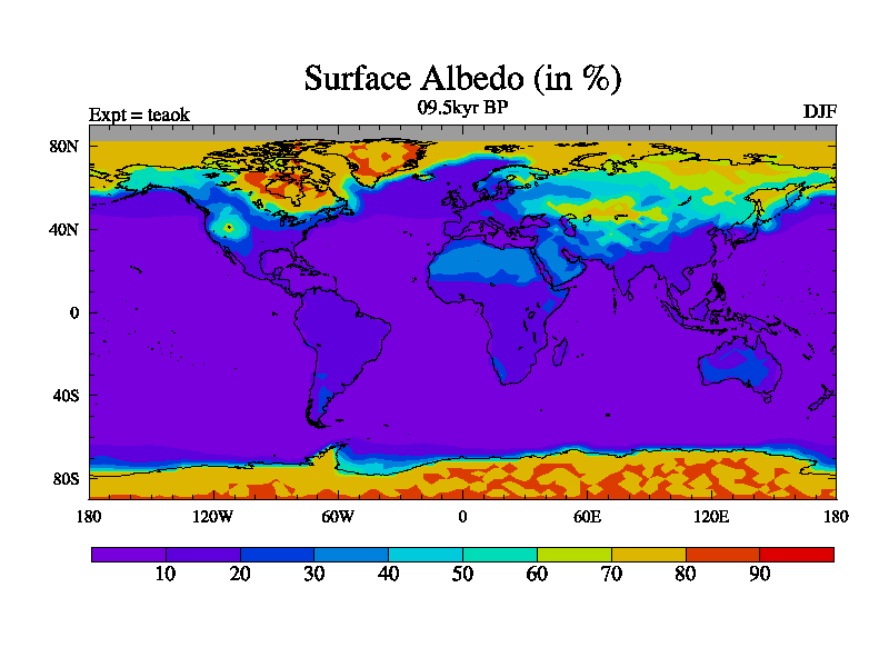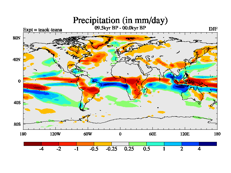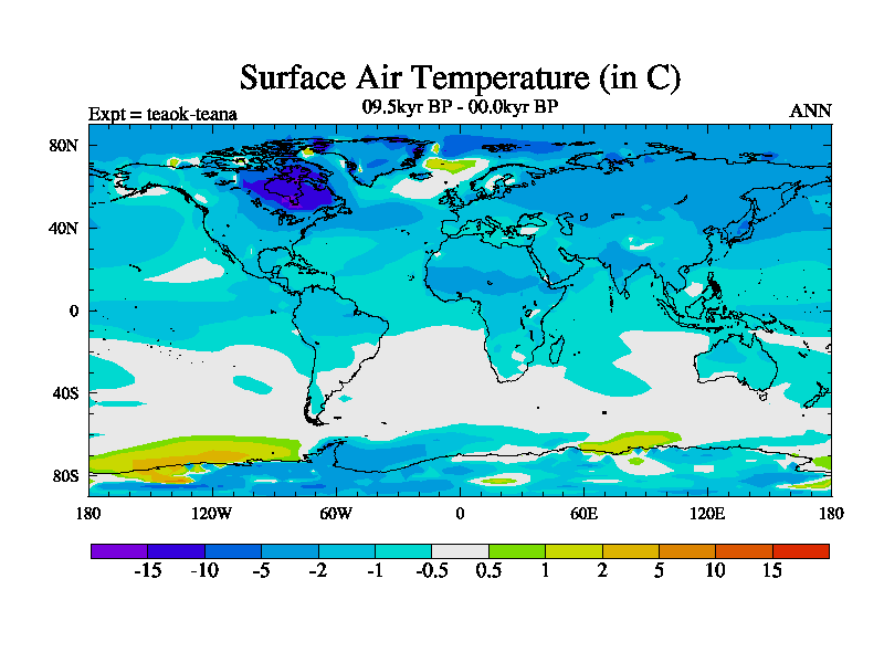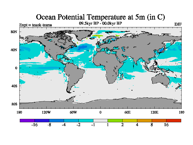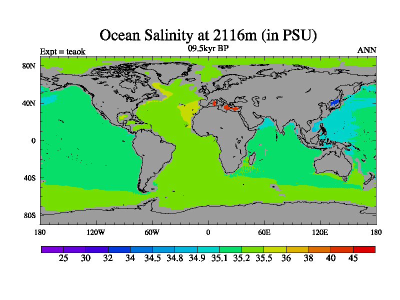 This is a continuation of teaek except that (a) the mass of the atmosphere has been corrected to the same as the control. and (b) we are not longer using the salinity conservation update but instead using a revised waterfix. This job is a standard version of HadCM3M2.1D (dynamic TRIFFID) based on tdaae. However, it has a number of small additions/changes. These include: (1) the dark_respiration update is included, (2) the orbital update as in FAMOUS, (3) salinity conservation is included, (4) age of water tracer included. One executable can be used for all time periods The boundary conditions are (a) peltier6g, used in anomaly mode, (b) GHGs from the latest estimates, (c) global salinity is 1PSU more at LGM and scaled with sealevel for other periods (d) orbital changes via FAMOUS update (default is Berger and Loutre 1991)