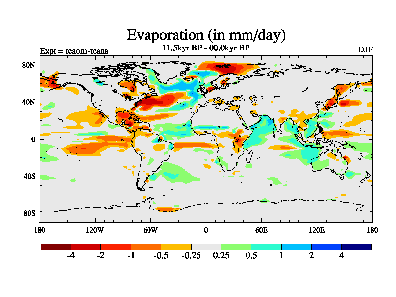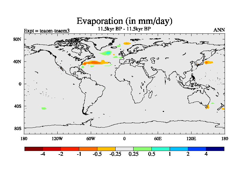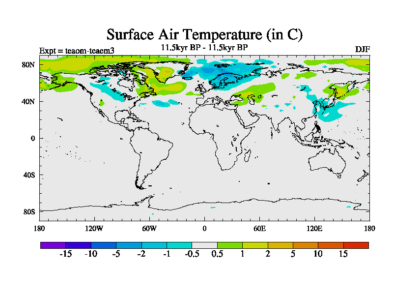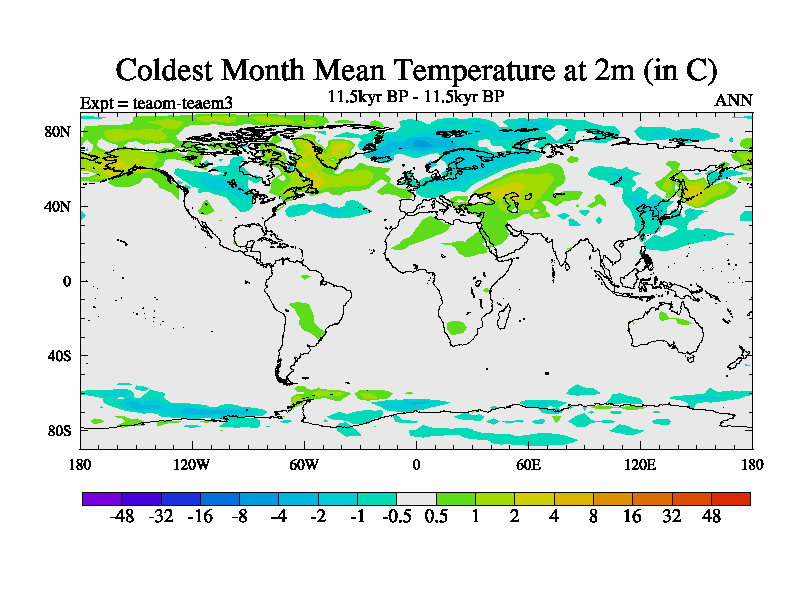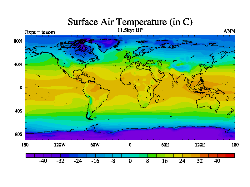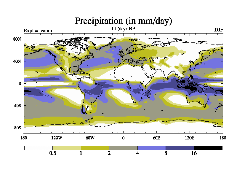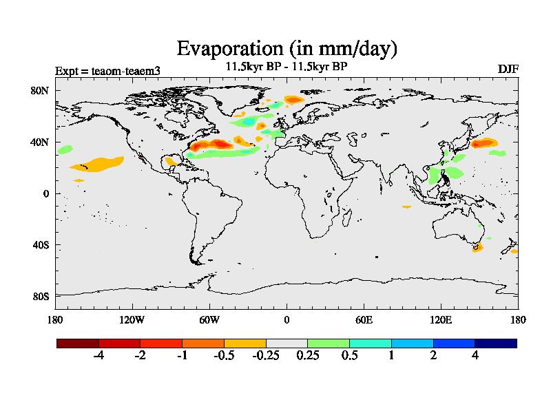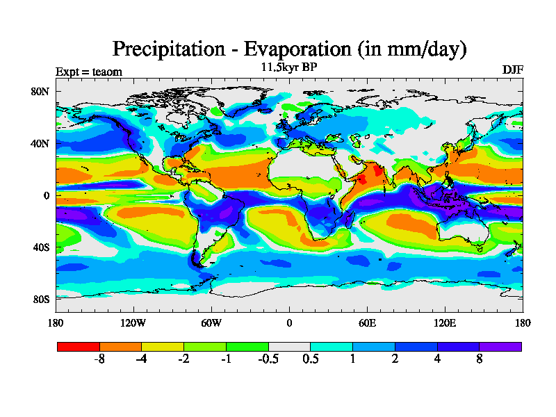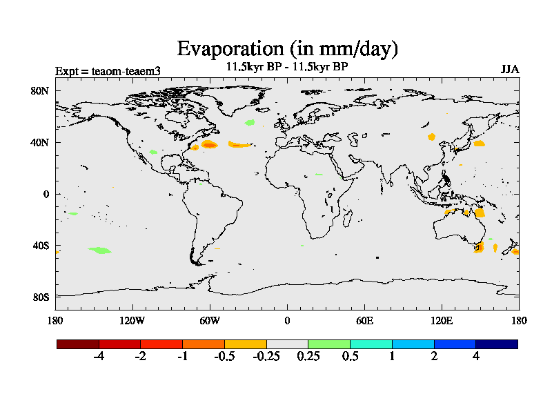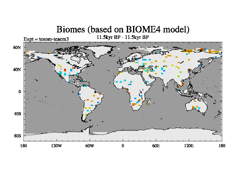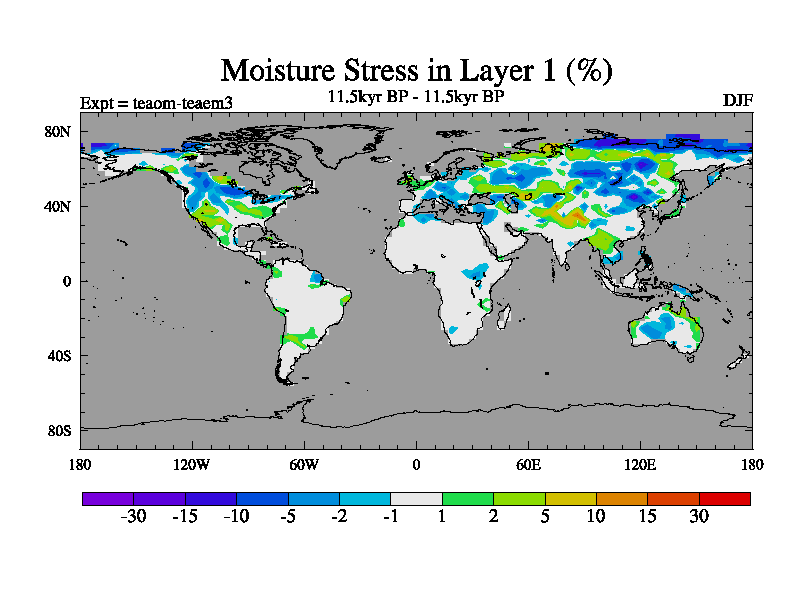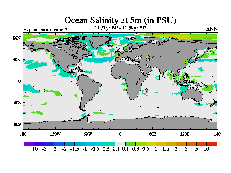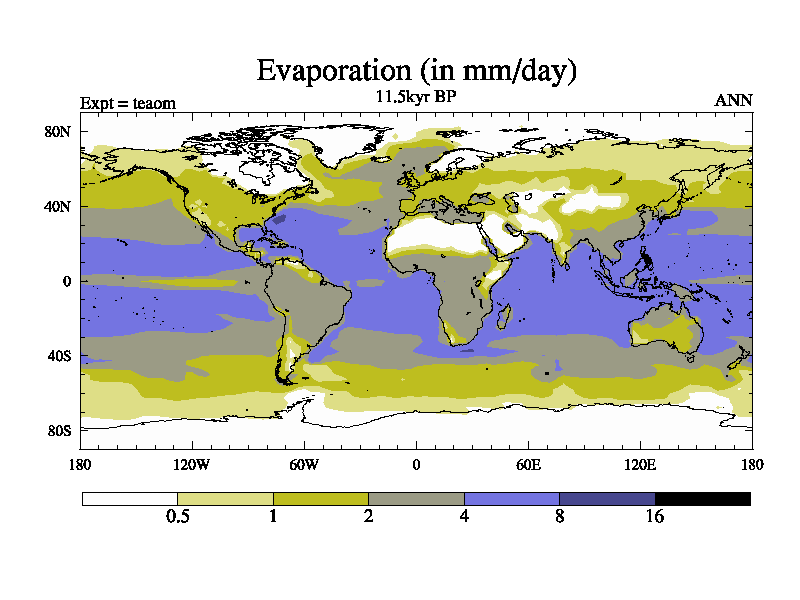 This is a continuation of teaem except that (a) the mass of the atmosphere has been corrected to the same as the control. and (b) we are not longer using the salinity conservation update but instead using a revised waterfix. This job is a standard version of HadCM3M2.1D (dynamic TRIFFID) based on tdaae. However, it has a number of small additions/changes. These include: (1) the dark_respiration update is included, (2) the orbital update as in FAMOUS, (3) salinity conservation is included, (4) age of water tracer included. One executable can be used for all time periods The boundary conditions are (a) peltier6g, used in anomaly mode, (b) GHGs from the latest estimates, (c) global salinity is 1PSU more at LGM and scaled with sealevel for other periods (d) orbital changes via FAMOUS update (default is Berger and Loutre 1991)