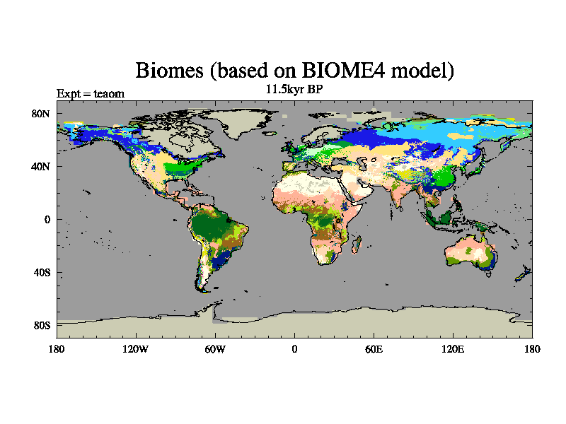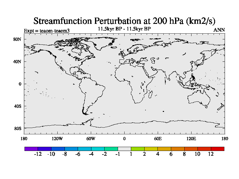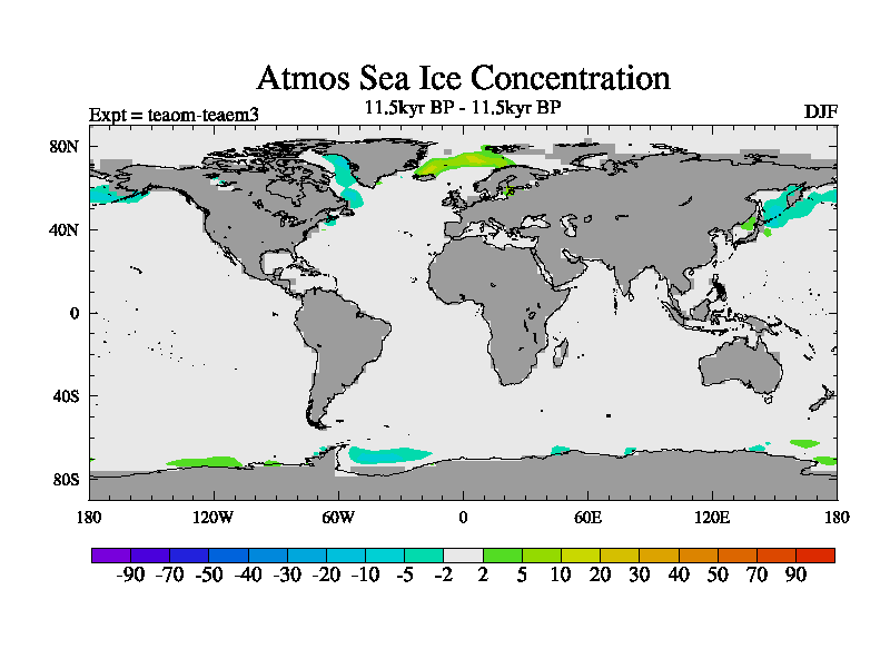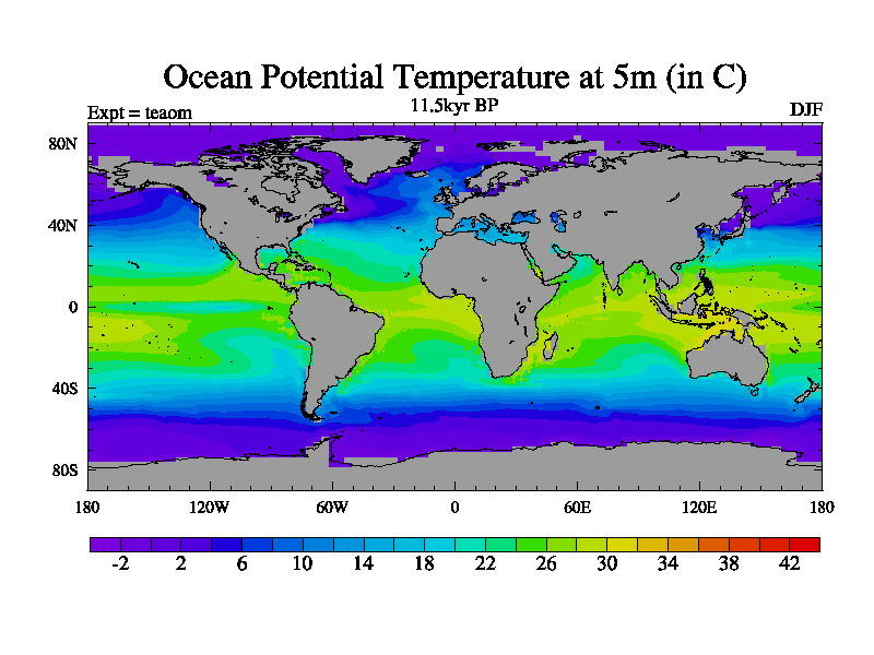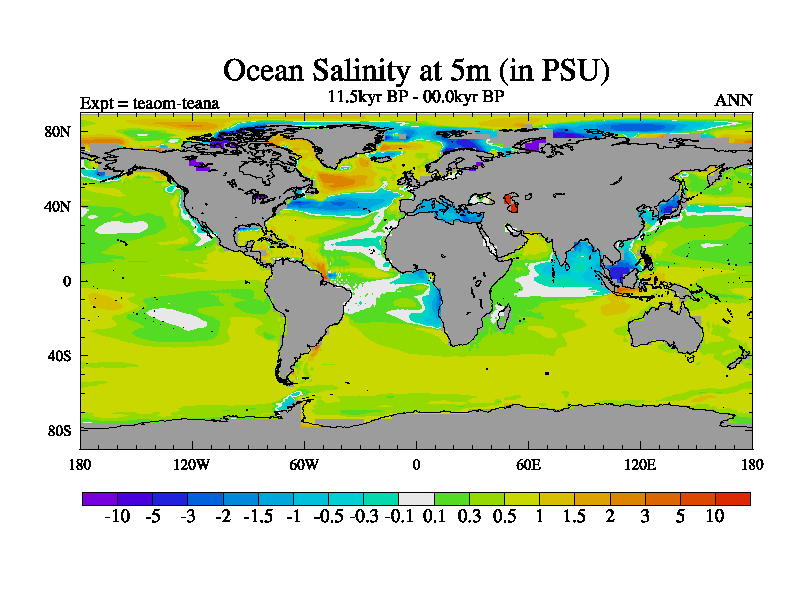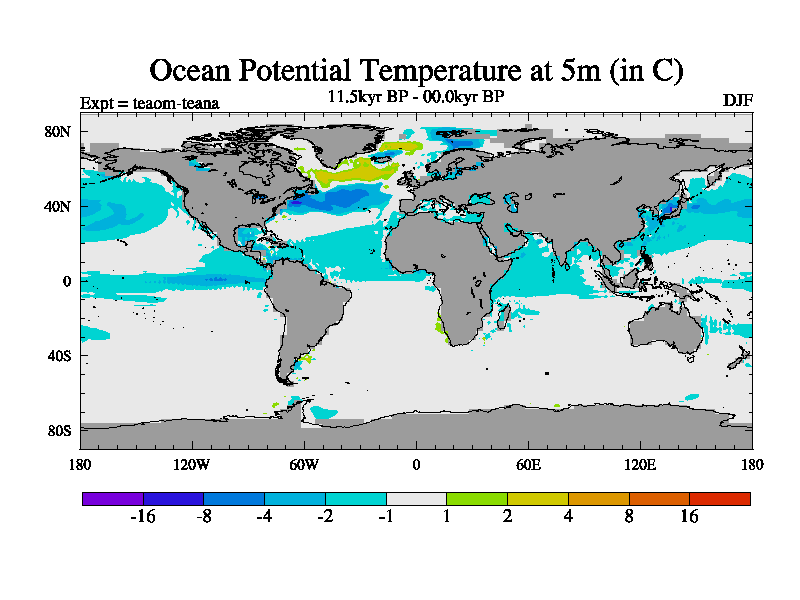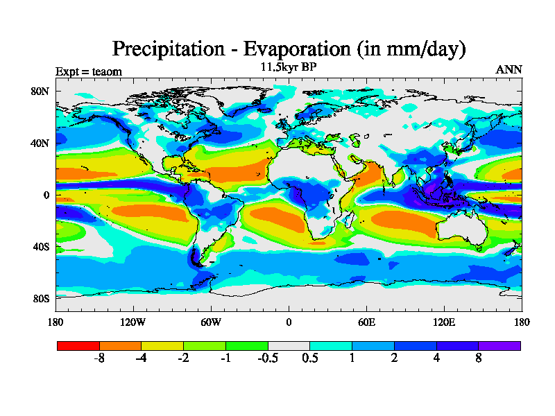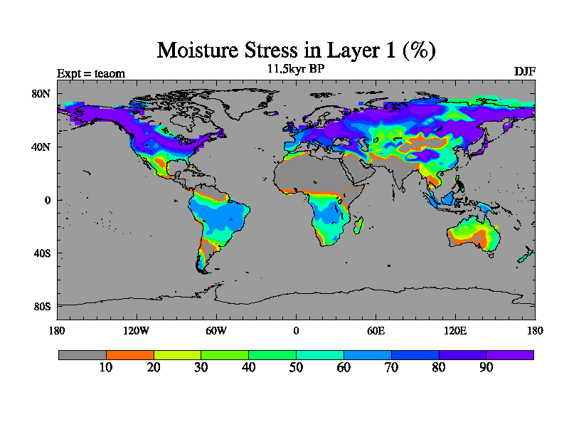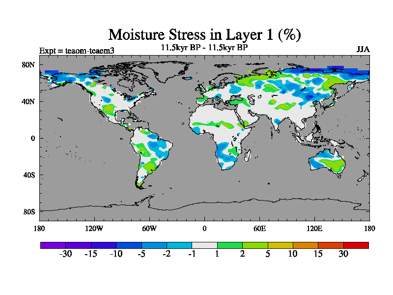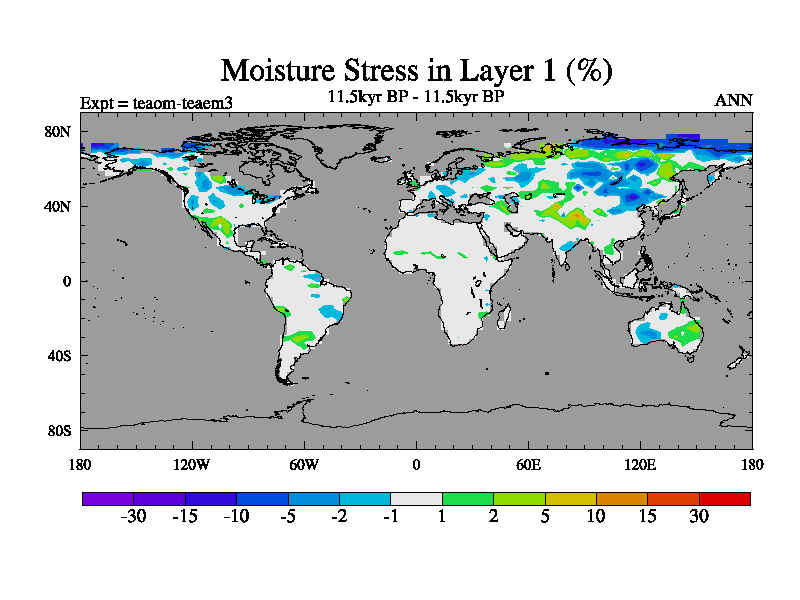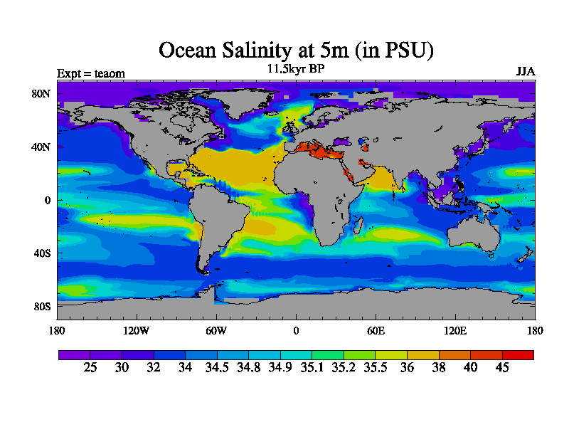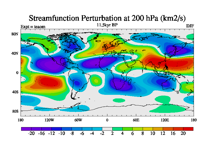 This is a continuation of teaem except that (a) the mass of the atmosphere has been corrected to the same as the control. and (b) we are not longer using the salinity conservation update but instead using a revised waterfix. This job is a standard version of HadCM3M2.1D (dynamic TRIFFID) based on tdaae. However, it has a number of small additions/changes. These include: (1) the dark_respiration update is included, (2) the orbital update as in FAMOUS, (3) salinity conservation is included, (4) age of water tracer included. One executable can be used for all time periods The boundary conditions are (a) peltier6g, used in anomaly mode, (b) GHGs from the latest estimates, (c) global salinity is 1PSU more at LGM and scaled with sealevel for other periods (d) orbital changes via FAMOUS update (default is Berger and Loutre 1991)