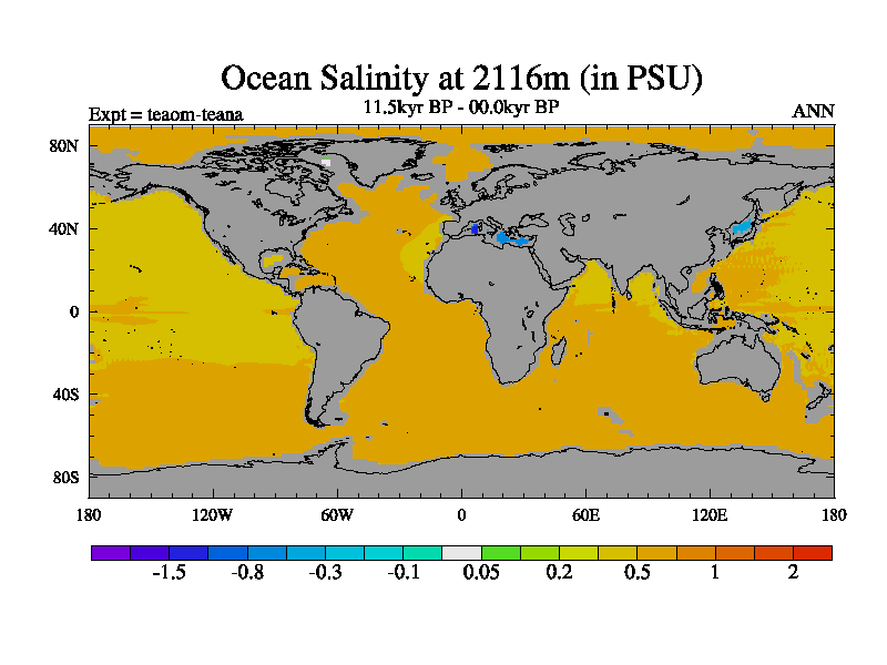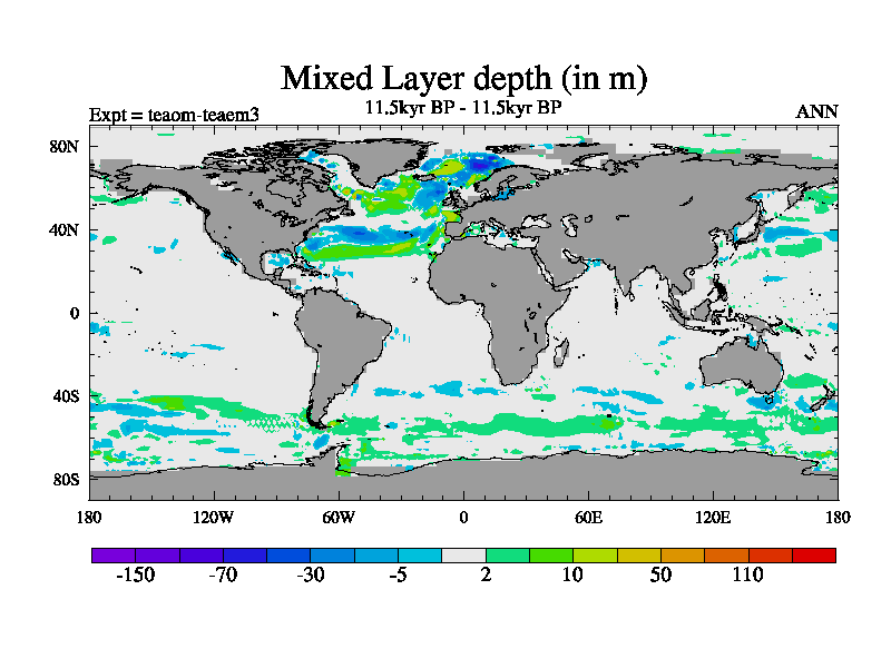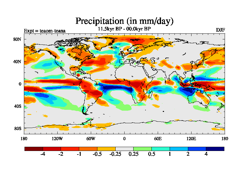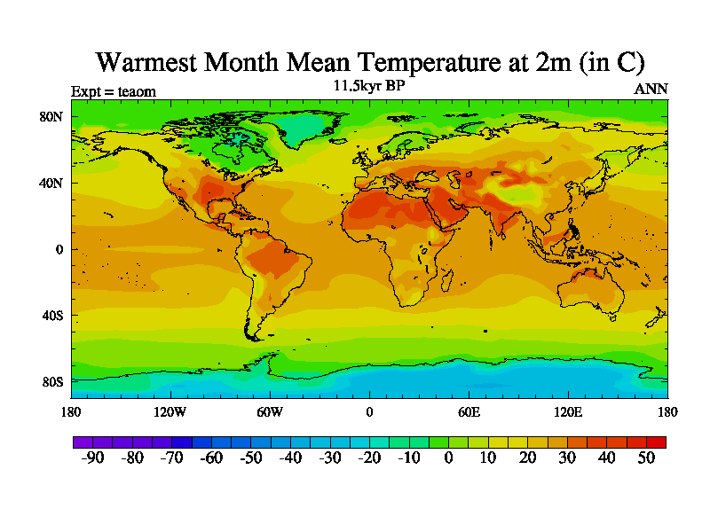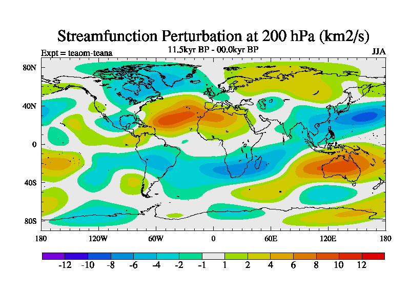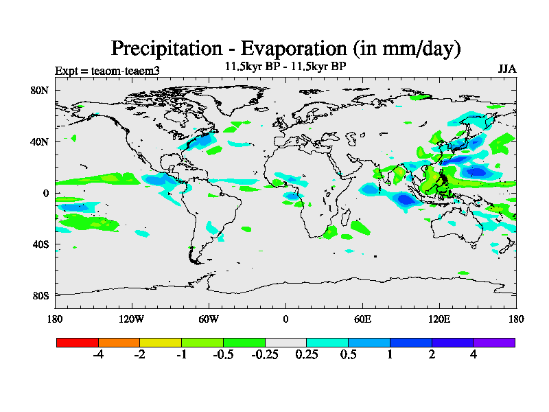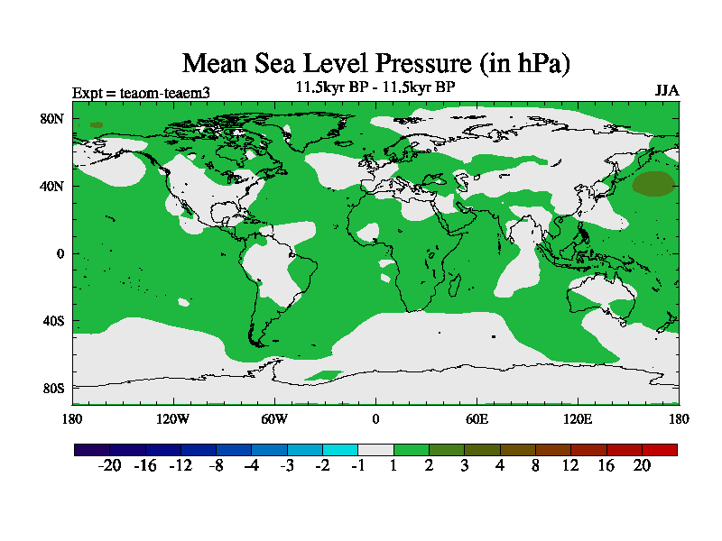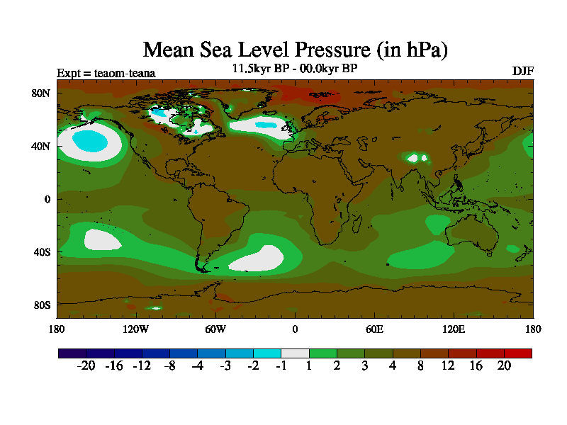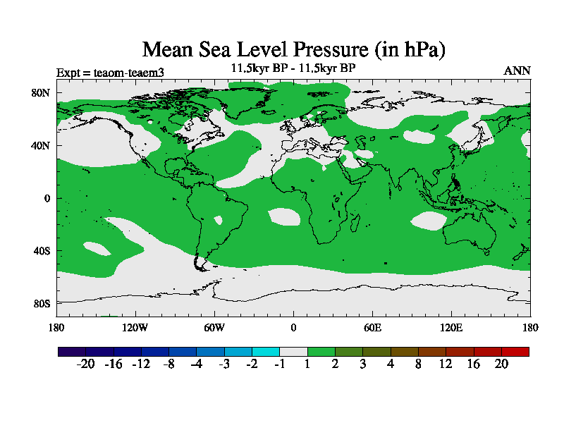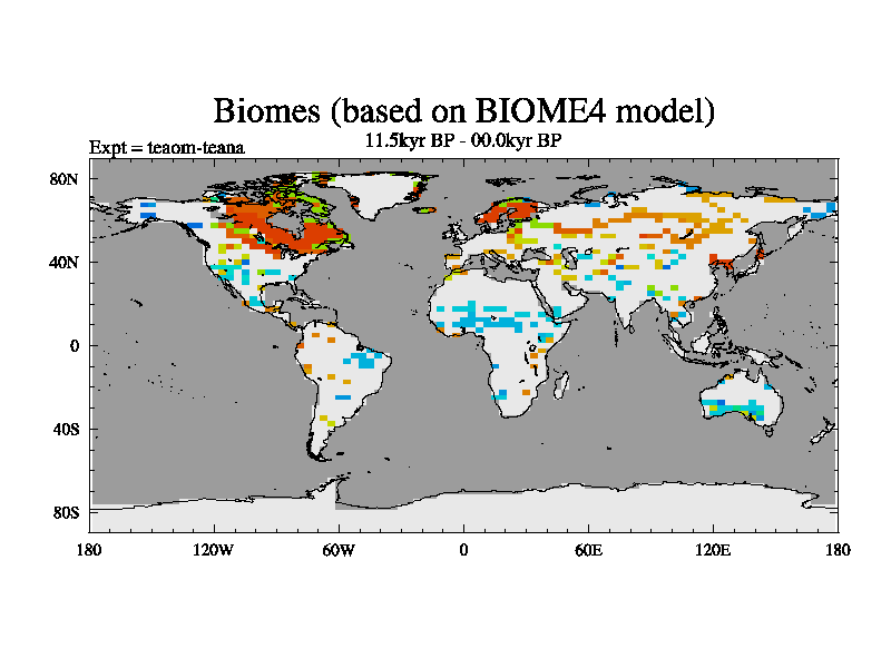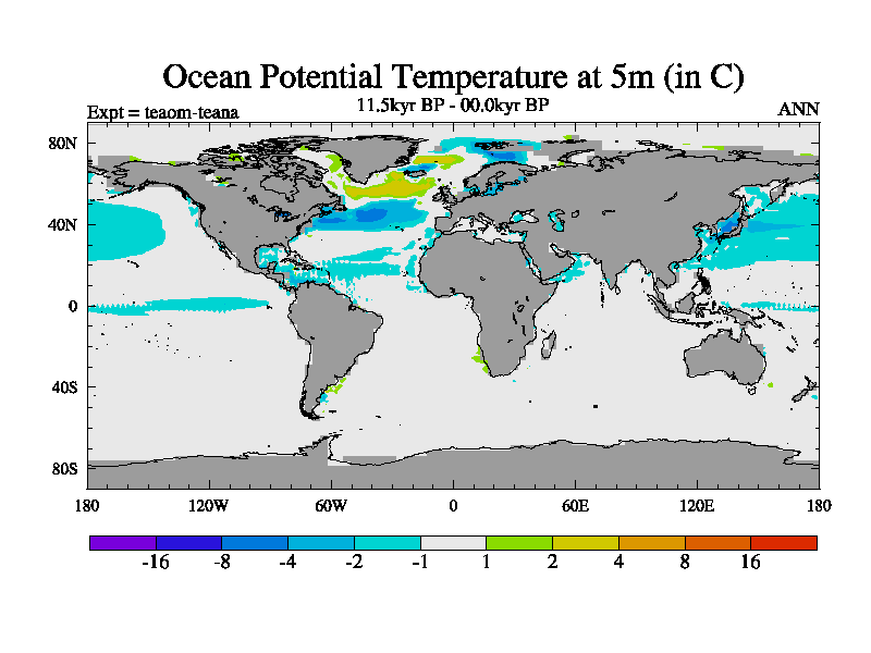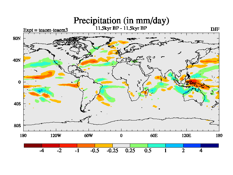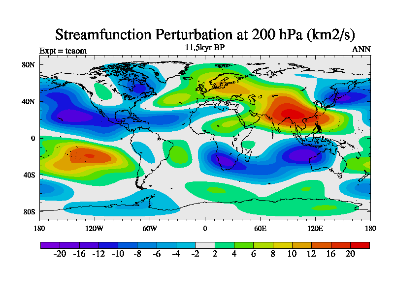 This is a continuation of teaem except that (a) the mass of the atmosphere has been corrected to the same as the control. and (b) we are not longer using the salinity conservation update but instead using a revised waterfix. This job is a standard version of HadCM3M2.1D (dynamic TRIFFID) based on tdaae. However, it has a number of small additions/changes. These include: (1) the dark_respiration update is included, (2) the orbital update as in FAMOUS, (3) salinity conservation is included, (4) age of water tracer included. One executable can be used for all time periods The boundary conditions are (a) peltier6g, used in anomaly mode, (b) GHGs from the latest estimates, (c) global salinity is 1PSU more at LGM and scaled with sealevel for other periods (d) orbital changes via FAMOUS update (default is Berger and Loutre 1991)