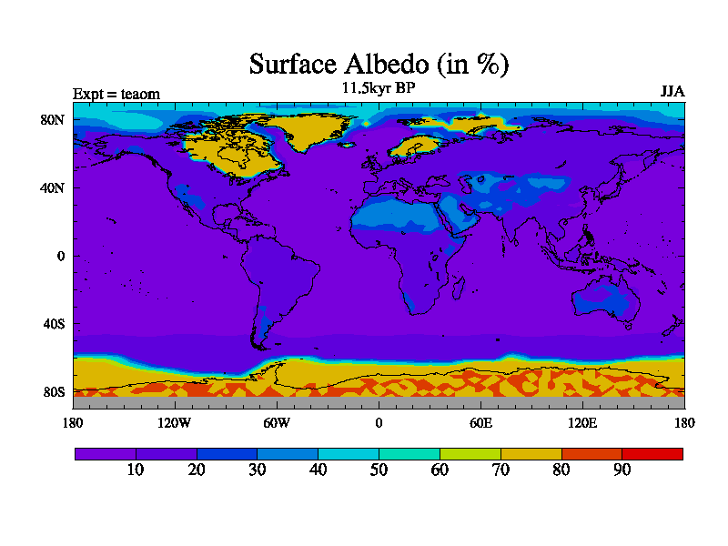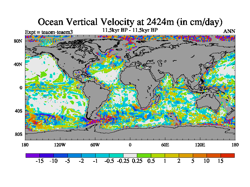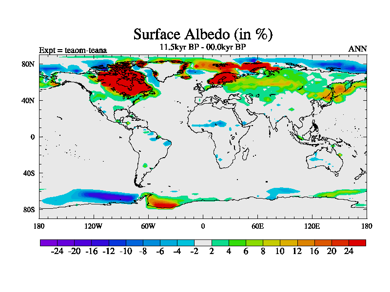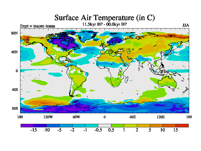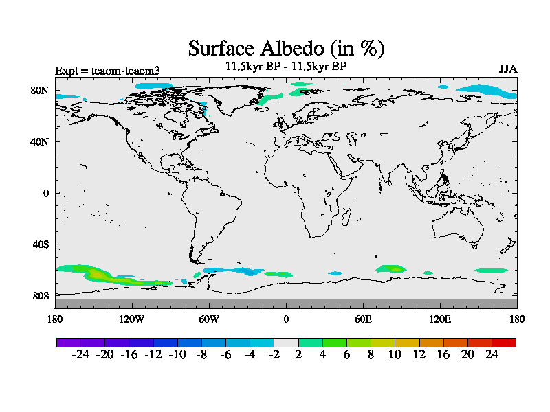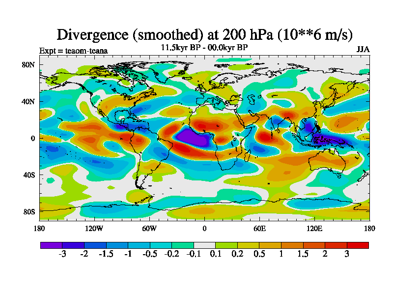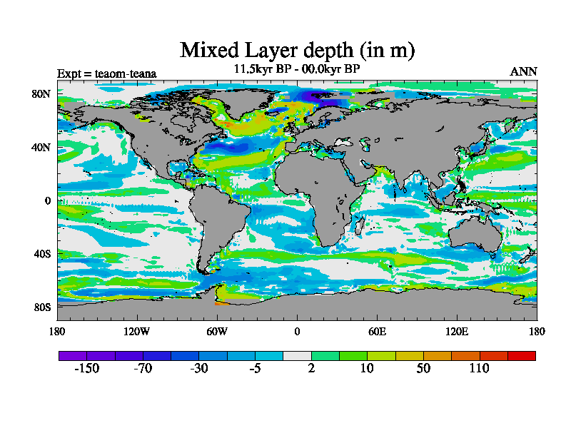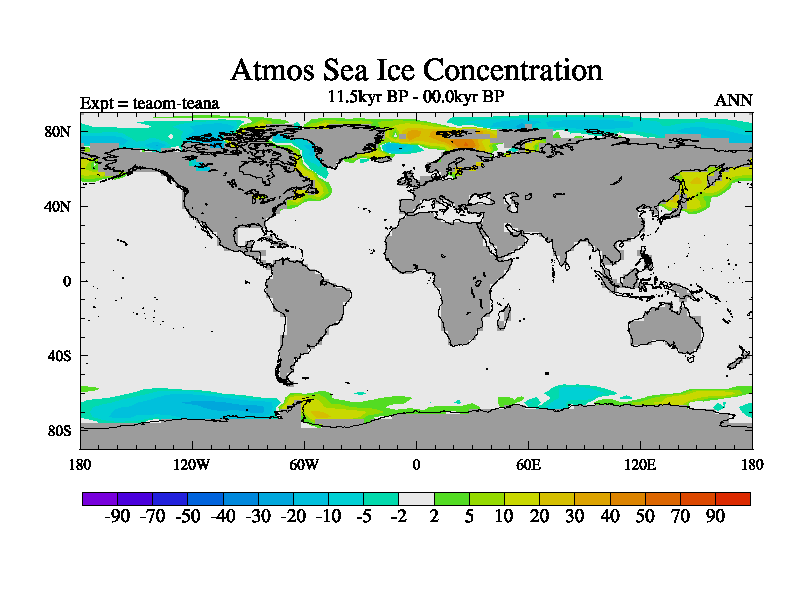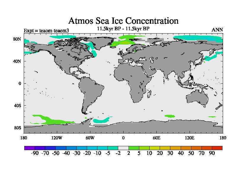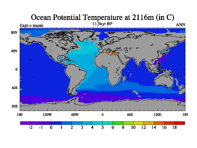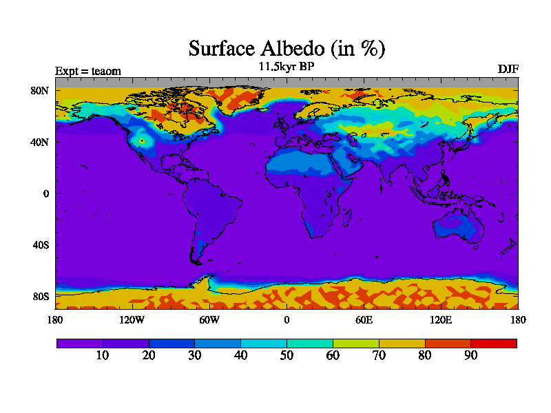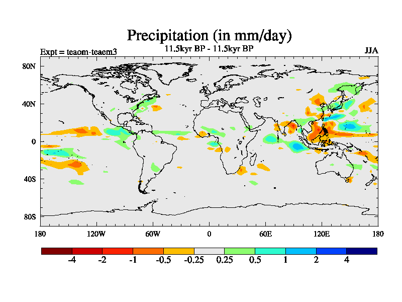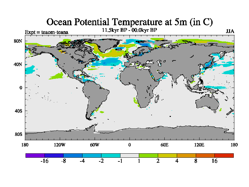 This is a continuation of teaem except that (a) the mass of the atmosphere has been corrected to the same as the control. and (b) we are not longer using the salinity conservation update but instead using a revised waterfix. This job is a standard version of HadCM3M2.1D (dynamic TRIFFID) based on tdaae. However, it has a number of small additions/changes. These include: (1) the dark_respiration update is included, (2) the orbital update as in FAMOUS, (3) salinity conservation is included, (4) age of water tracer included. One executable can be used for all time periods The boundary conditions are (a) peltier6g, used in anomaly mode, (b) GHGs from the latest estimates, (c) global salinity is 1PSU more at LGM and scaled with sealevel for other periods (d) orbital changes via FAMOUS update (default is Berger and Loutre 1991)