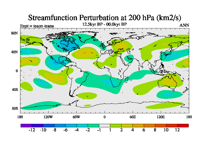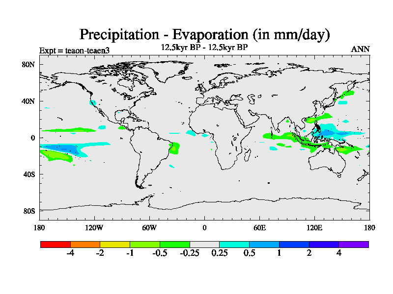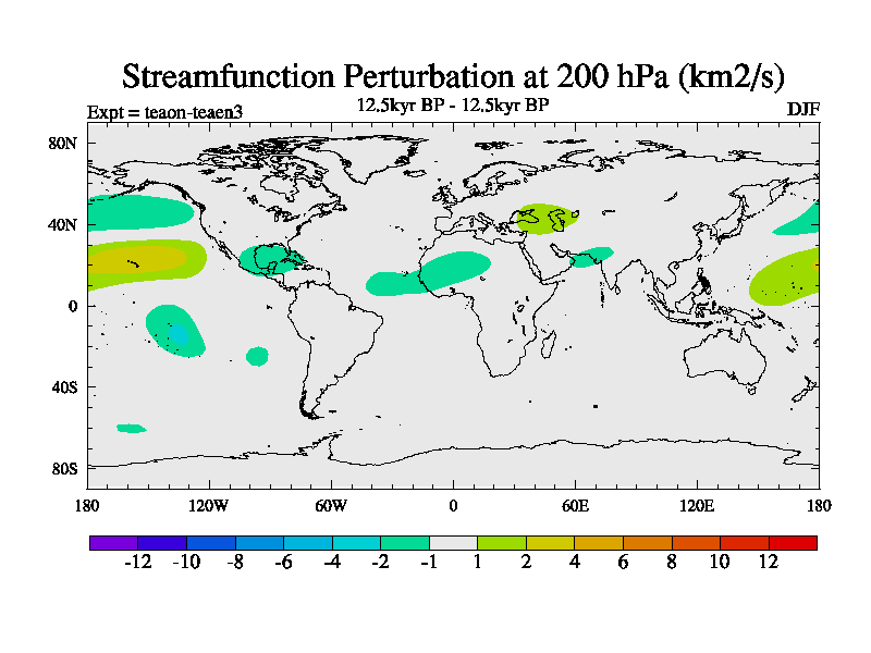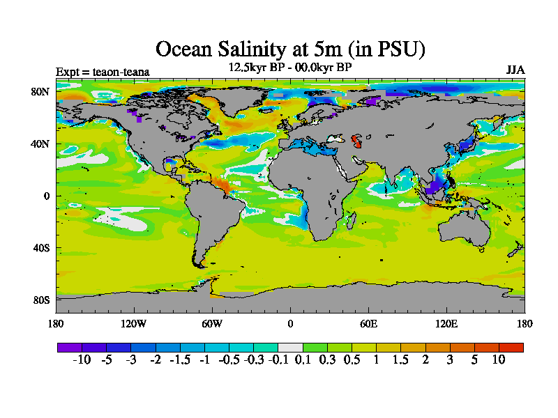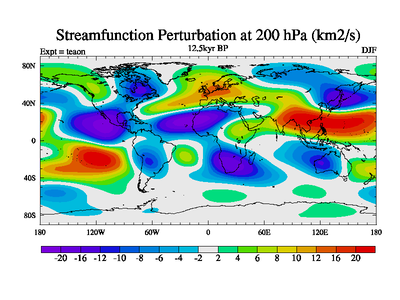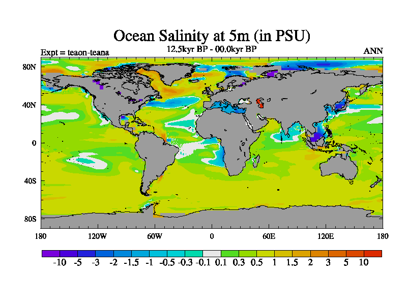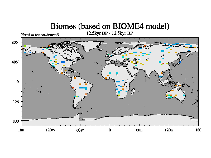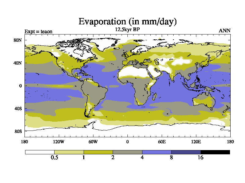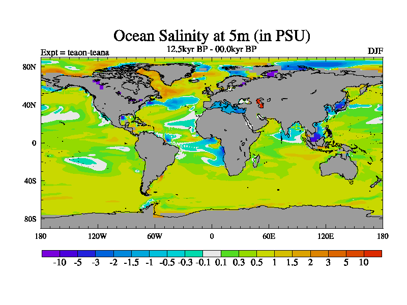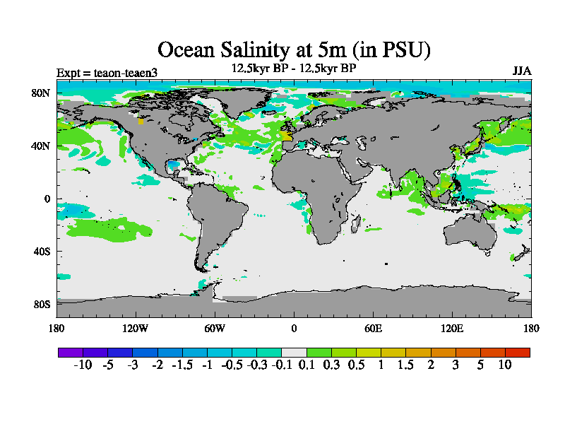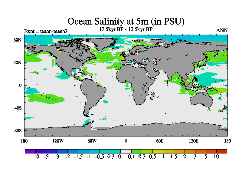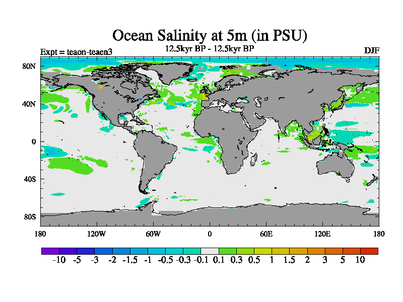 This is a continuation of teaen except that (a) the mass of the atmosphere has been corrected to the same as the control. and (b) we are not longer using the salinity conservation update but instead using a revised waterfix. This job is a standard version of HadCM3M2.1D (dynamic TRIFFID) based on tdaae. However, it has a number of small additions/changes. These include: (1) the dark_respiration update is included, (2) the orbital update as in FAMOUS, (3) salinity conservation is included, (4) age of water tracer included. One executable can be used for all time periods The boundary conditions are (a) peltier6g, used in anomaly mode, (b) GHGs from the latest estimates, (c) global salinity is 1PSU more at LGM and scaled with sealevel for other periods (d) orbital changes via FAMOUS update (default is Berger and Loutre 1991)