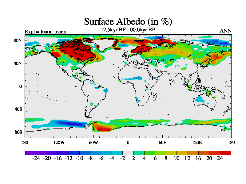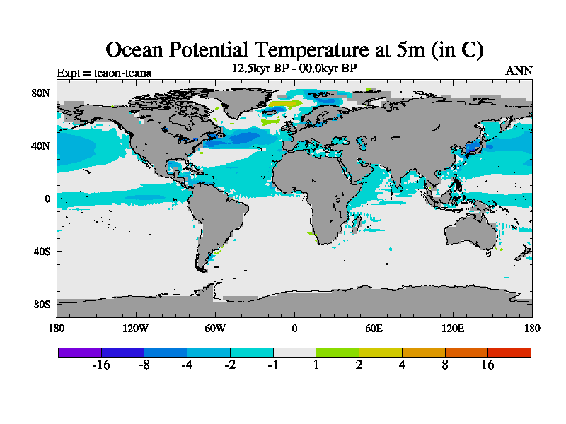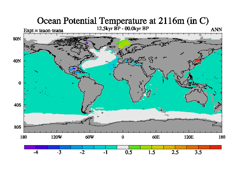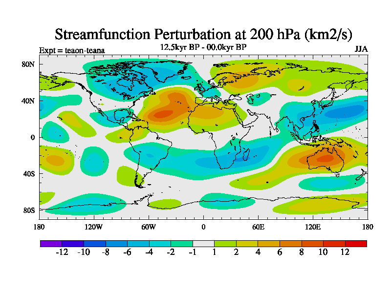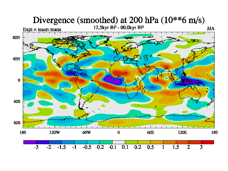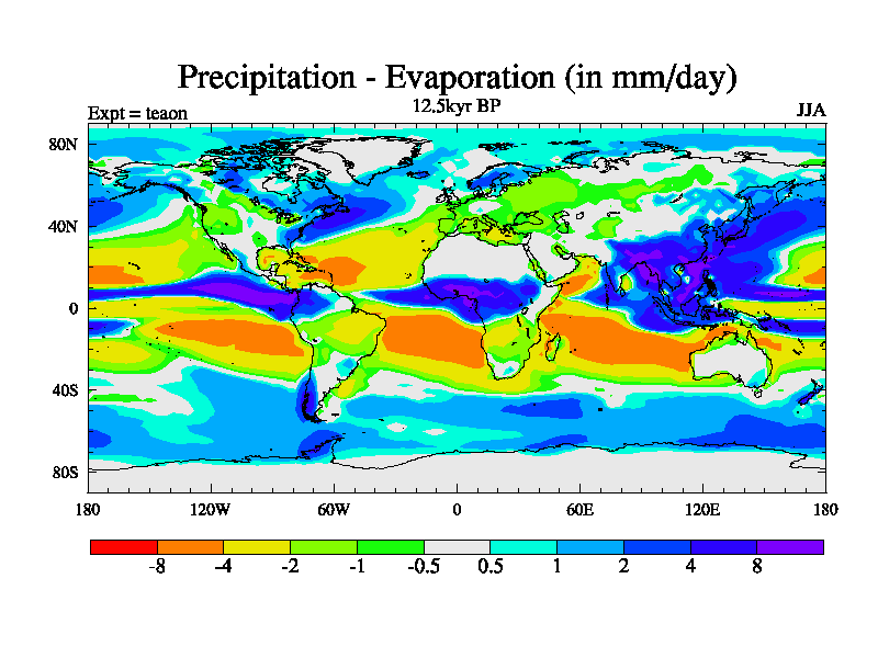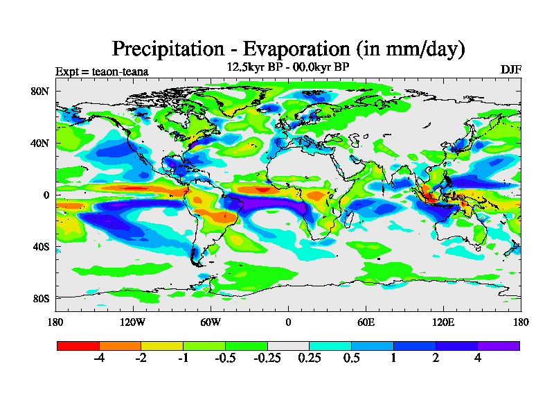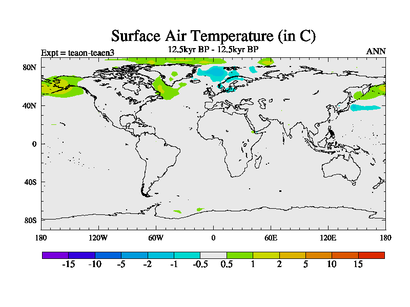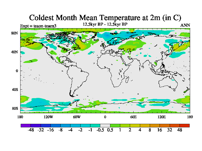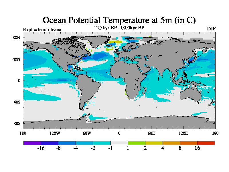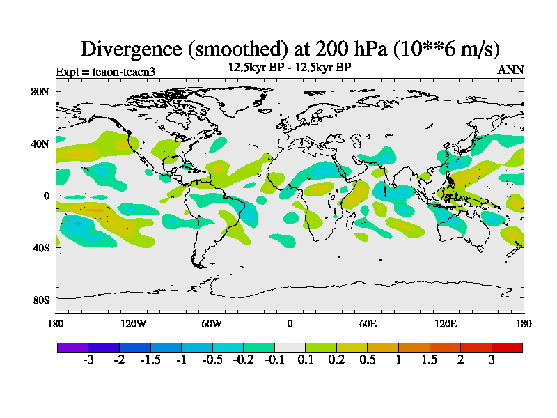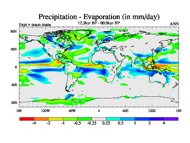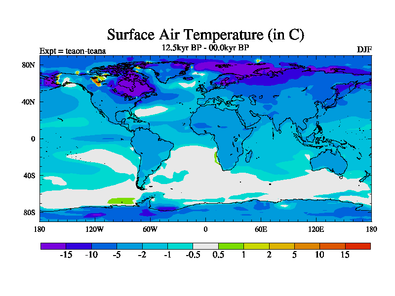 This is a continuation of teaen except that (a) the mass of the atmosphere has been corrected to the same as the control. and (b) we are not longer using the salinity conservation update but instead using a revised waterfix. This job is a standard version of HadCM3M2.1D (dynamic TRIFFID) based on tdaae. However, it has a number of small additions/changes. These include: (1) the dark_respiration update is included, (2) the orbital update as in FAMOUS, (3) salinity conservation is included, (4) age of water tracer included. One executable can be used for all time periods The boundary conditions are (a) peltier6g, used in anomaly mode, (b) GHGs from the latest estimates, (c) global salinity is 1PSU more at LGM and scaled with sealevel for other periods (d) orbital changes via FAMOUS update (default is Berger and Loutre 1991)
