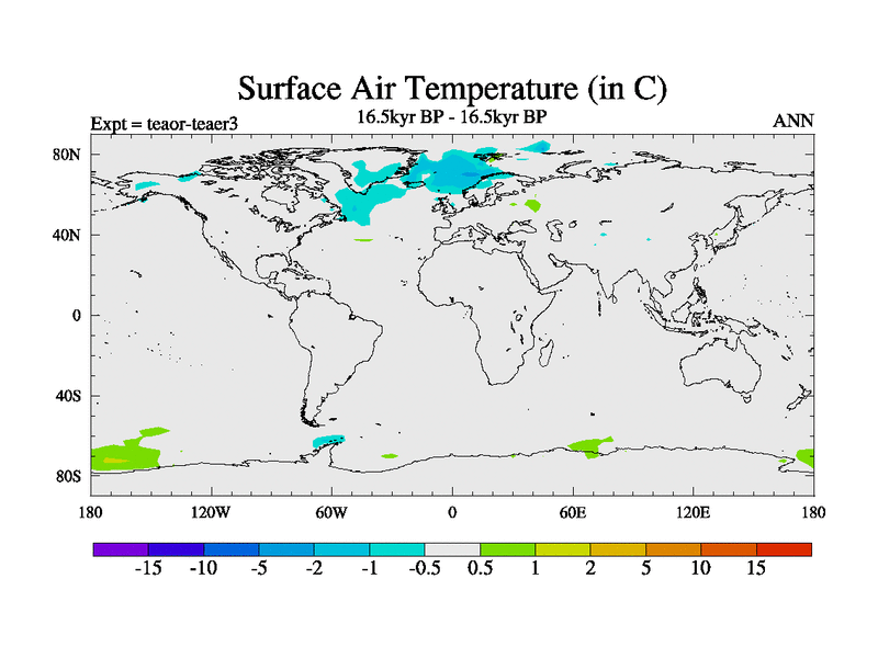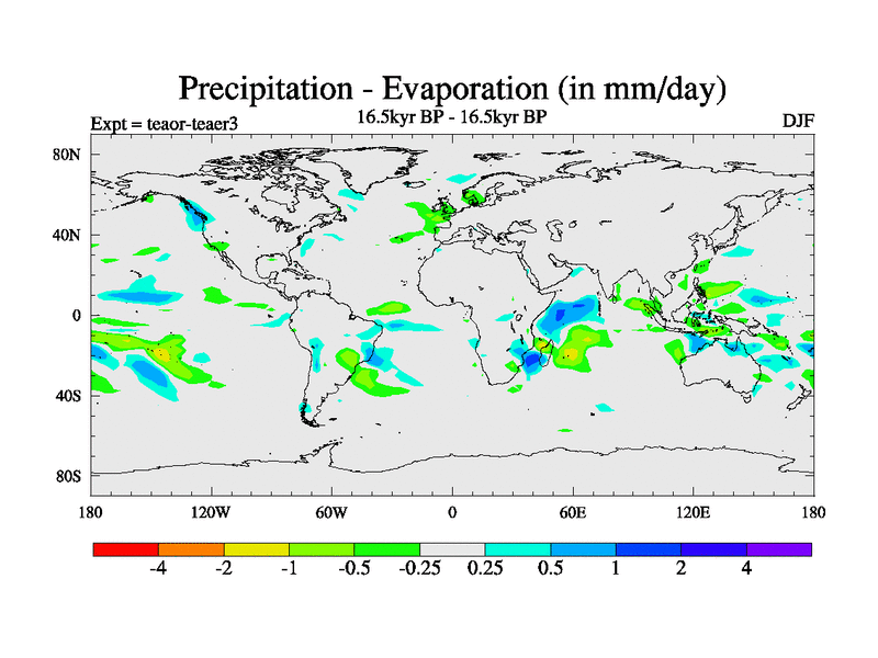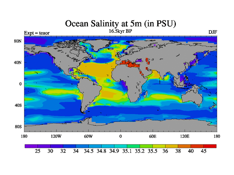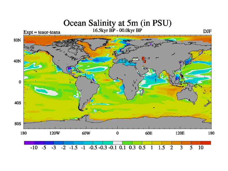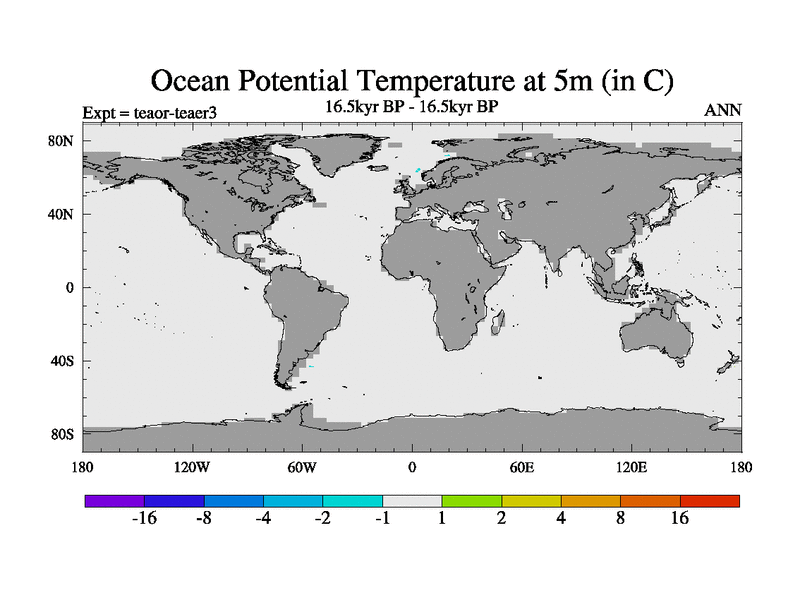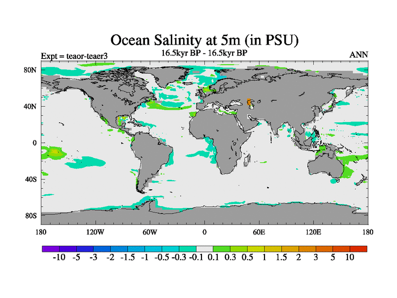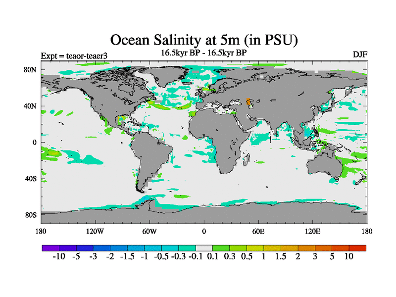 This is a continuation of teaer except that (a) the mass of the atmosphere has been corrected to the same as the control. and (b) we are not longer using the salinity conservation update but instead using a revised waterfix. This job is a standard version of HadCM3M2.1D (dynamic TRIFFID) based on tdaae. However, it has a number of small additions/changes. These include: (1) the dark_respiration update is included, (2) the orbital update as in FAMOUS, (3) salinity conservation is included, (4) age of water tracer included. One executable can be used for all time periods The boundary conditions are (a) peltier6g, used in anomaly mode, (b) GHGs from the latest estimates, (c) global salinity is 1PSU more at LGM and scaled with sealevel for other periods (d) orbital changes via FAMOUS update (default is Berger and Loutre 1991)