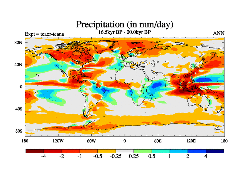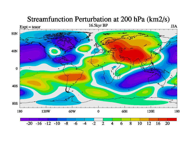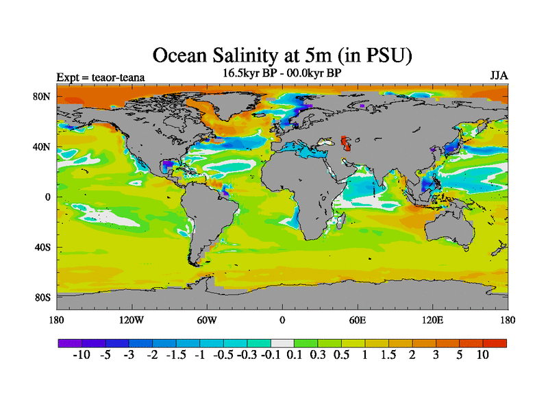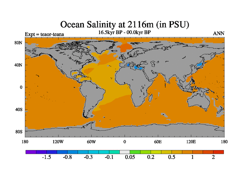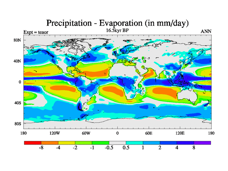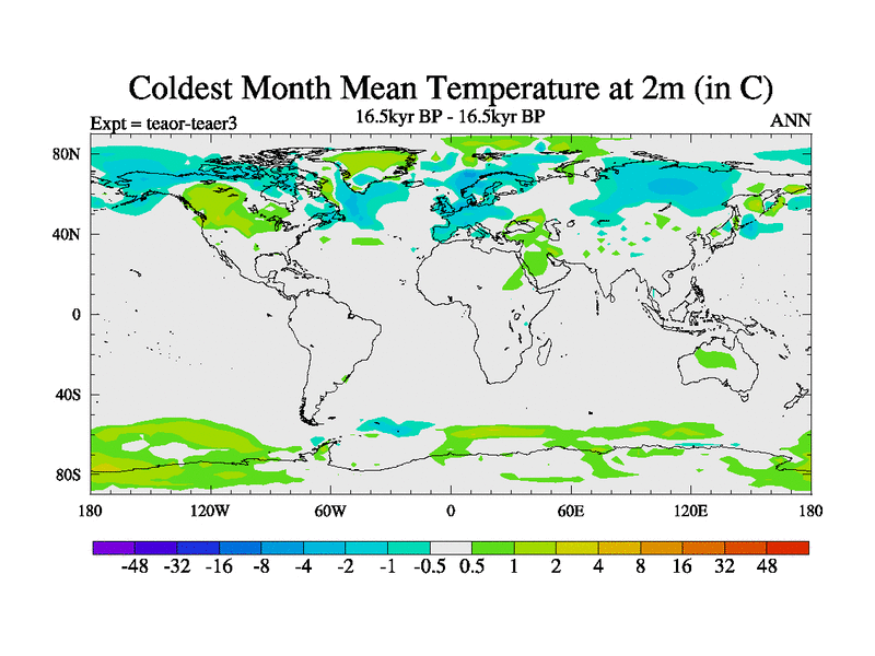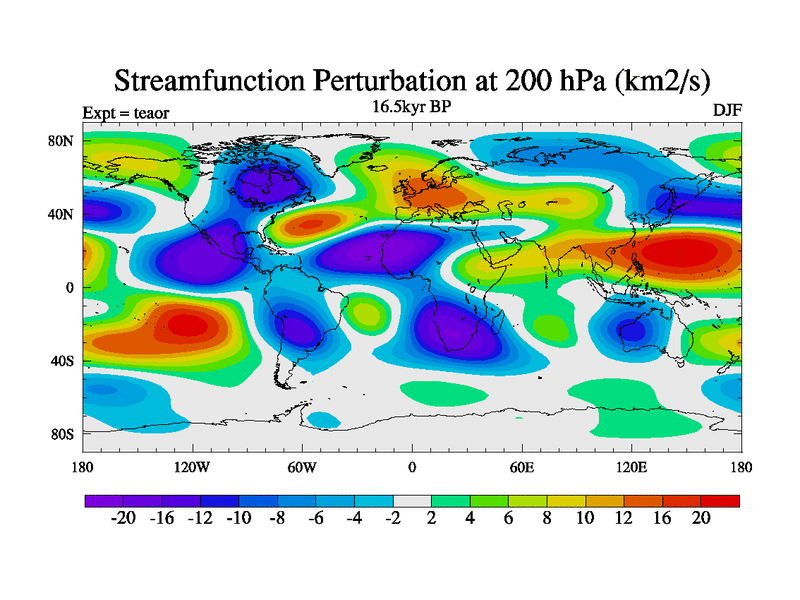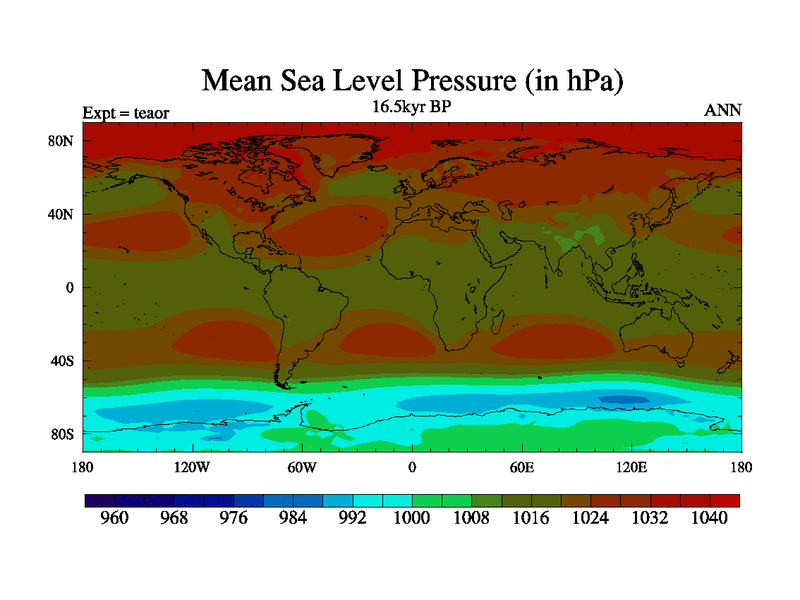 This is a continuation of teaer except that (a) the mass of the atmosphere has been corrected to the same as the control. and (b) we are not longer using the salinity conservation update but instead using a revised waterfix. This job is a standard version of HadCM3M2.1D (dynamic TRIFFID) based on tdaae. However, it has a number of small additions/changes. These include: (1) the dark_respiration update is included, (2) the orbital update as in FAMOUS, (3) salinity conservation is included, (4) age of water tracer included. One executable can be used for all time periods The boundary conditions are (a) peltier6g, used in anomaly mode, (b) GHGs from the latest estimates, (c) global salinity is 1PSU more at LGM and scaled with sealevel for other periods (d) orbital changes via FAMOUS update (default is Berger and Loutre 1991)