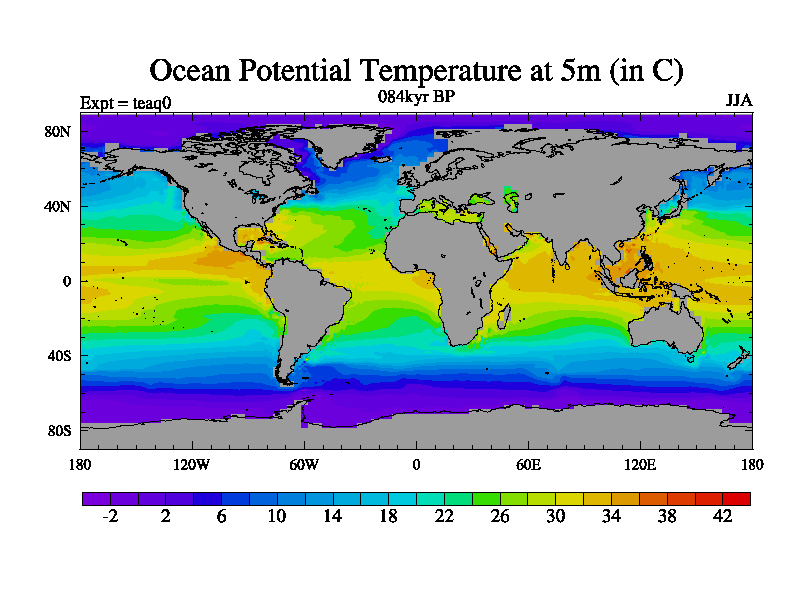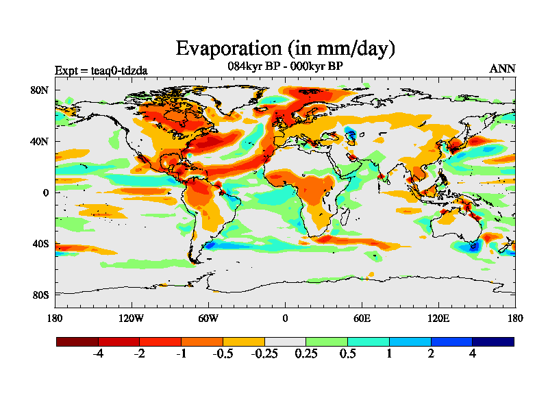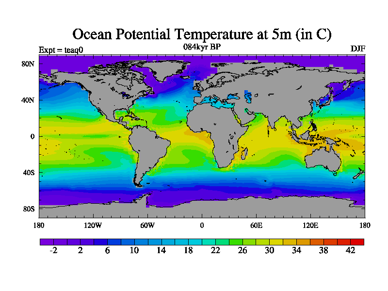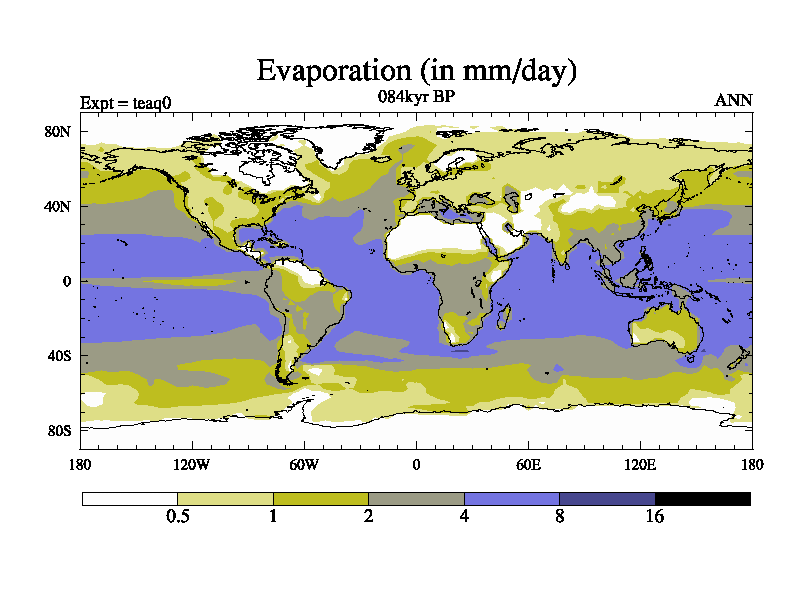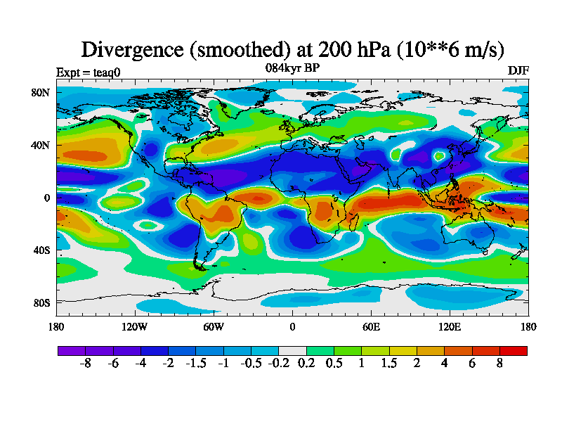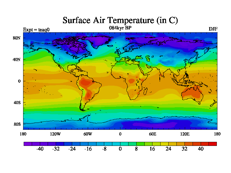 This is the 084kyr BP simulation for a new set of BBC runs using TRIFFID. Static mode, started from half way through tdxo set of simulations (new BBC static TRIFFID runs). This version includes the dark_respiration update. Vegetation is from the pre-industrial run tdwza, and CO2 is quadrupled over tdxo version.