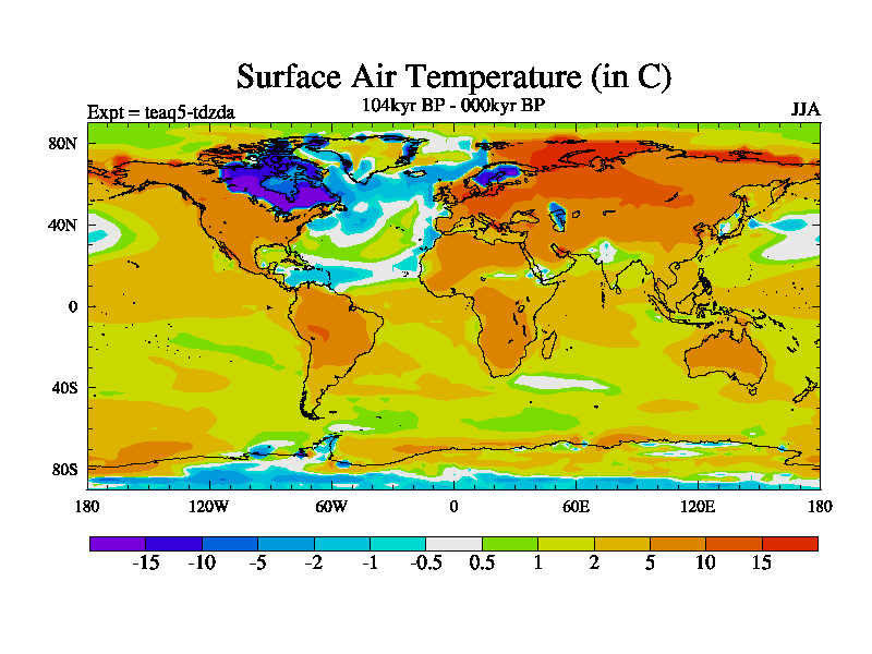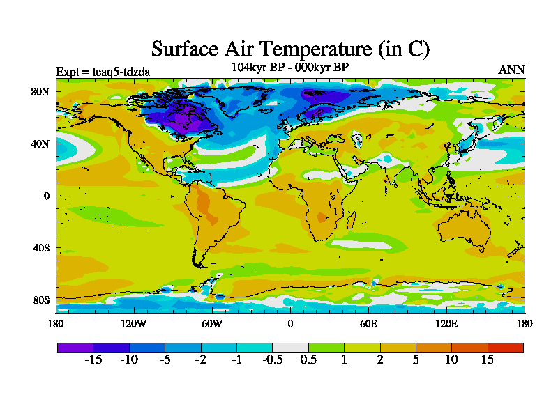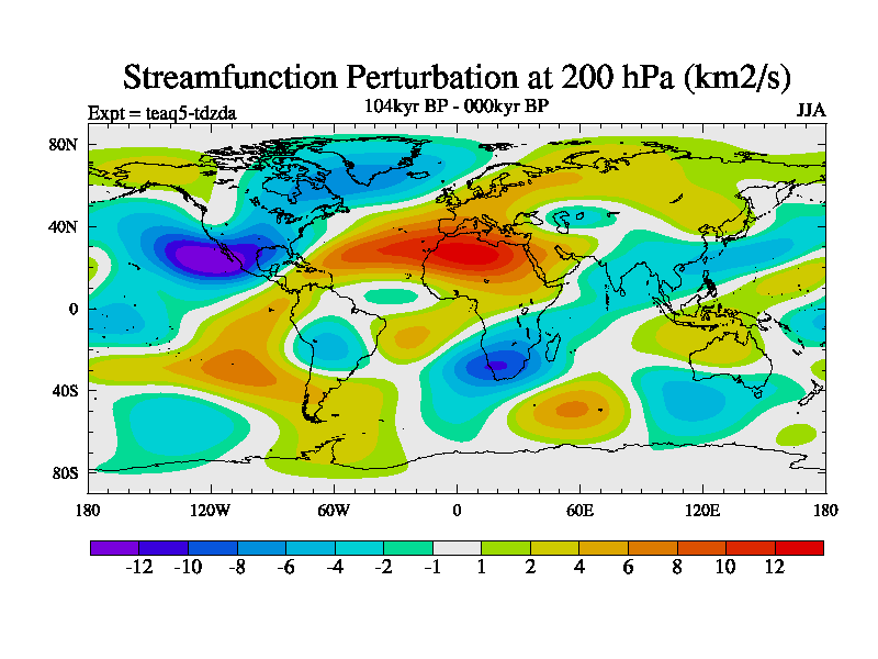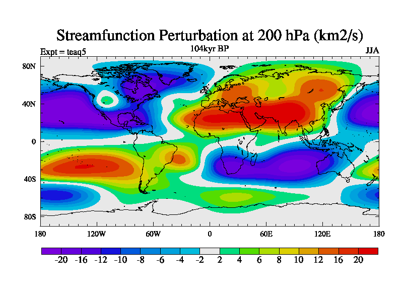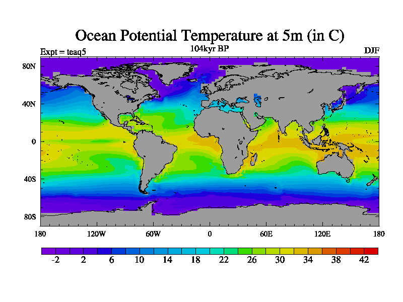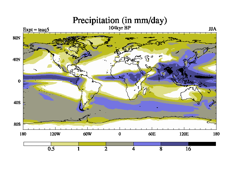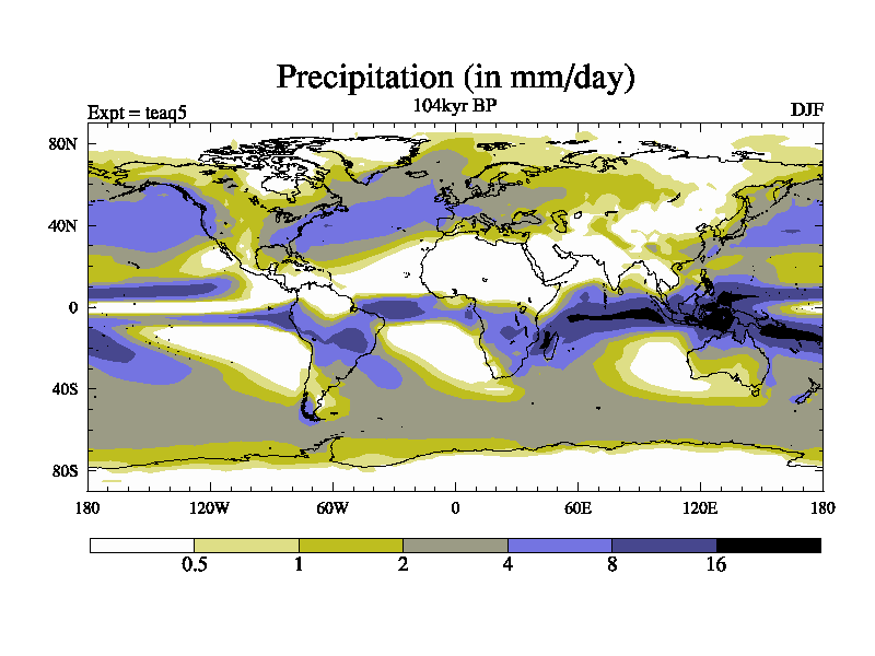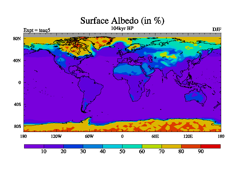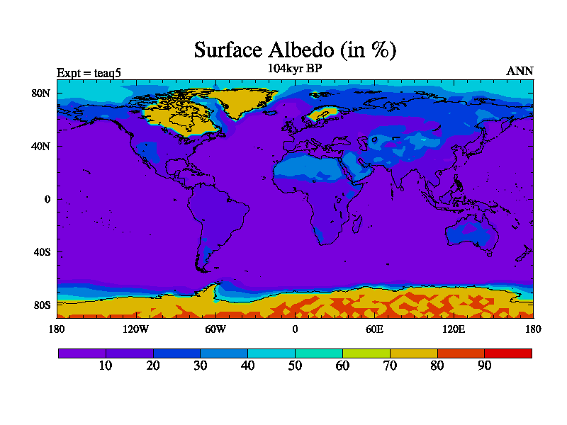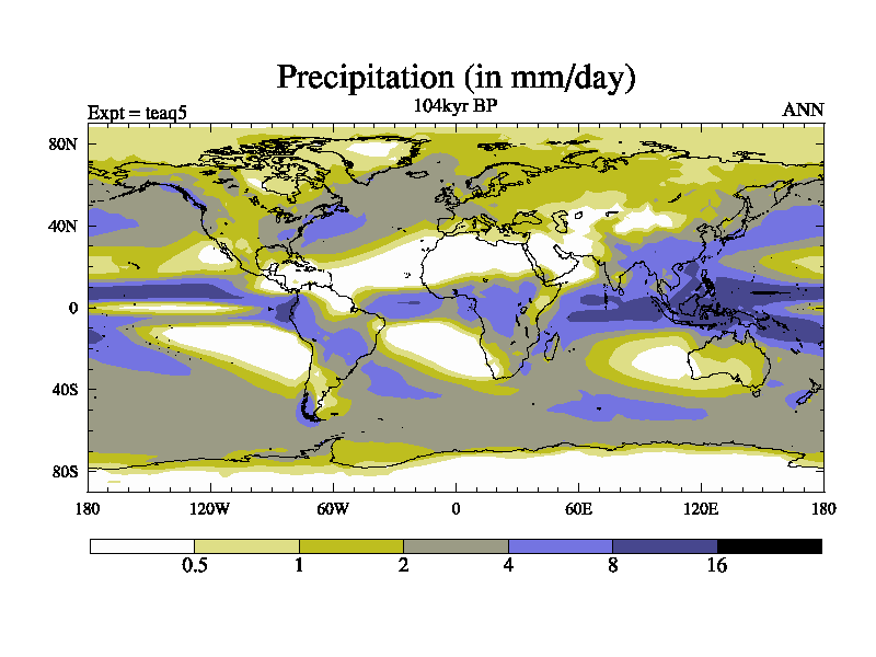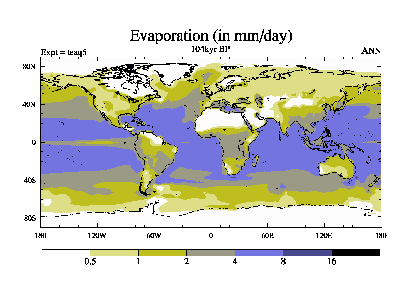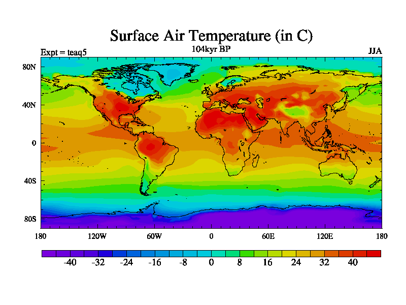 This is the 104kyr BP simulation for a new set of BBC runs using TRIFFID. Static mode, started from half way through tdxo set of simulations (new BBC static TRIFFID runs). This version includes the dark_respiration update. Vegetation is from the pre-industrial run tdwza, and CO2 is quadrupled over tdxo version.