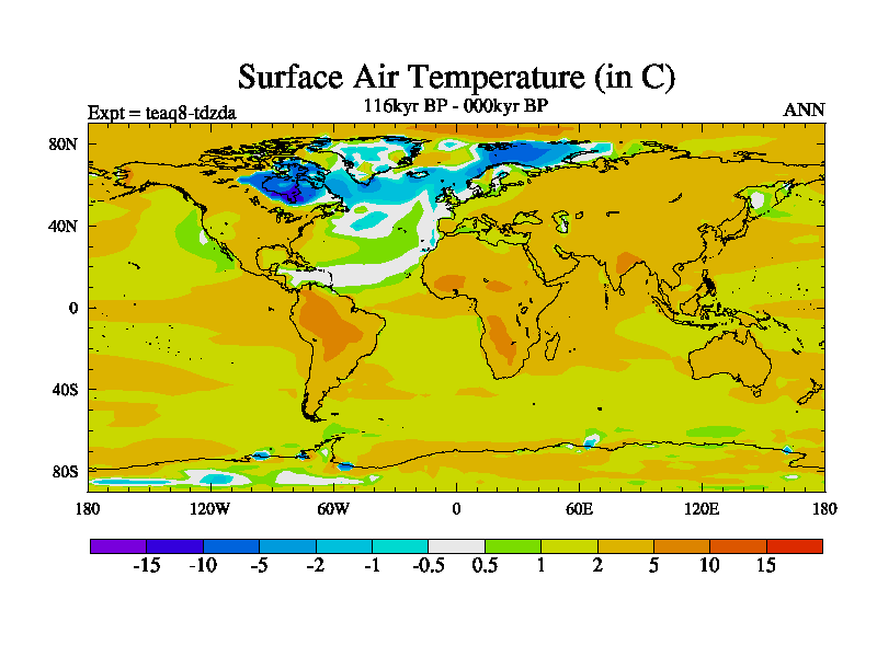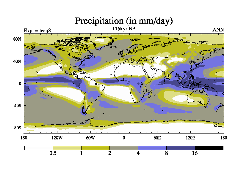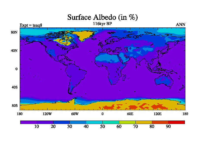 This is the 116kyr BP simulation for a new set of BBC runs using TRIFFID. Static mode, started from half way through tdxo set of simulations (new BBC static TRIFFID runs). This version includes the dark_respiration update. Vegetation is from the pre-industrial run tdwza, and CO2 is quadrupled over tdxo version.