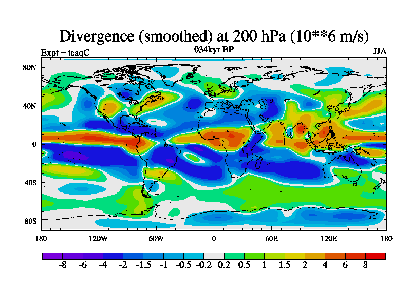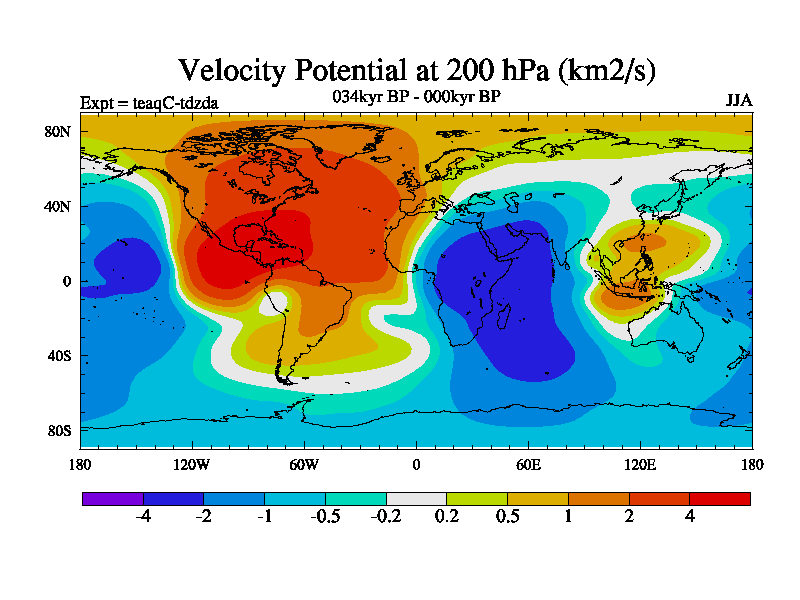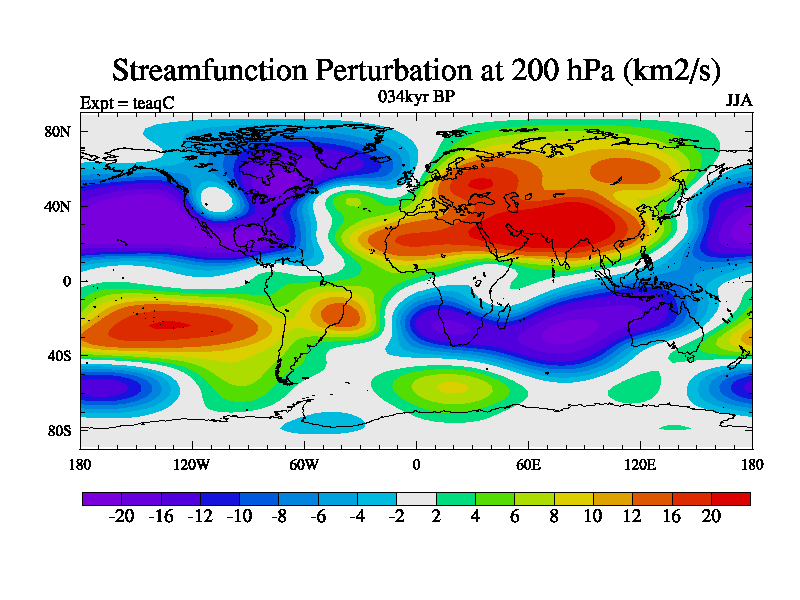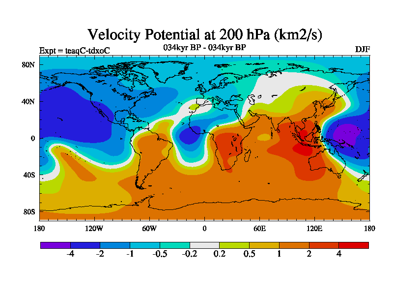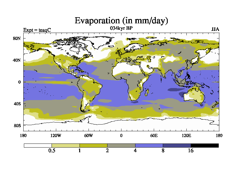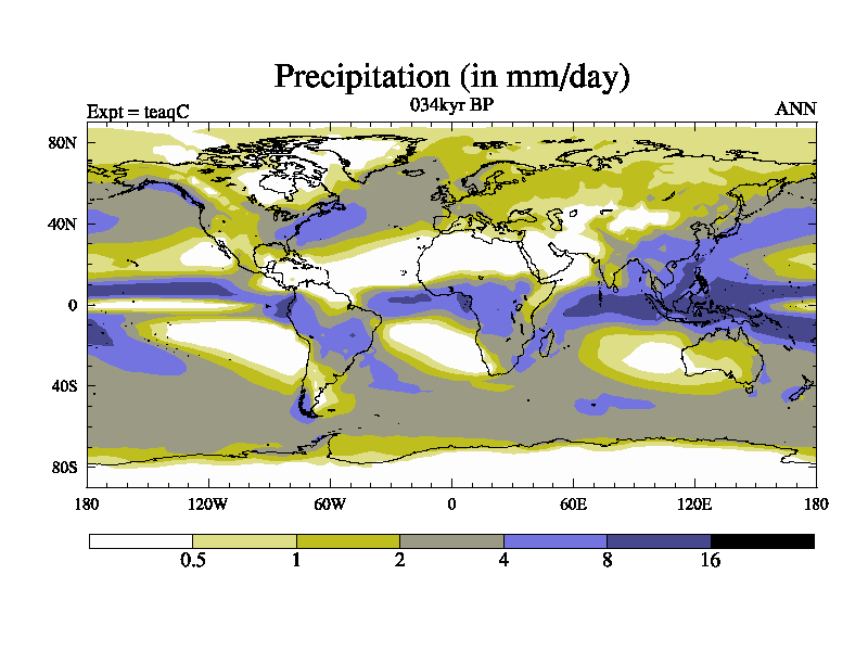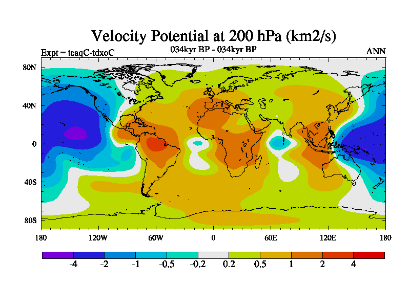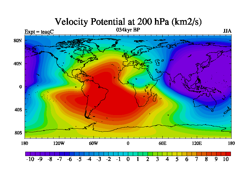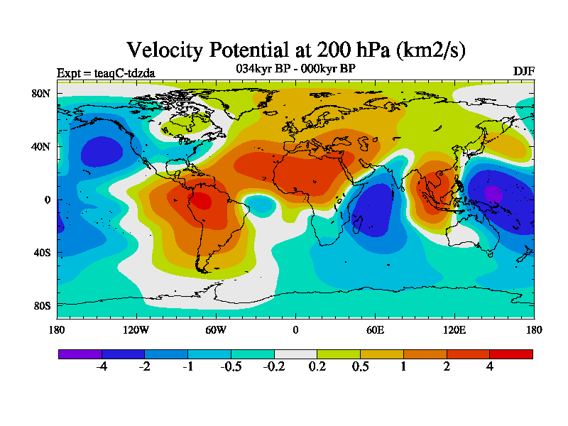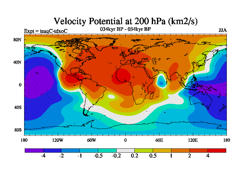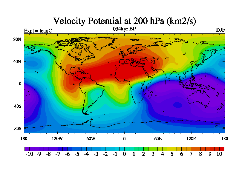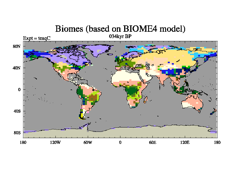 This is the 034kyr BP simulation for a new set of BBC runs using TRIFFID. Static mode, started from half way through tdxo set of simulations (new BBC static TRIFFID runs). This version includes the dark_respiration update. Vegetation is from the pre-industrial run tdwza, and CO2 is quadrupled over tdxo version.