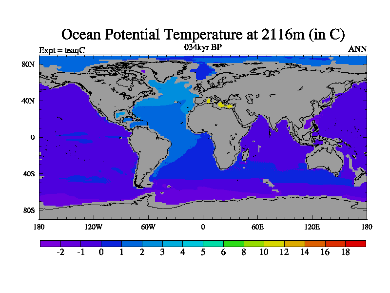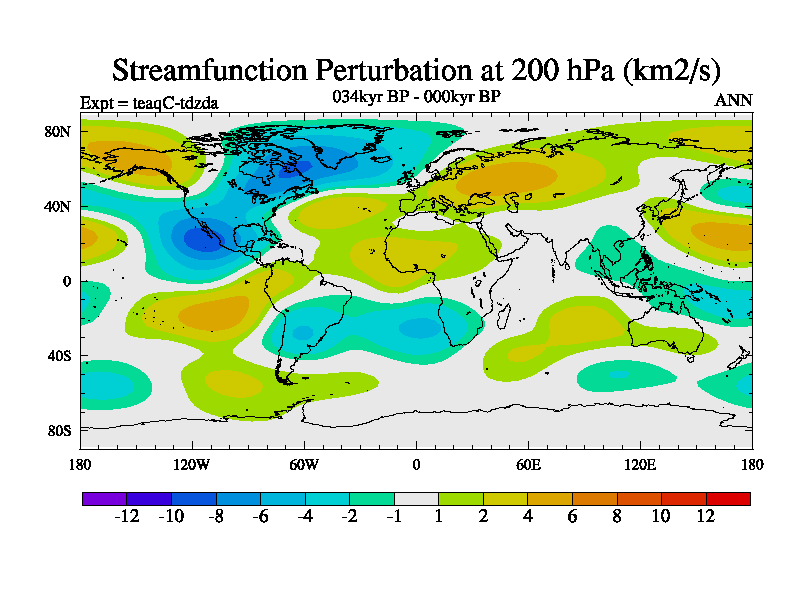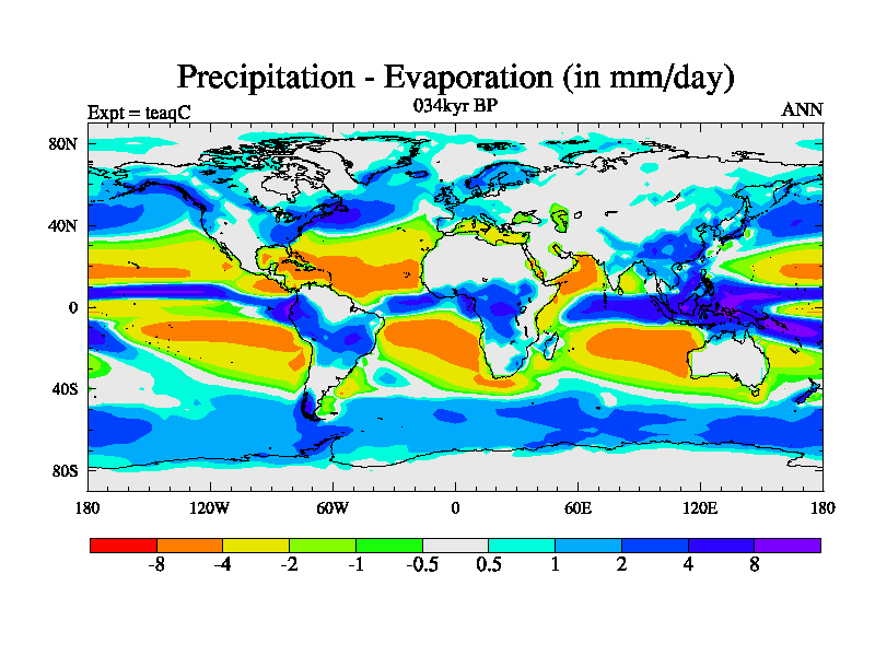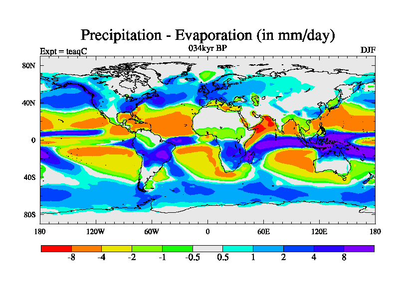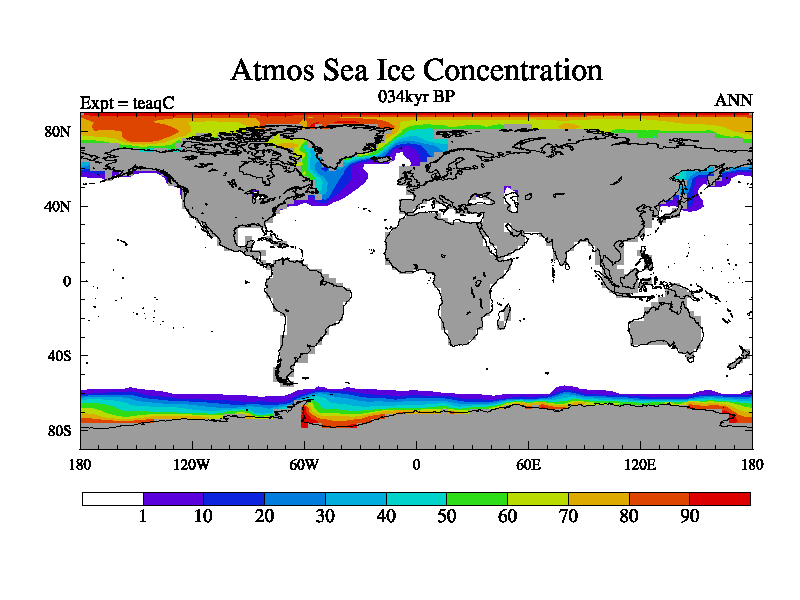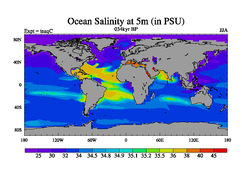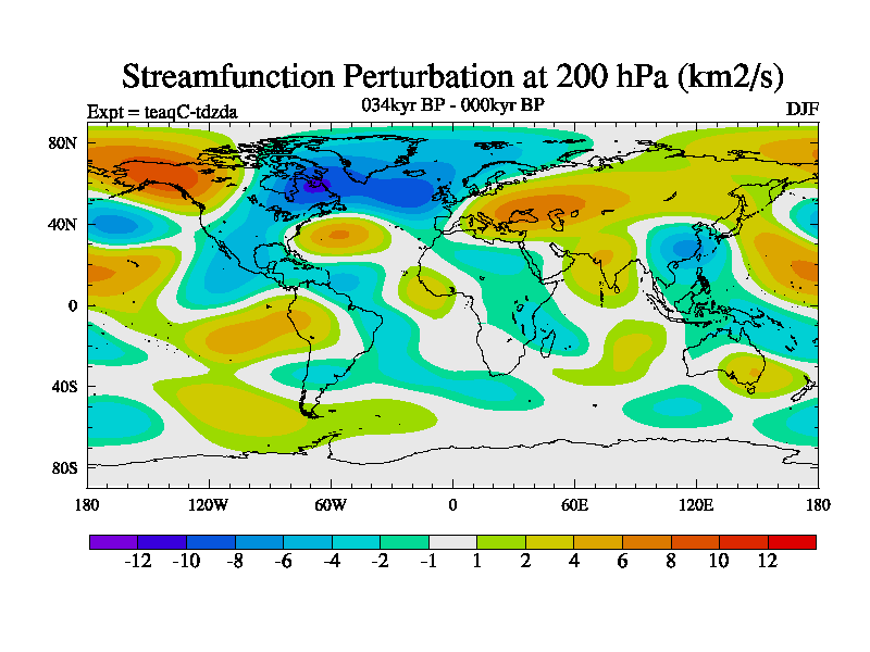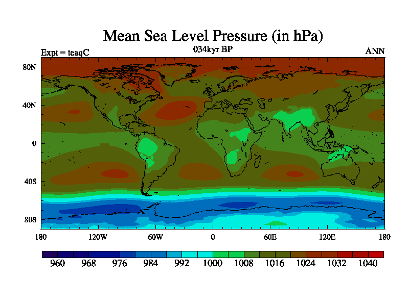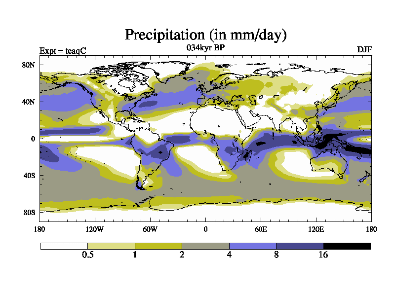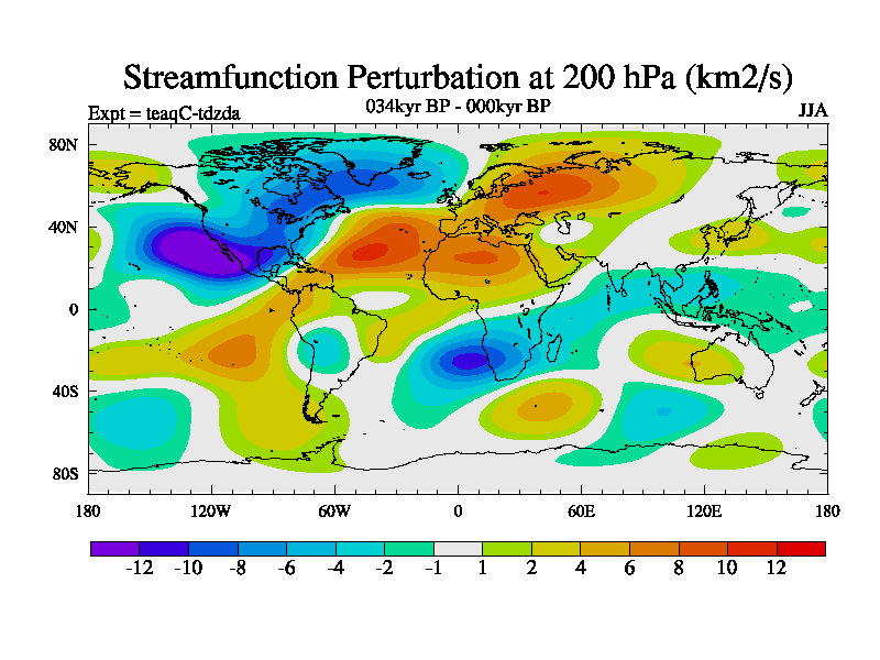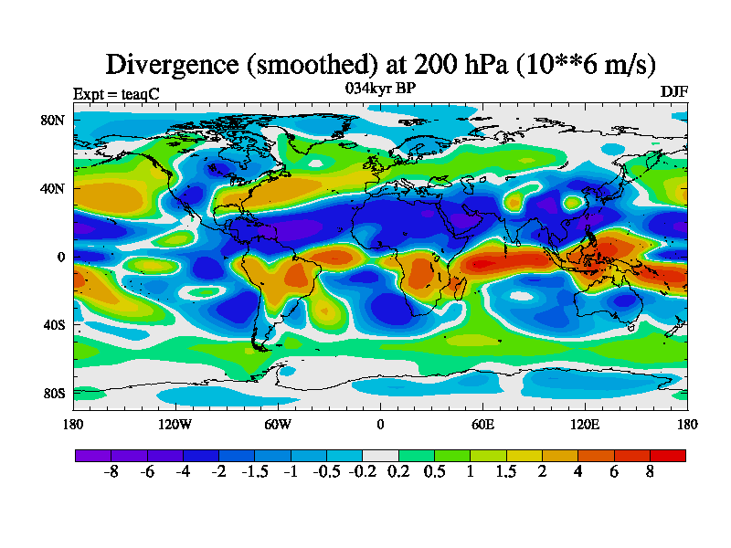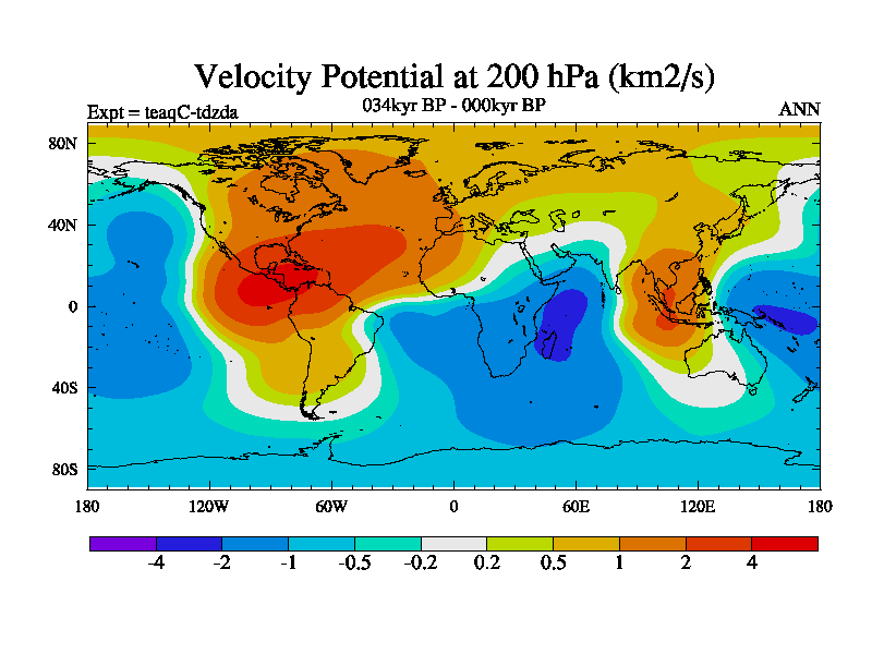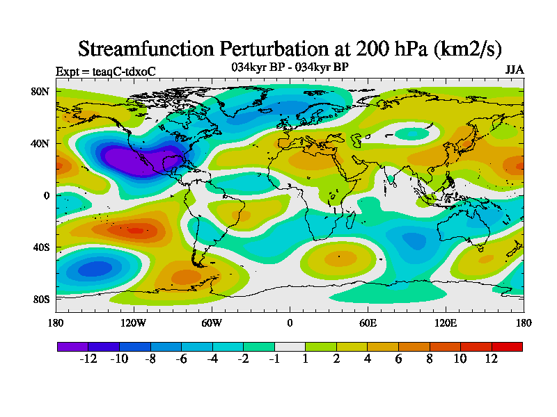 This is the 034kyr BP simulation for a new set of BBC runs using TRIFFID. Static mode, started from half way through tdxo set of simulations (new BBC static TRIFFID runs). This version includes the dark_respiration update. Vegetation is from the pre-industrial run tdwza, and CO2 is quadrupled over tdxo version.
