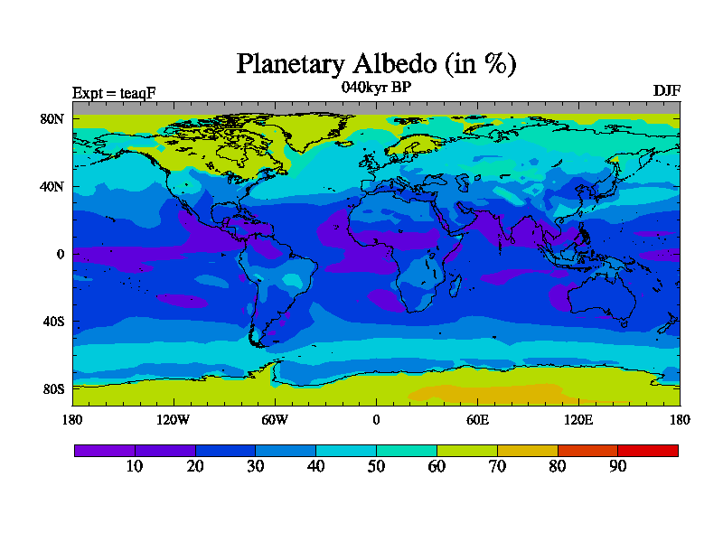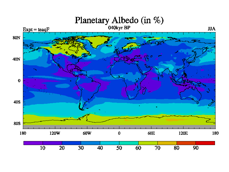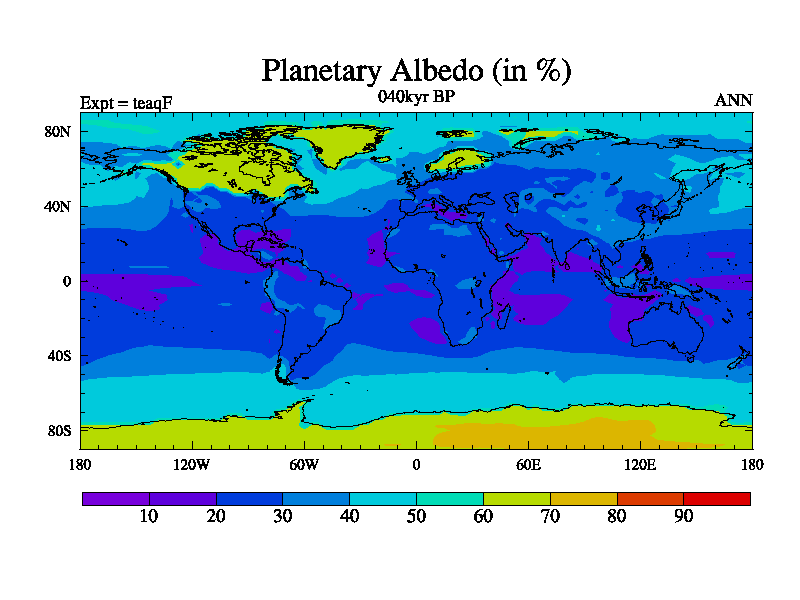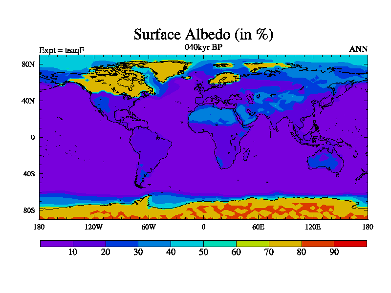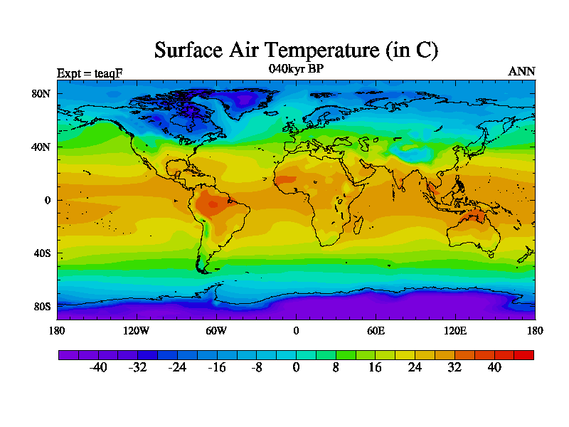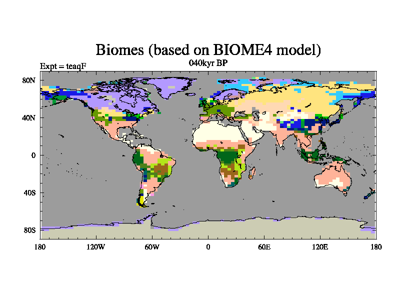 This is the 040kyr BP simulation for a new set of BBC runs using TRIFFID. Static mode, started from half way through tdxo set of simulations (new BBC static TRIFFID runs). This version includes the dark_respiration update. Vegetation is from the pre-industrial run tdwza, and CO2 is quadrupled over tdxo version.