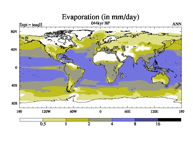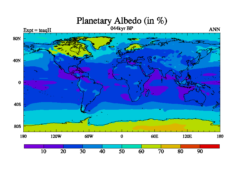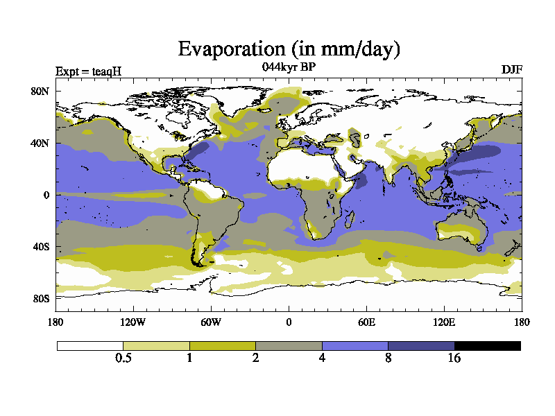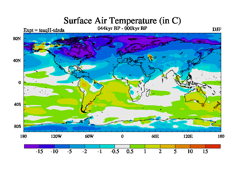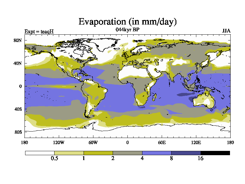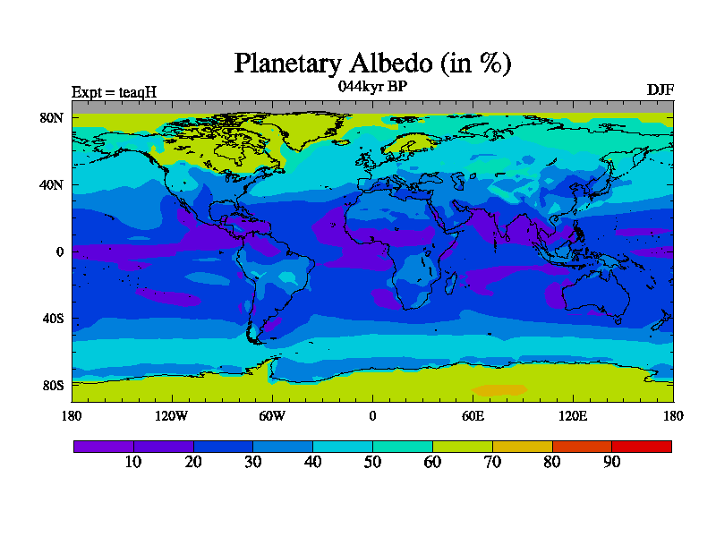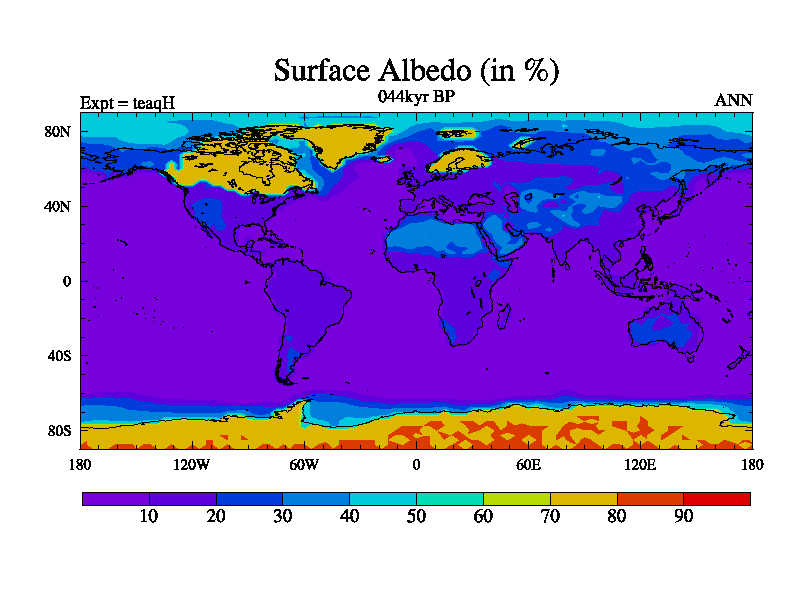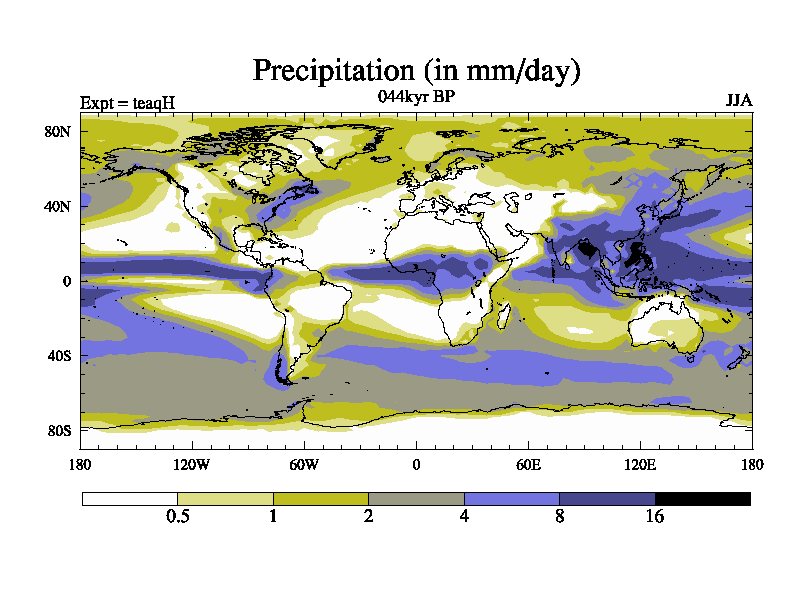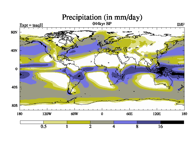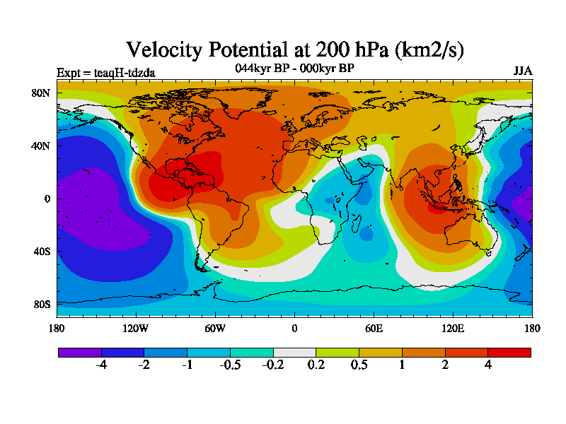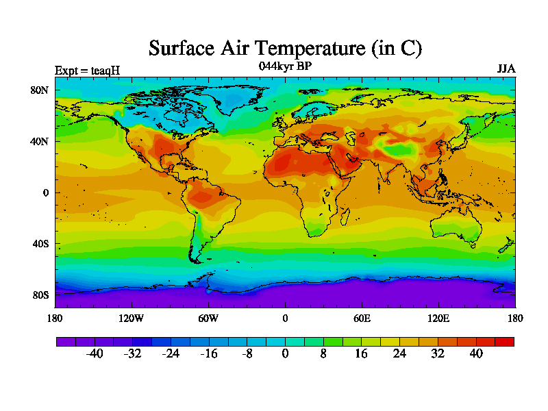 This is the 044kyr BP simulation for a new set of BBC runs using TRIFFID. Static mode, started from half way through tdxo set of simulations (new BBC static TRIFFID runs). This version includes the dark_respiration update. Vegetation is from the pre-industrial run tdwza, and CO2 is quadrupled over tdxo version.