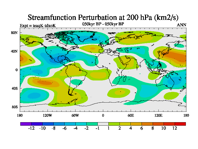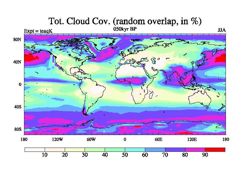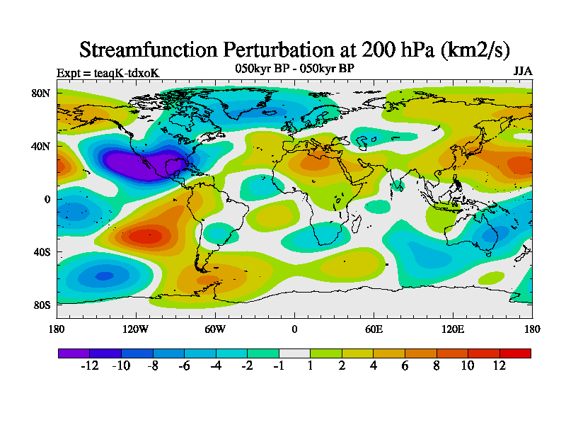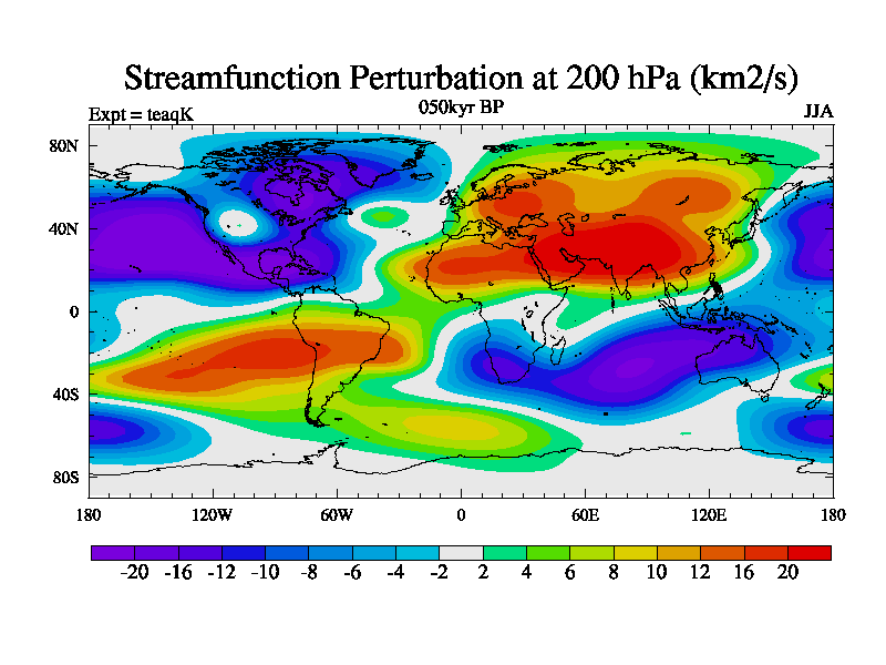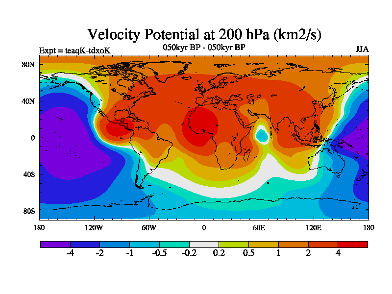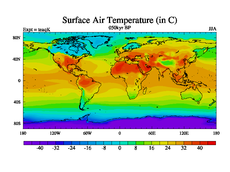 This is the 050kyr BP simulation for a new set of BBC runs using TRIFFID. Static mode, started from half way through tdxo set of simulations (new BBC static TRIFFID runs). This version includes the dark_respiration update. Vegetation is from the pre-industrial run tdwza, and CO2 is quadrupled over tdxo version.