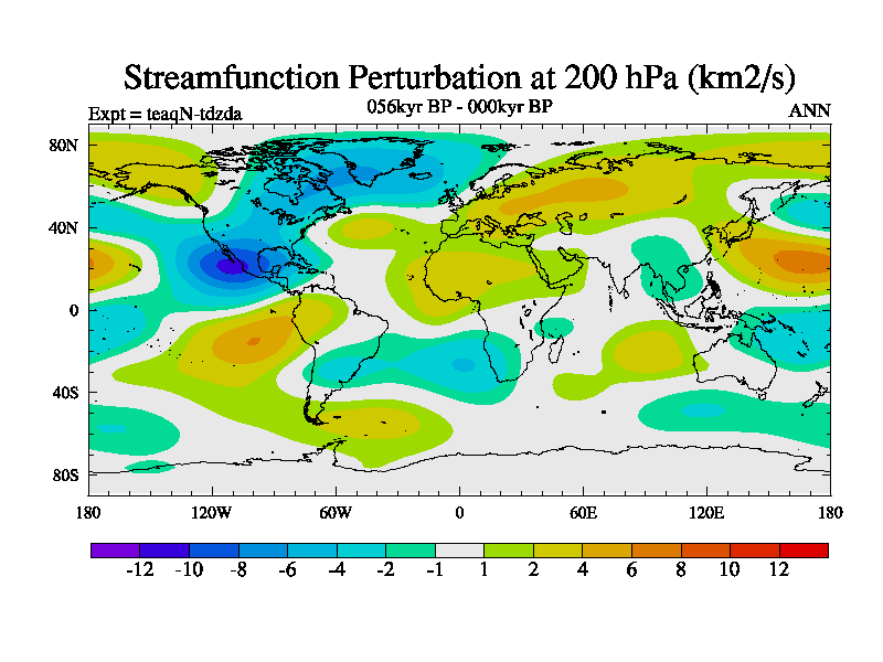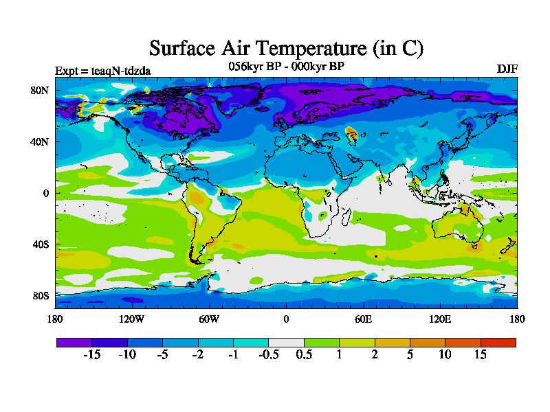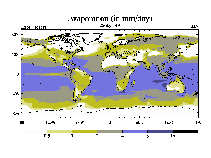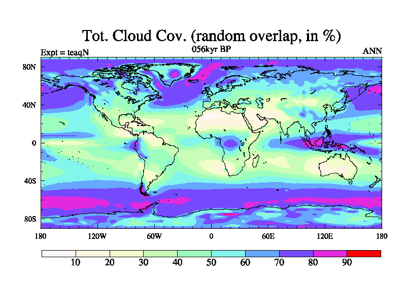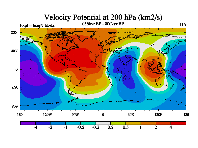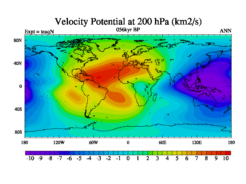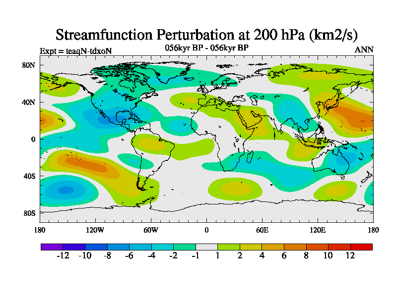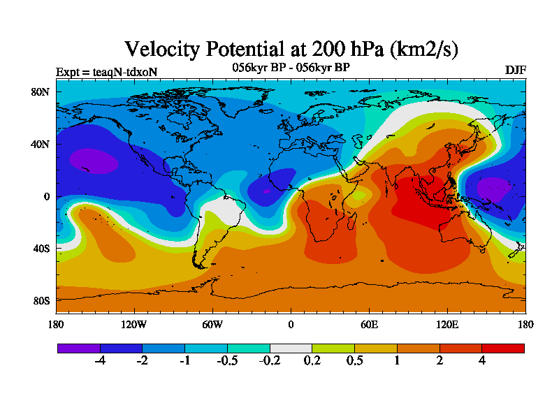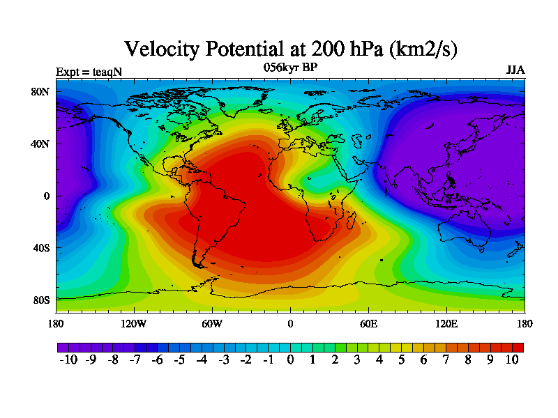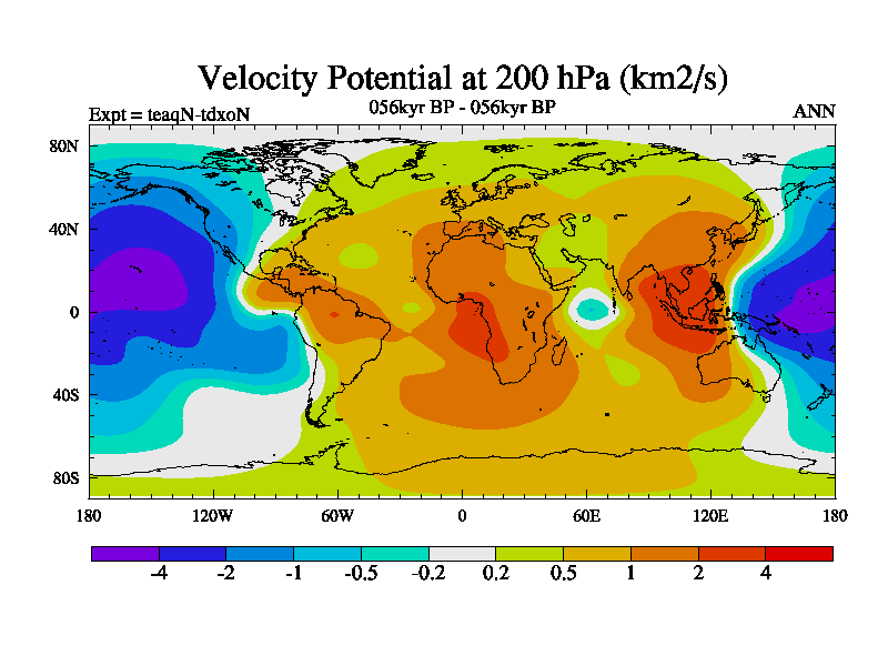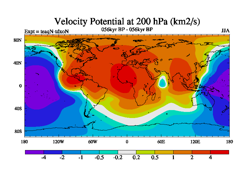 This is the 056kyr BP simulation for a new set of BBC runs using TRIFFID. Static mode, started from half way through tdxo set of simulations (new BBC static TRIFFID runs). This version includes the dark_respiration update. Vegetation is from the pre-industrial run tdwza, and CO2 is quadrupled over tdxo version.