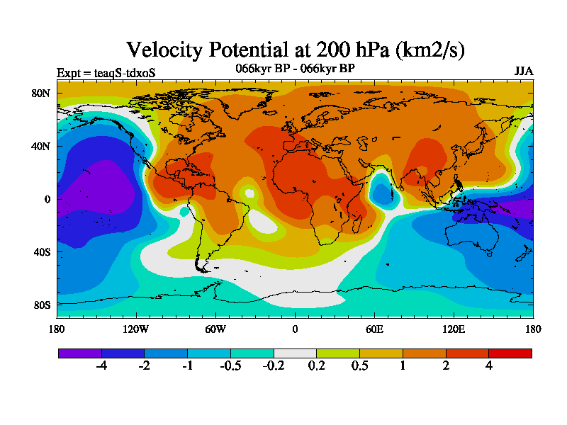 This is the 066kyr BP simulation for a new set of BBC runs using TRIFFID. Static mode, started from half way through tdxo set of simulations (new BBC static TRIFFID runs). This version includes the dark_respiration update. Vegetation is from the pre-industrial run tdwza, and CO2 is quadrupled over tdxo version.