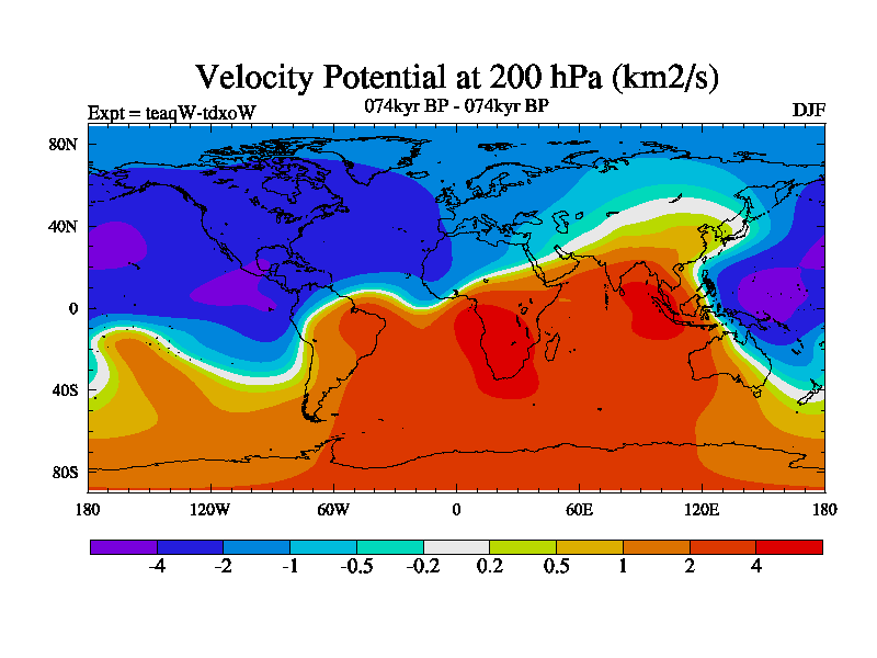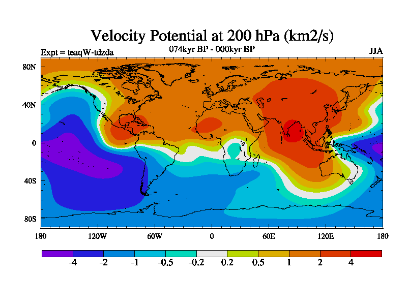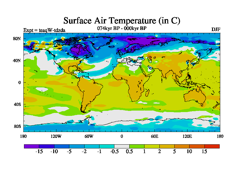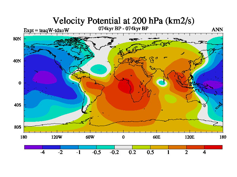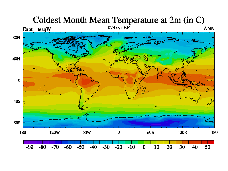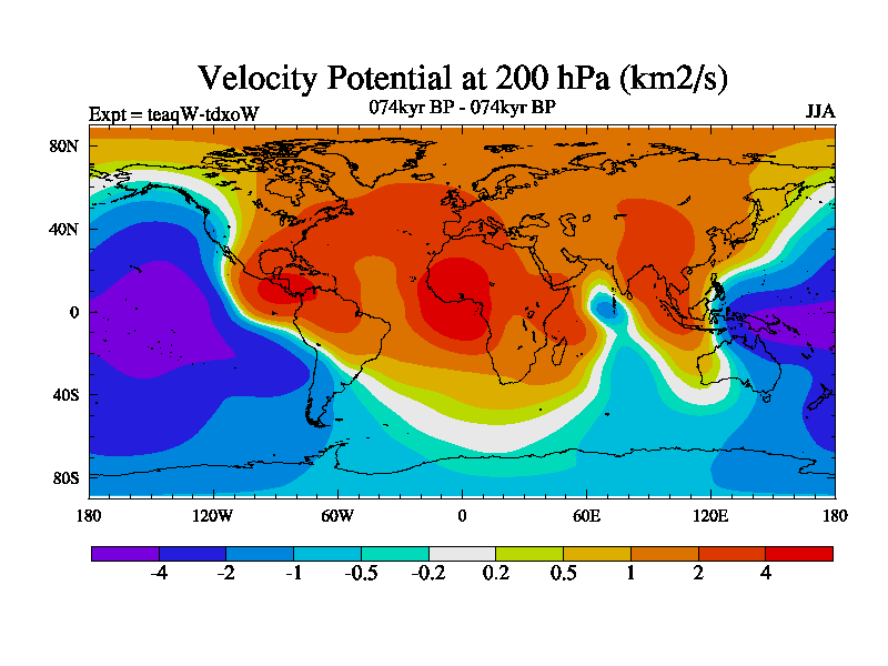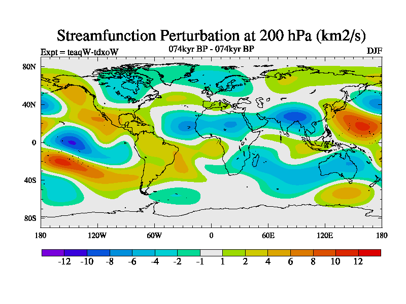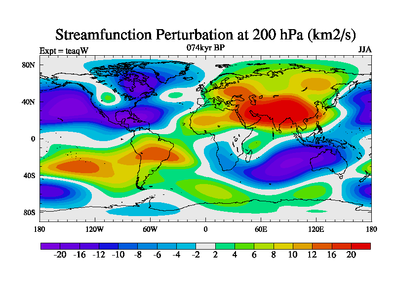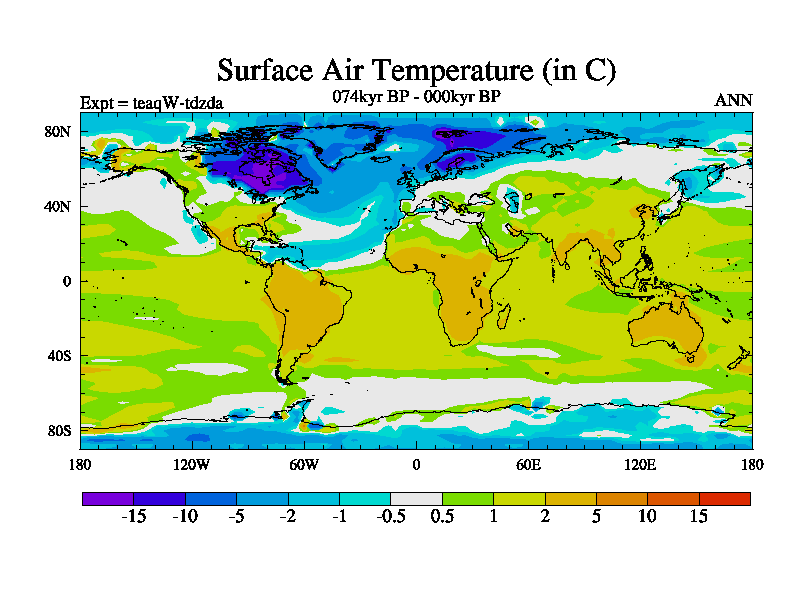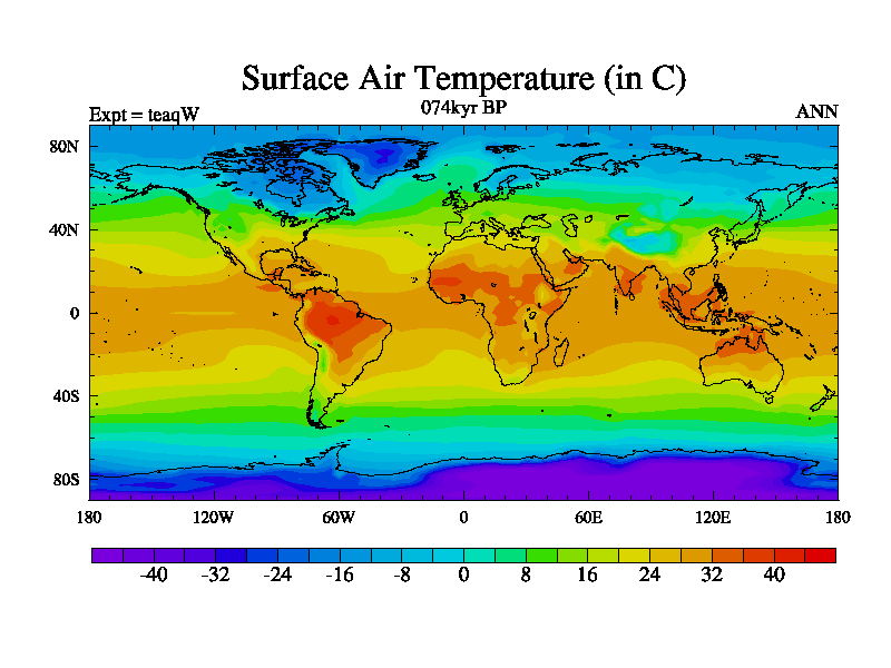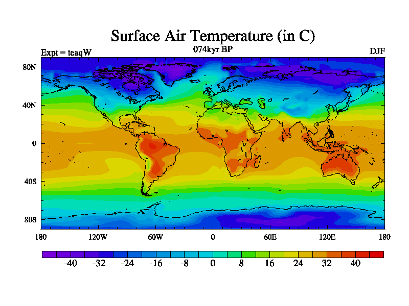 This is the 074kyr BP simulation for a new set of BBC runs using TRIFFID. Static mode, started from half way through tdxo set of simulations (new BBC static TRIFFID runs). This version includes the dark_respiration update. Vegetation is from the pre-industrial run tdwza, and CO2 is quadrupled over tdxo version.