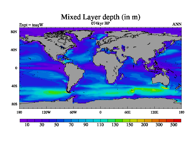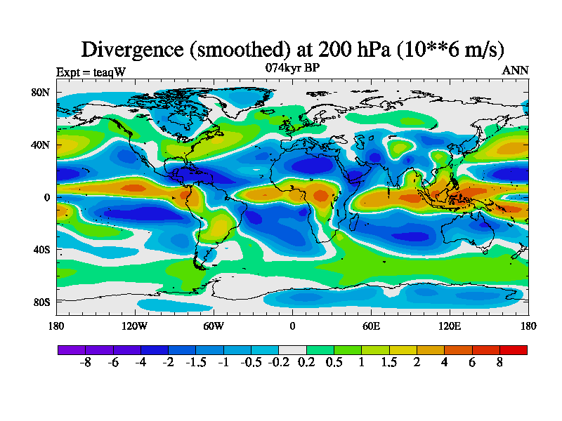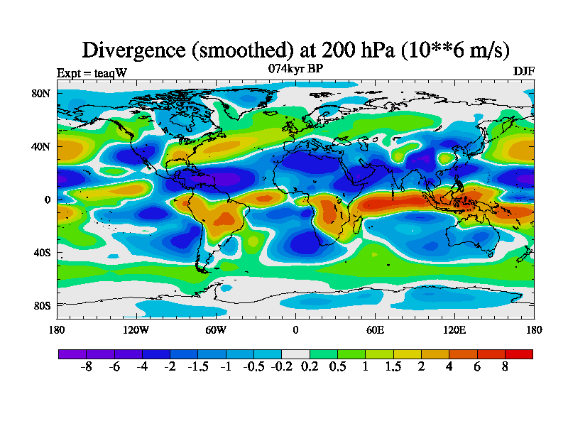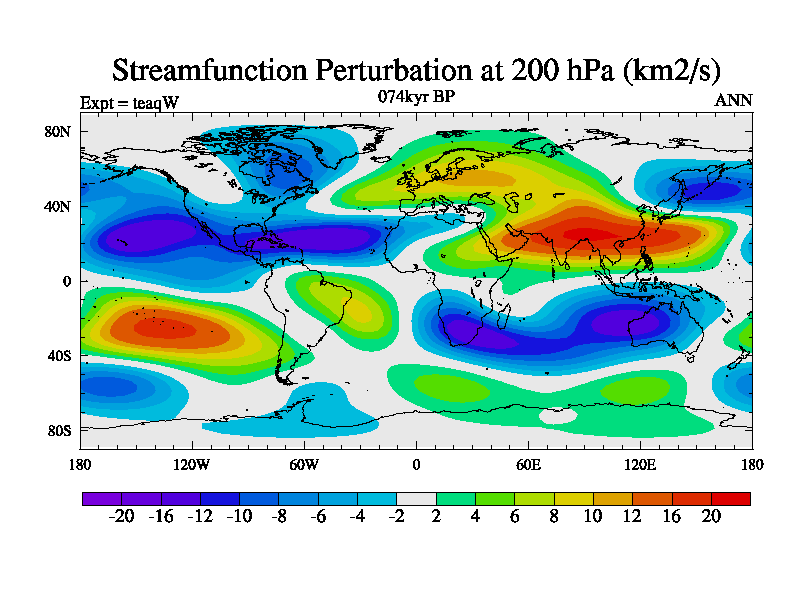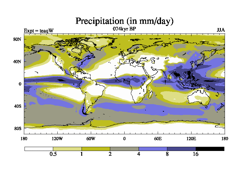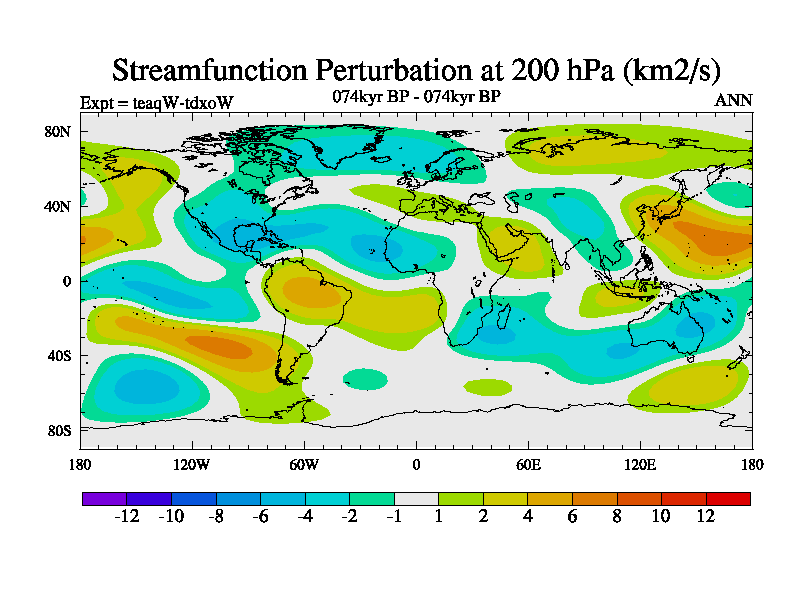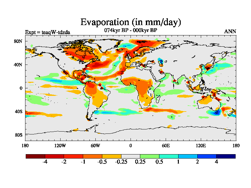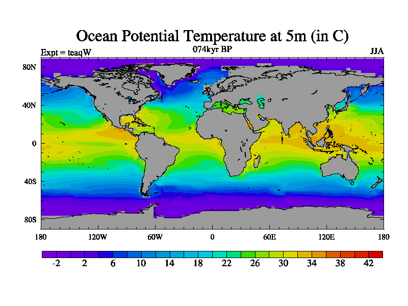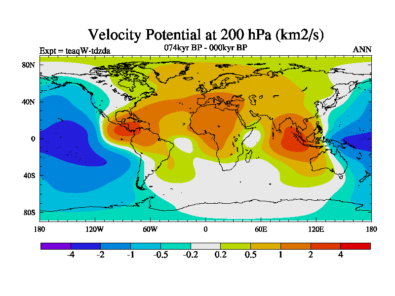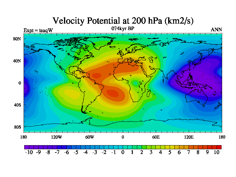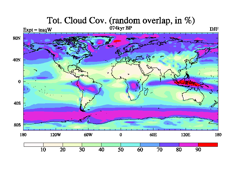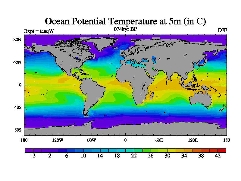 This is the 074kyr BP simulation for a new set of BBC runs using TRIFFID. Static mode, started from half way through tdxo set of simulations (new BBC static TRIFFID runs). This version includes the dark_respiration update. Vegetation is from the pre-industrial run tdwza, and CO2 is quadrupled over tdxo version.