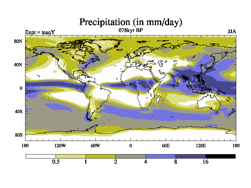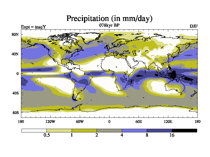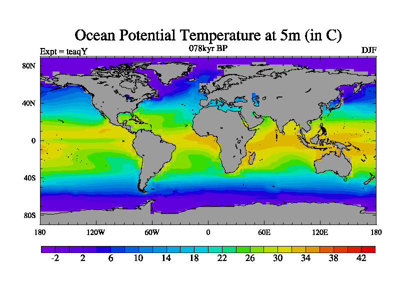 This is the 078kyr BP simulation for a new set of BBC runs using TRIFFID. Static mode, started from half way through tdxo set of simulations (new BBC static TRIFFID runs). This version includes the dark_respiration update. Vegetation is from the pre-industrial run tdwza, and CO2 is quadrupled over tdxo version.