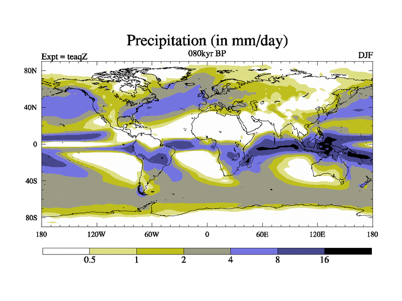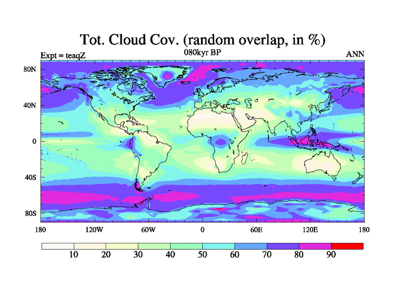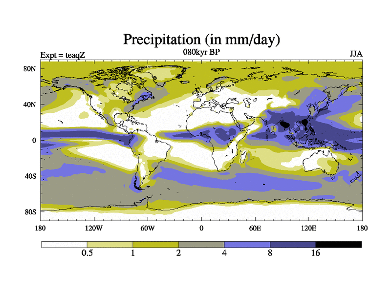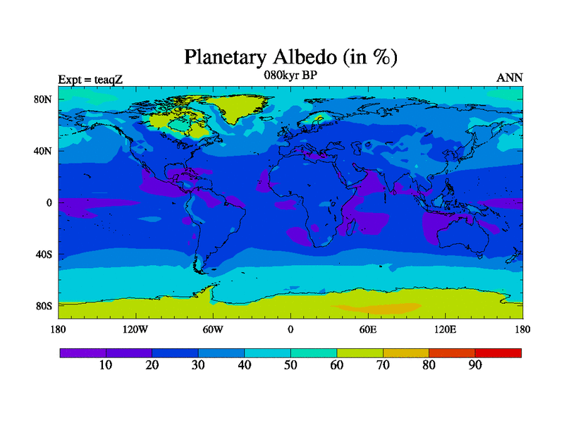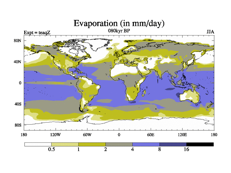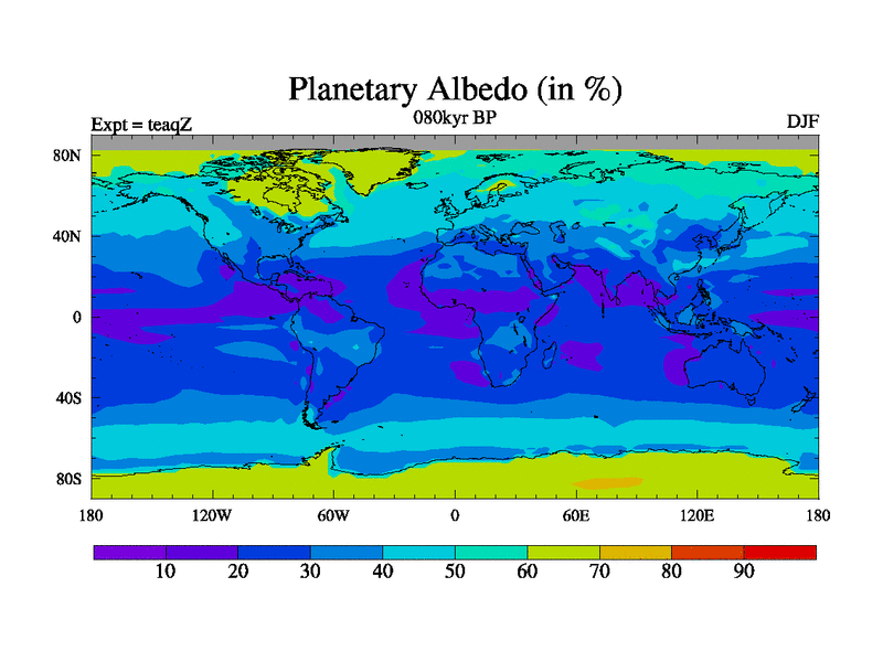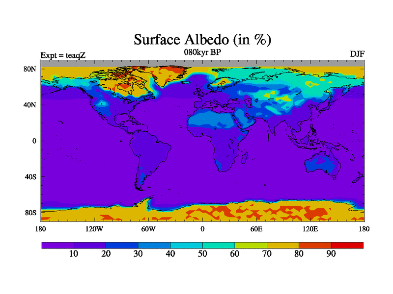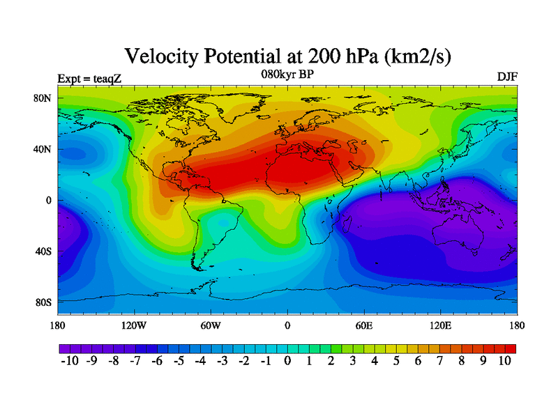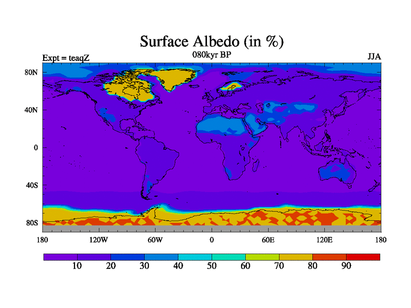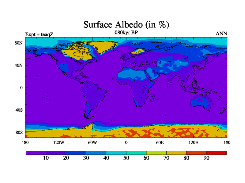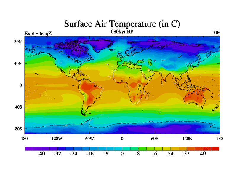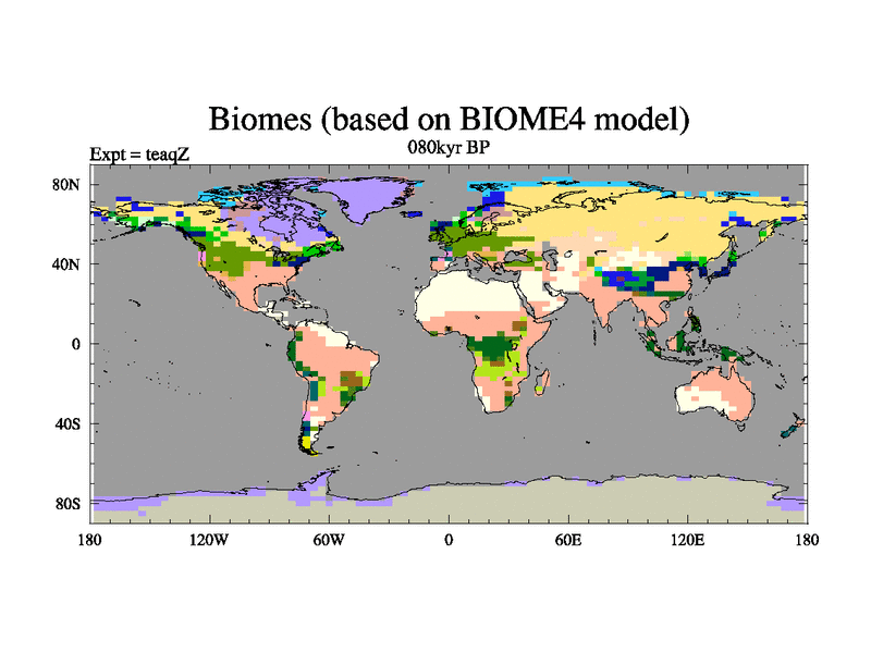 This is the 080kyr BP simulation for a new set of BBC runs using TRIFFID. Static mode, started from half way through tdxo set of simulations (new BBC static TRIFFID runs). This version includes the dark_respiration update. Vegetation is from the pre-industrial run tdwza, and CO2 is quadrupled over tdxo version.