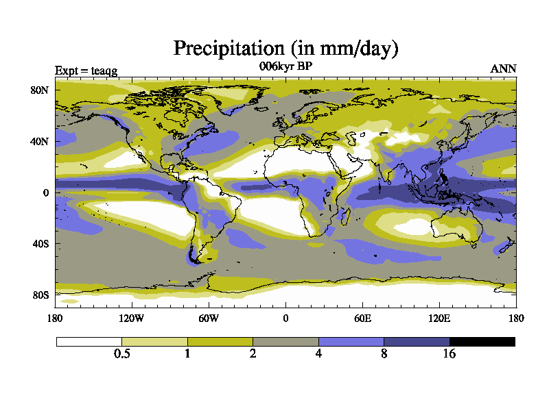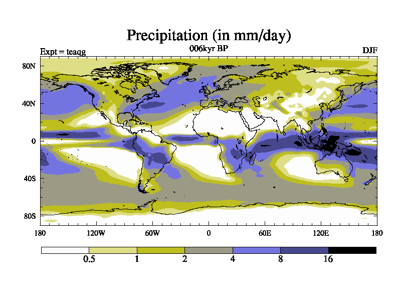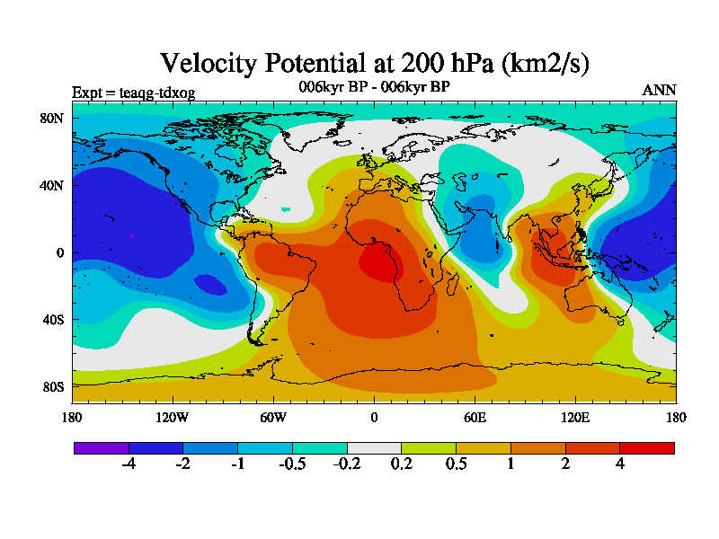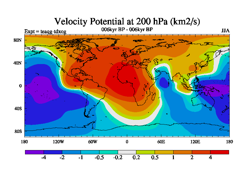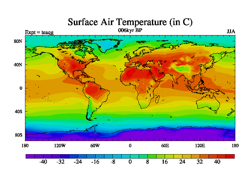 This is the 006kyr BP simulation for a new set of BBC runs using TRIFFID. Static mode, started from half way through tdxo set of simulations (new BBC static TRIFFID runs). This version includes the dark_respiration update. Vegetation is from the pre-industrial run tdwza, and CO2 is quadrupled over tdxo version.
